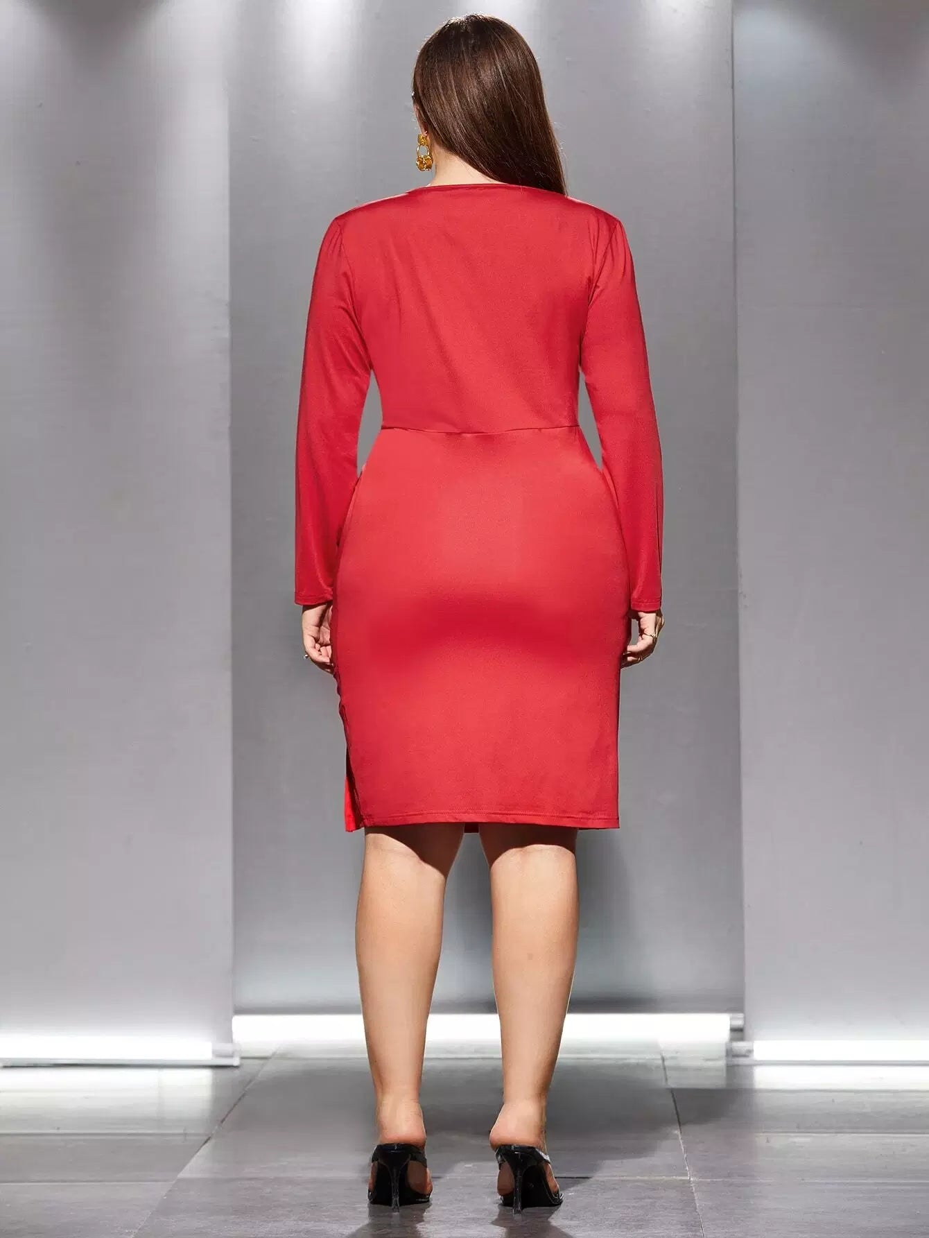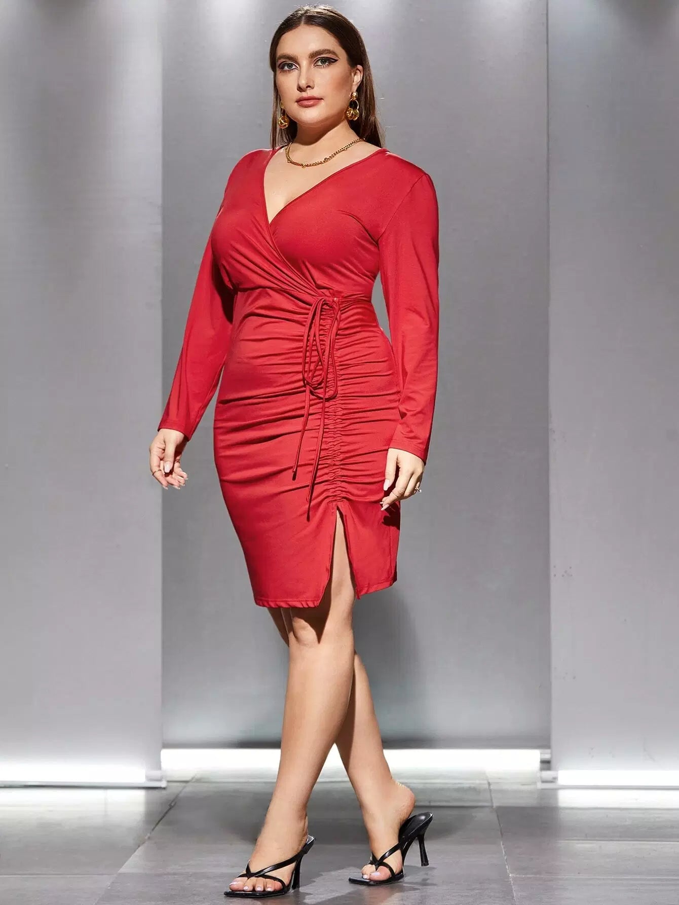 نحيف - مقاس كبير فستان ضيق برباط على الجانب ورقبة من Surplice