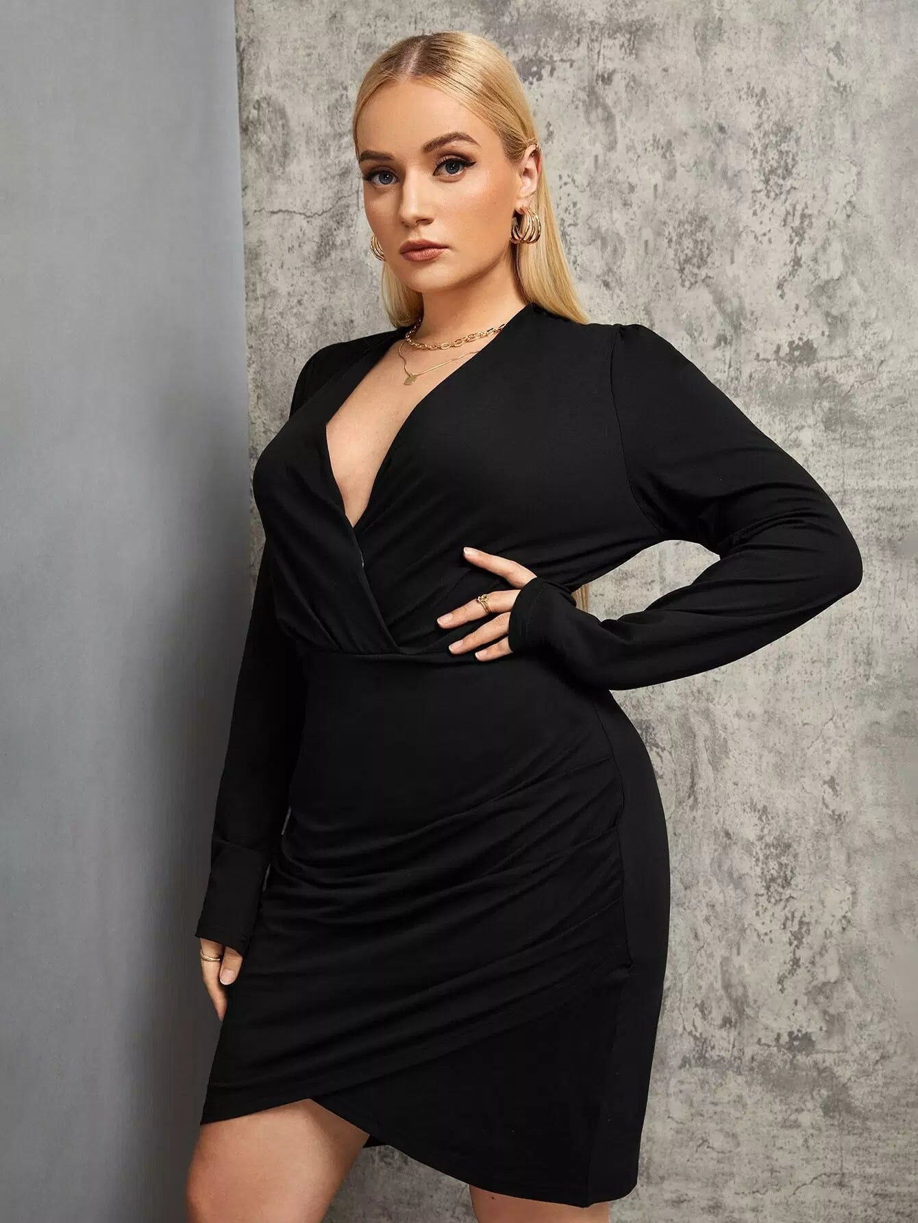فستان برقبة زائد بفتحة عنق ضيقة زائد
