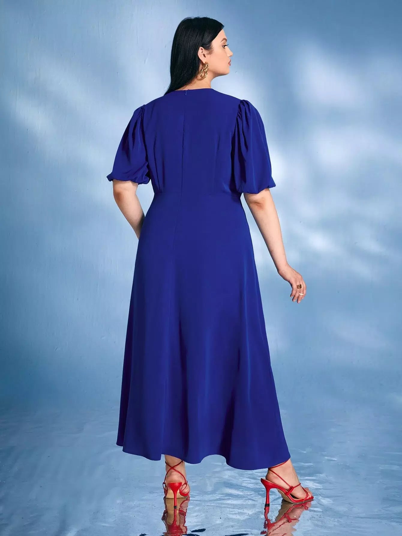 فستان بياقة برقبة زائد بأكمام فانوسية