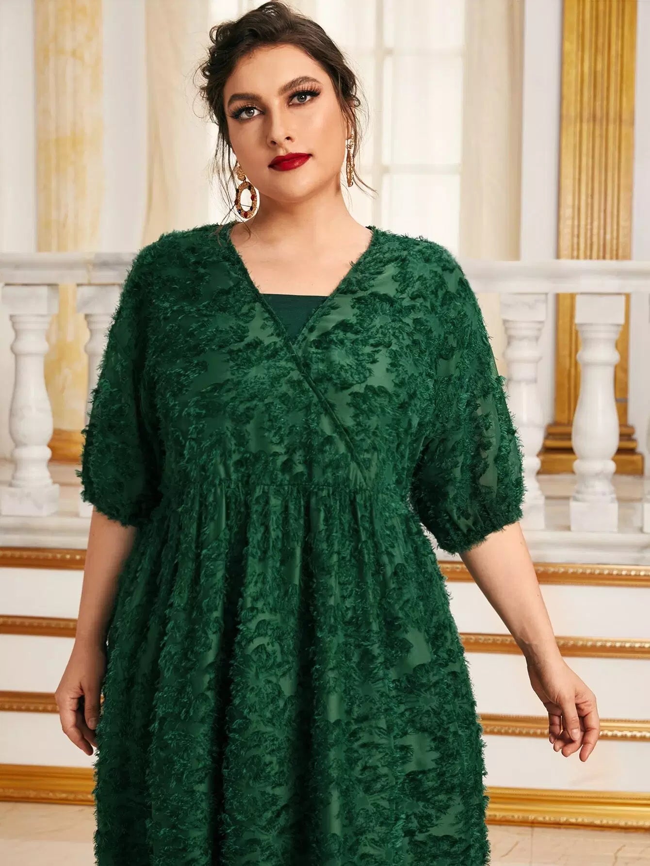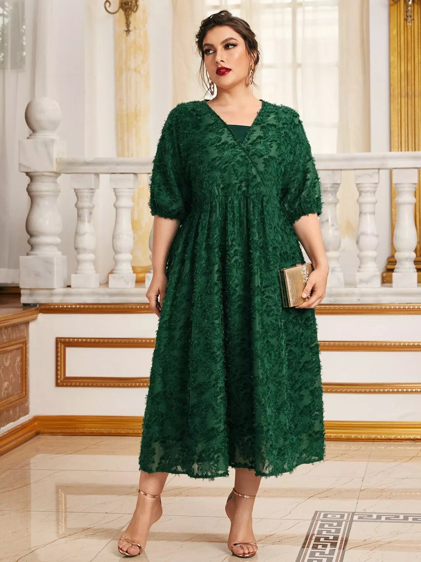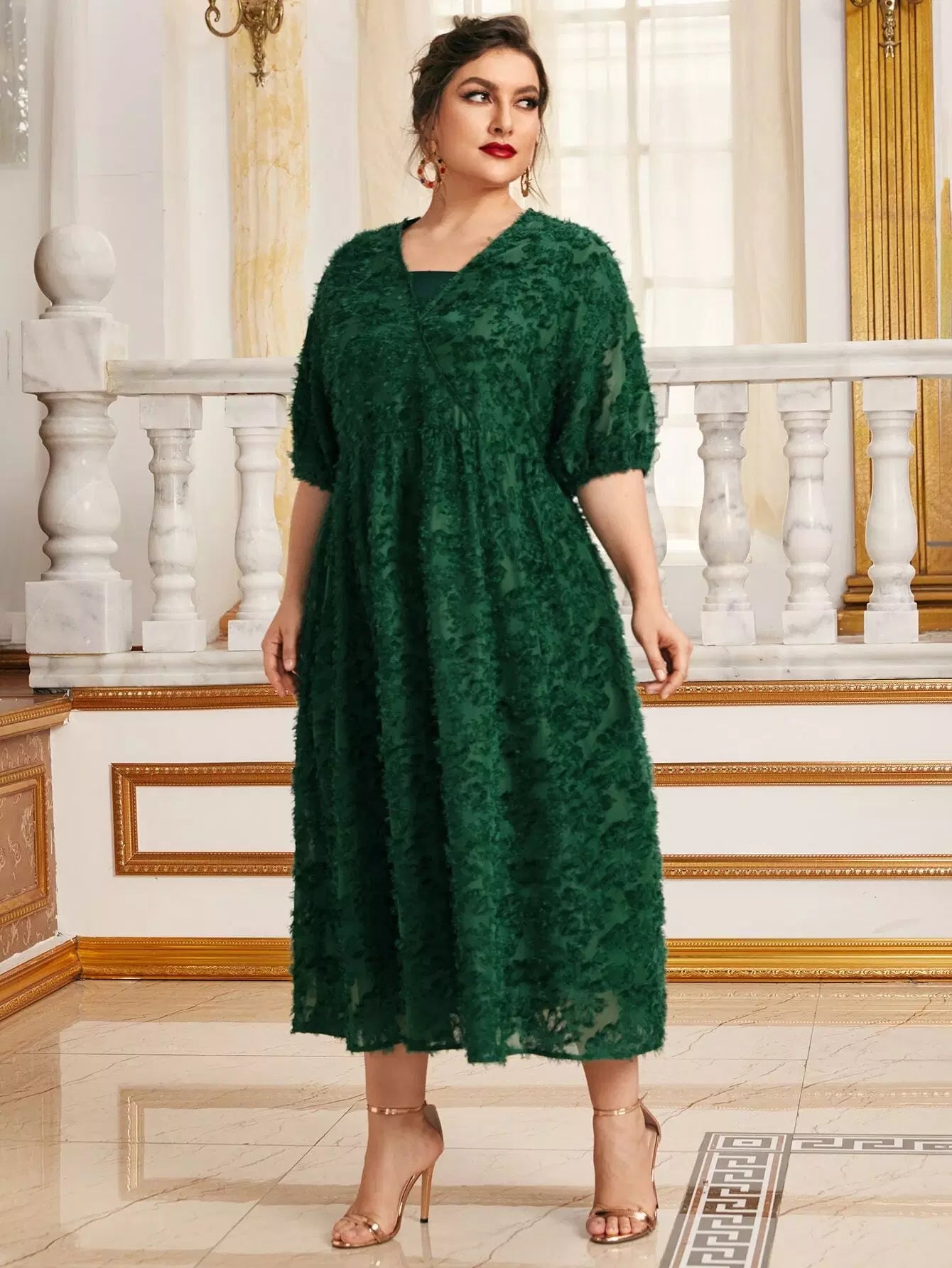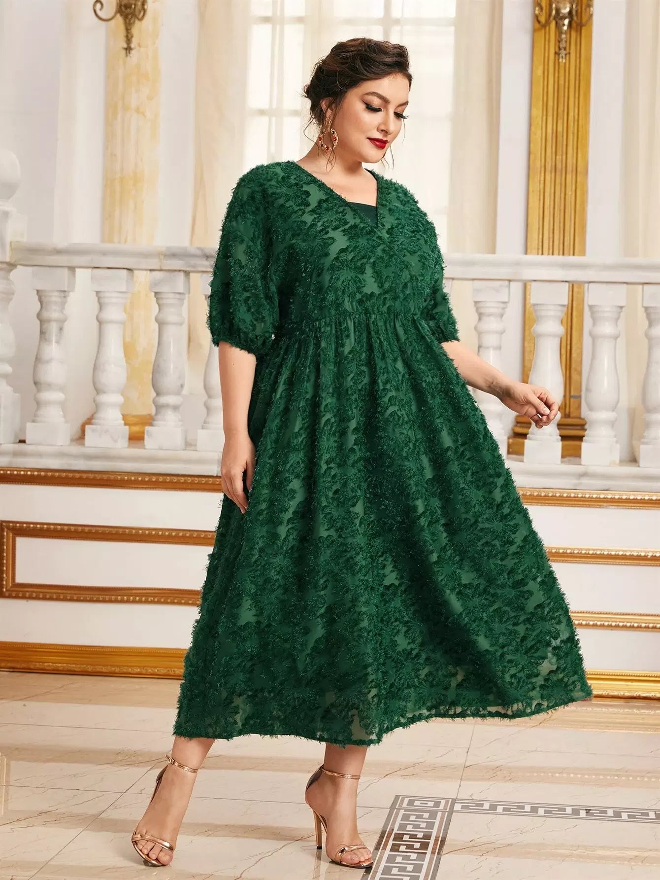 فستان بأكمام منفوشة برقبة منفوشة برقبة زائد