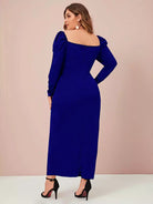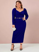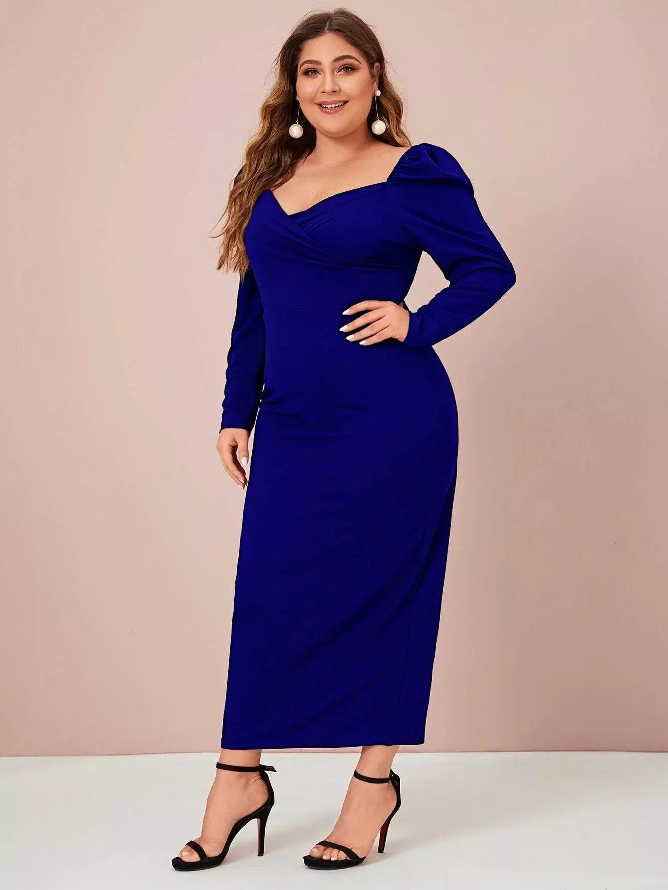 بالإضافة إلى فستان بأكمام طويلة ورقبة على شكل قلب بدون حزام
