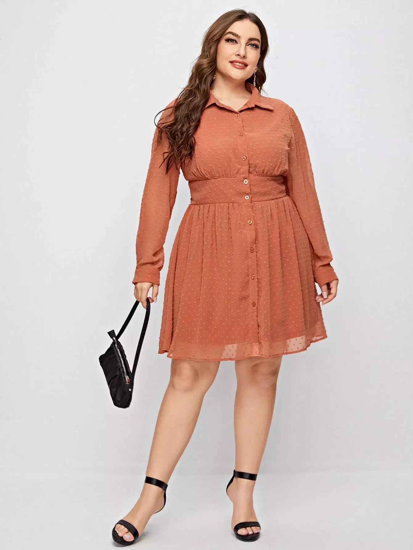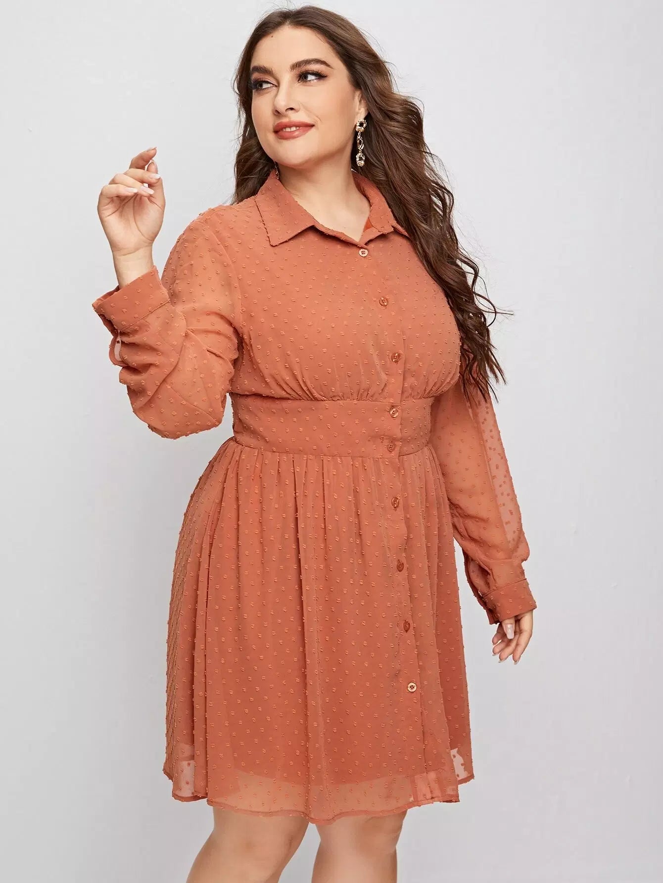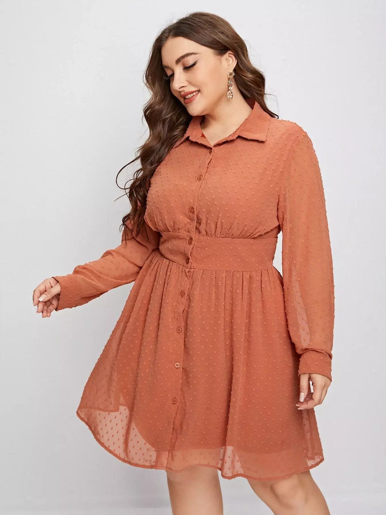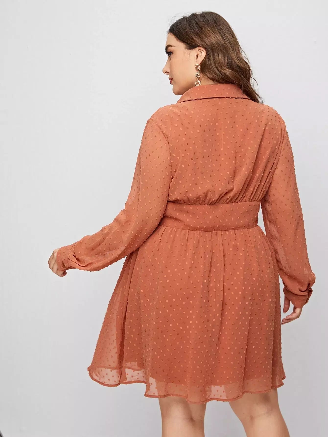 فستان قميص شيفون منقّط زائد سويسري من الشيفون