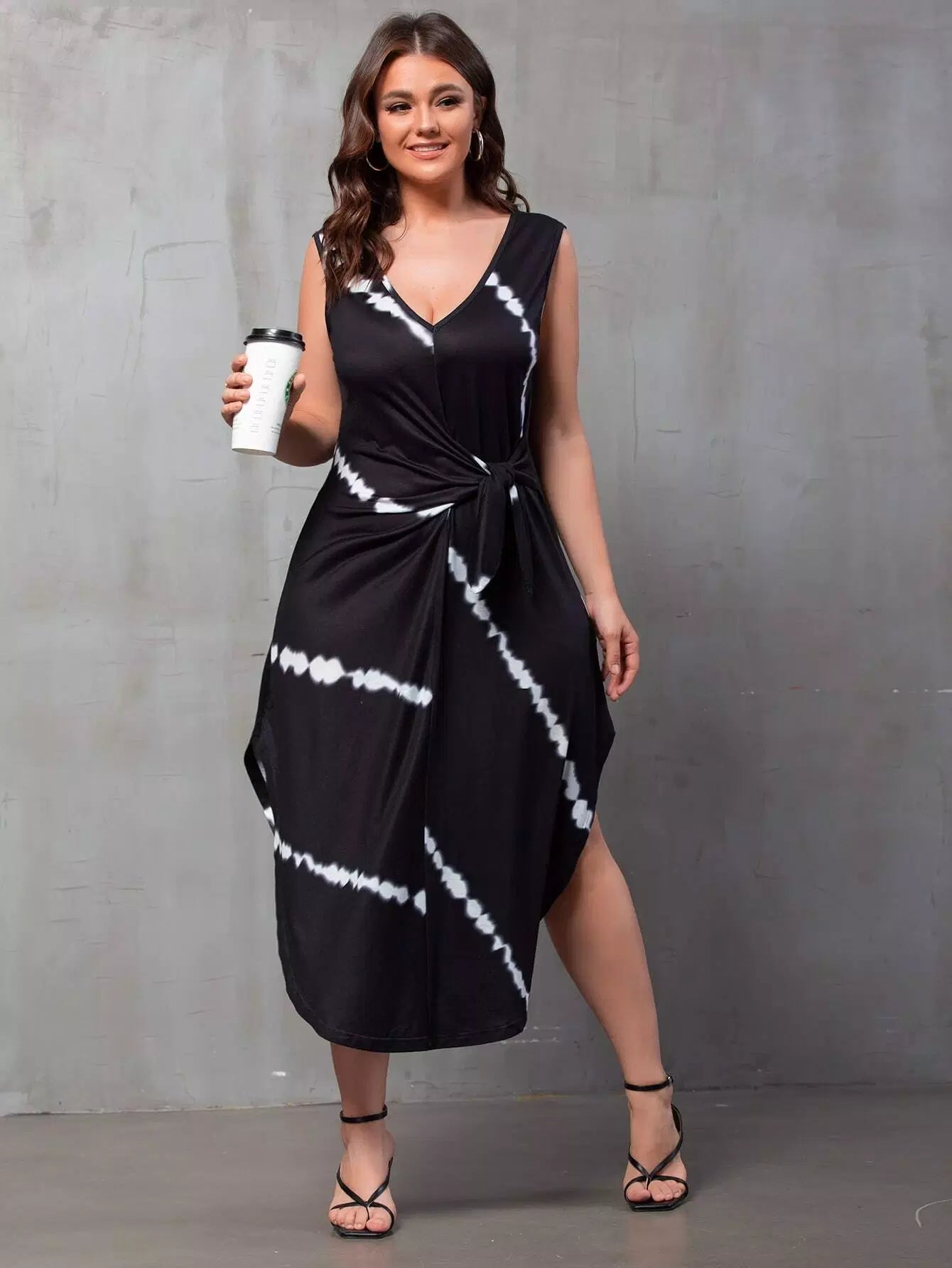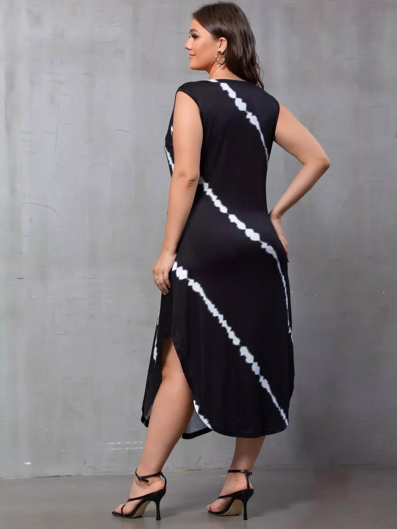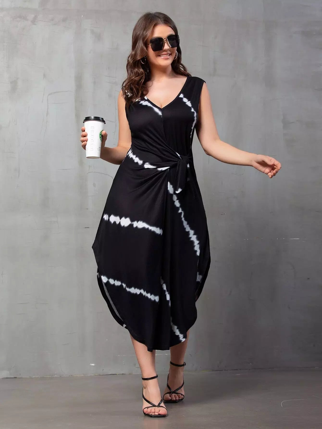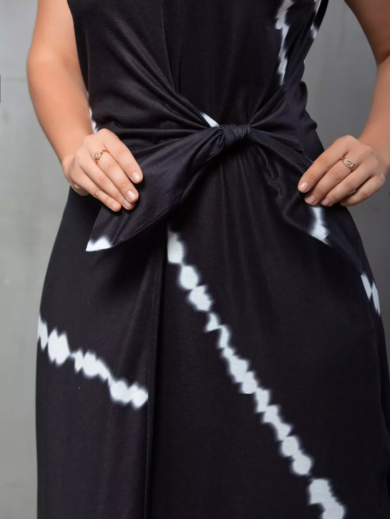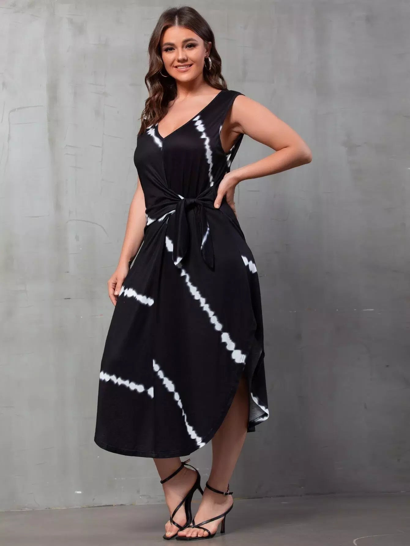 فستان بحافة منحنية جانبية مصبوغ بربطة عنق منحنية