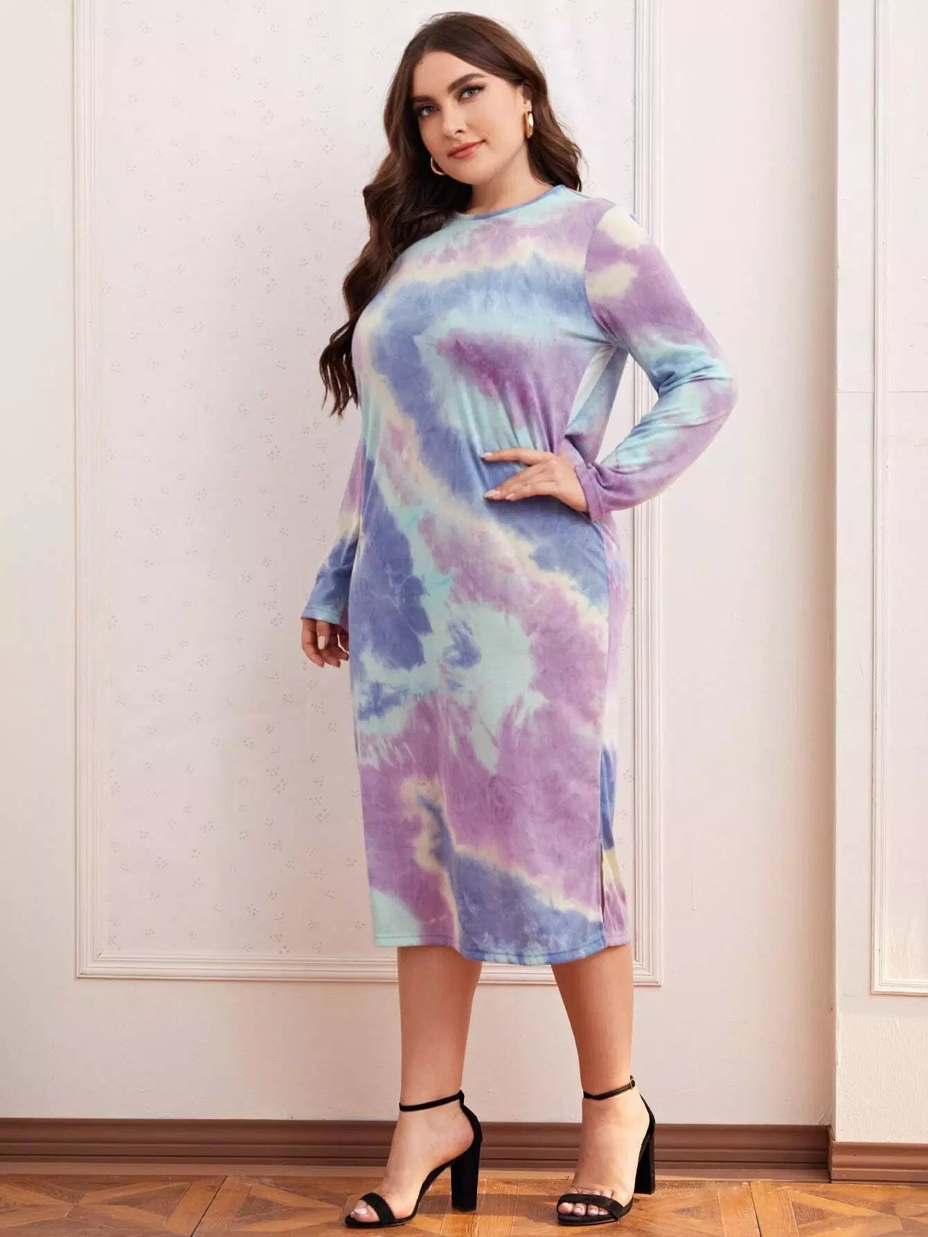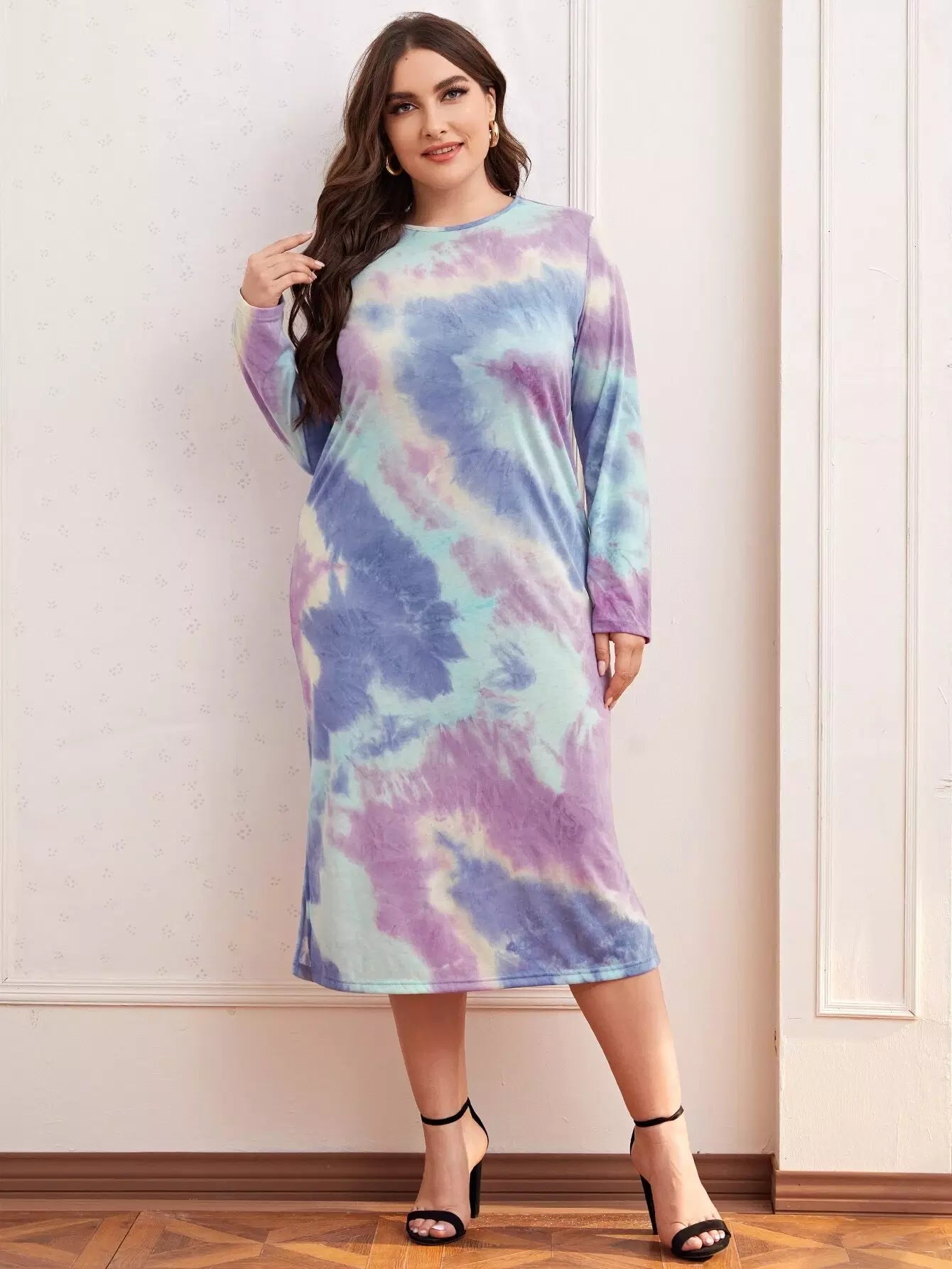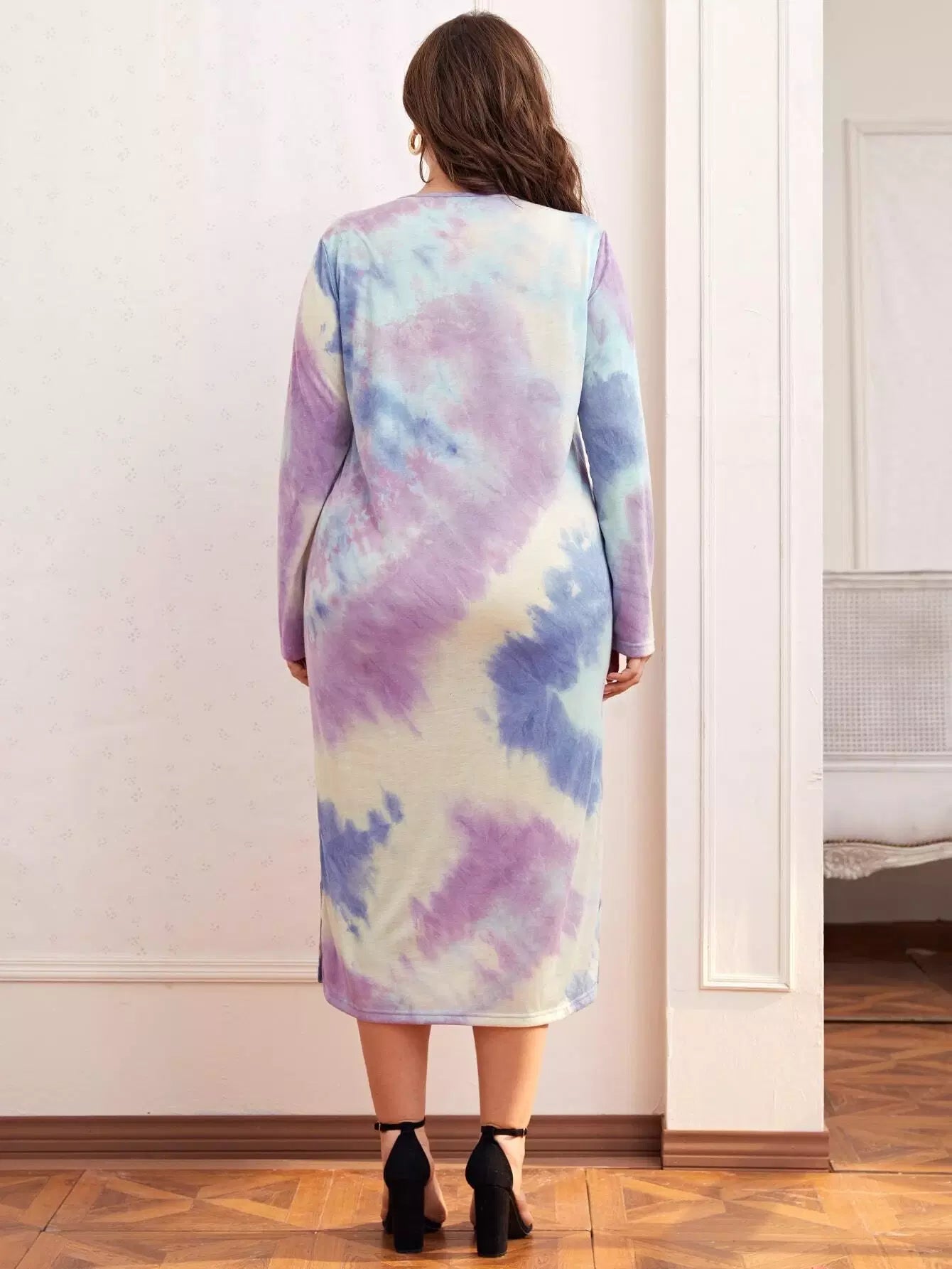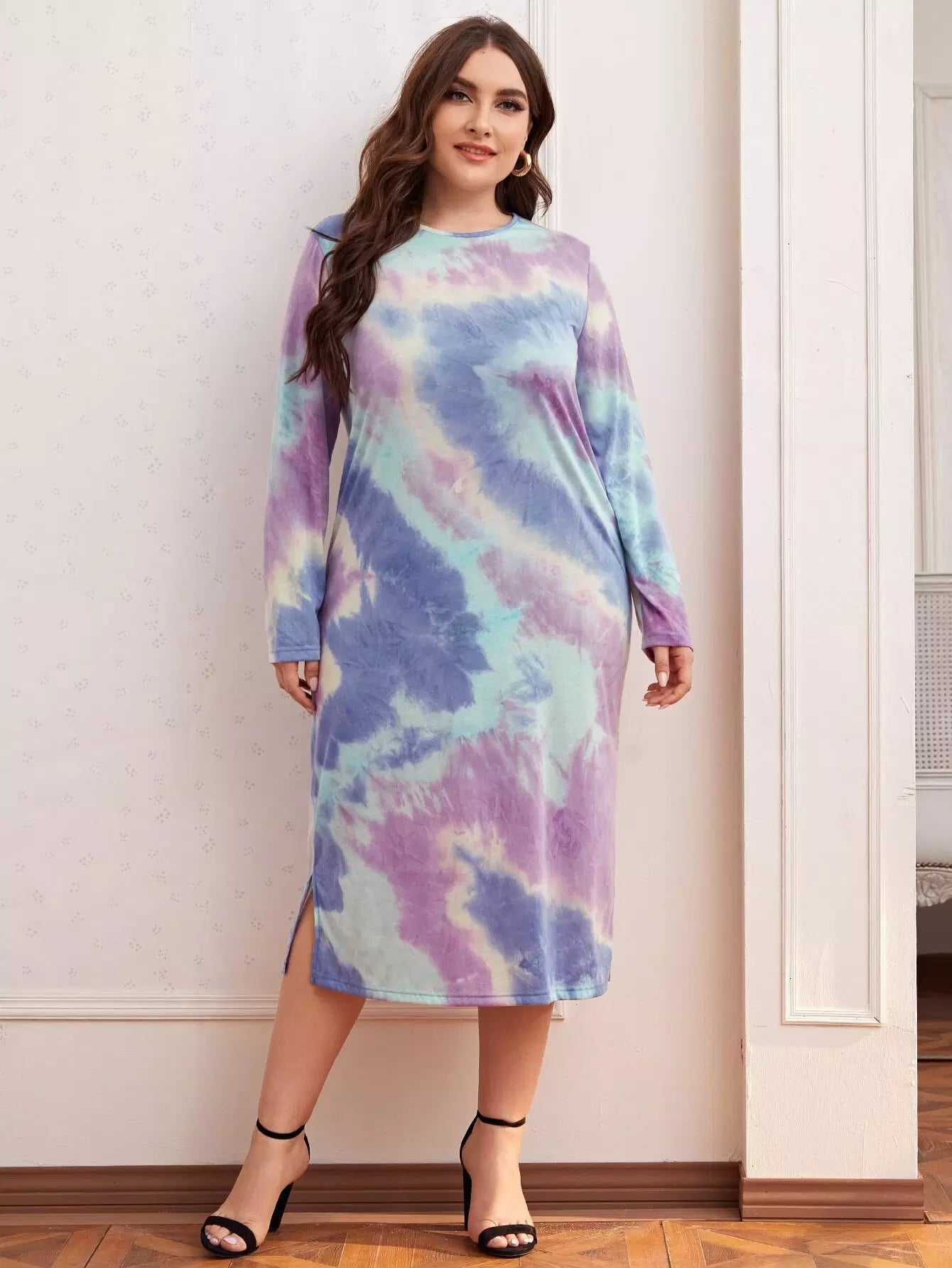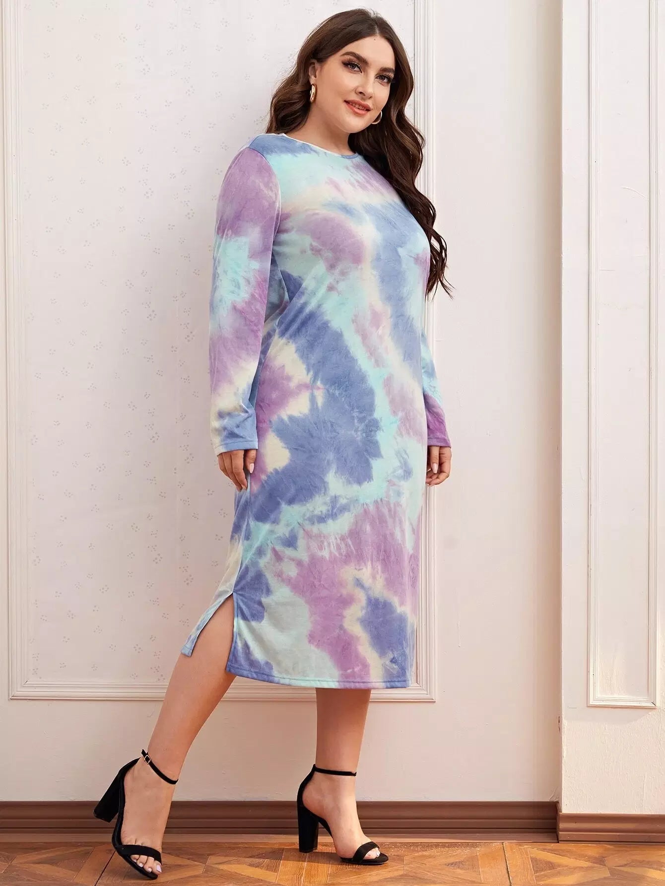 فستان بدون أكمام مصبوغ بربطة عنق منقسمة الحاشية