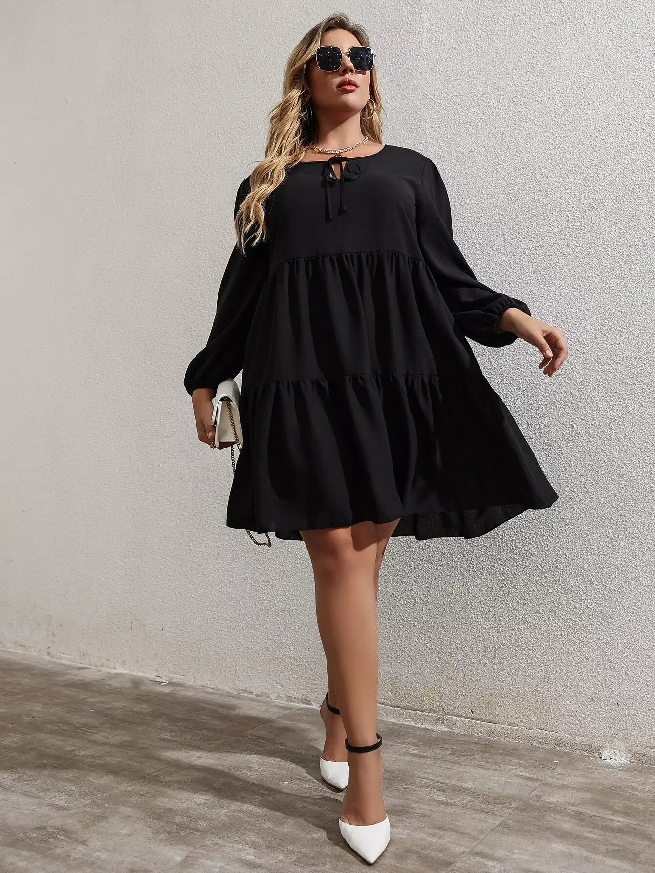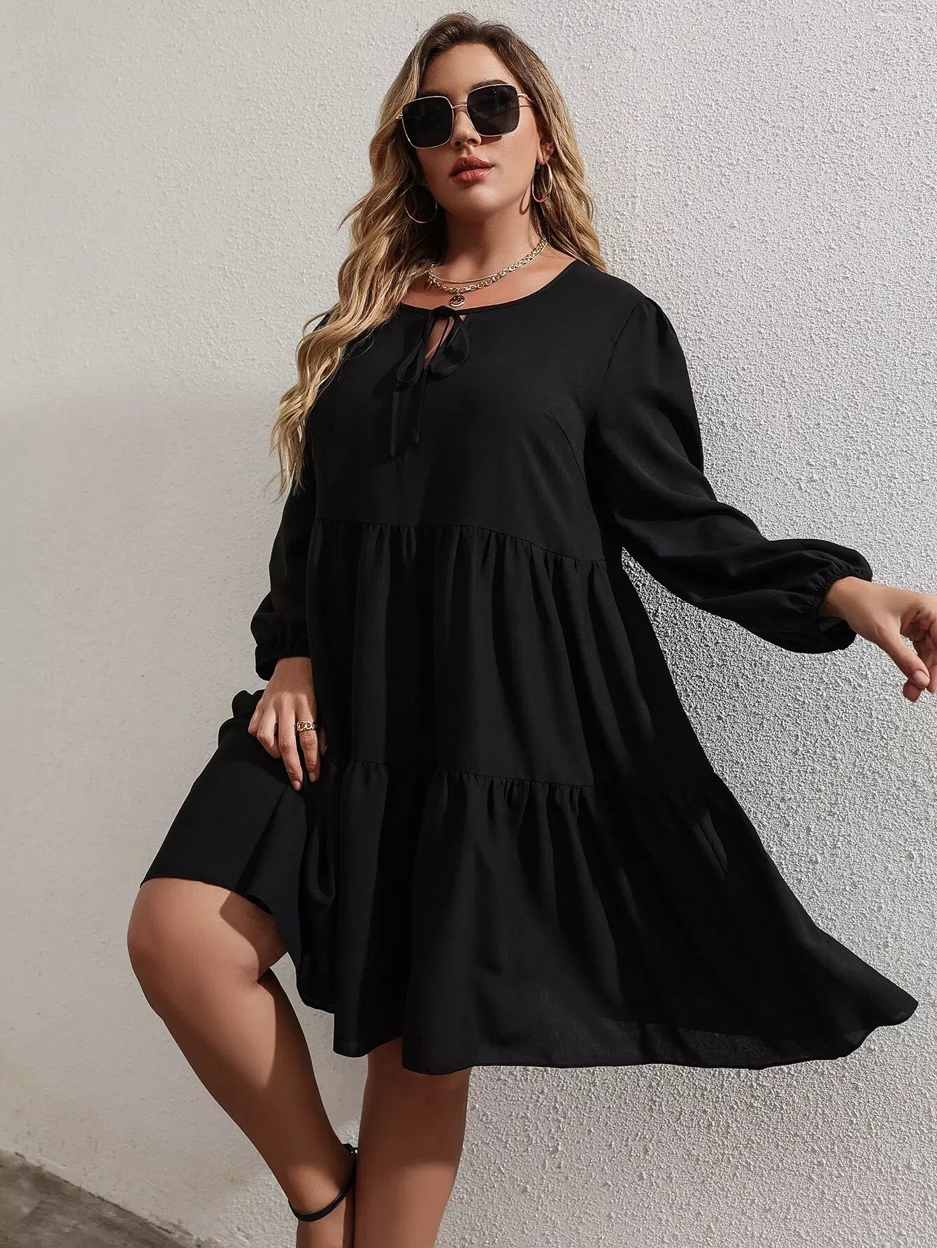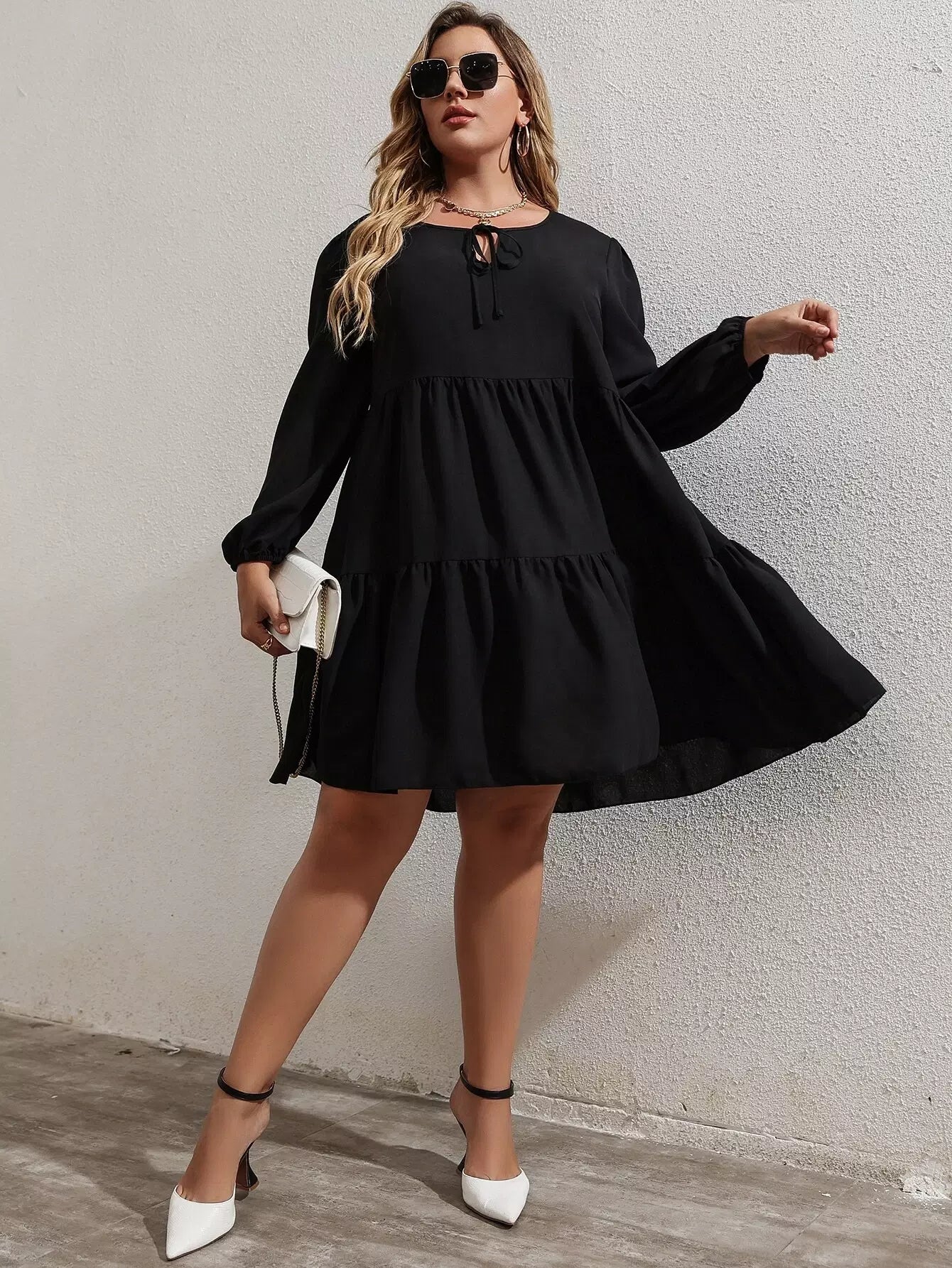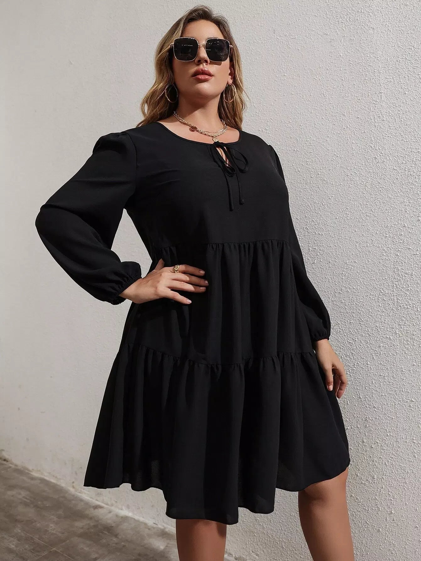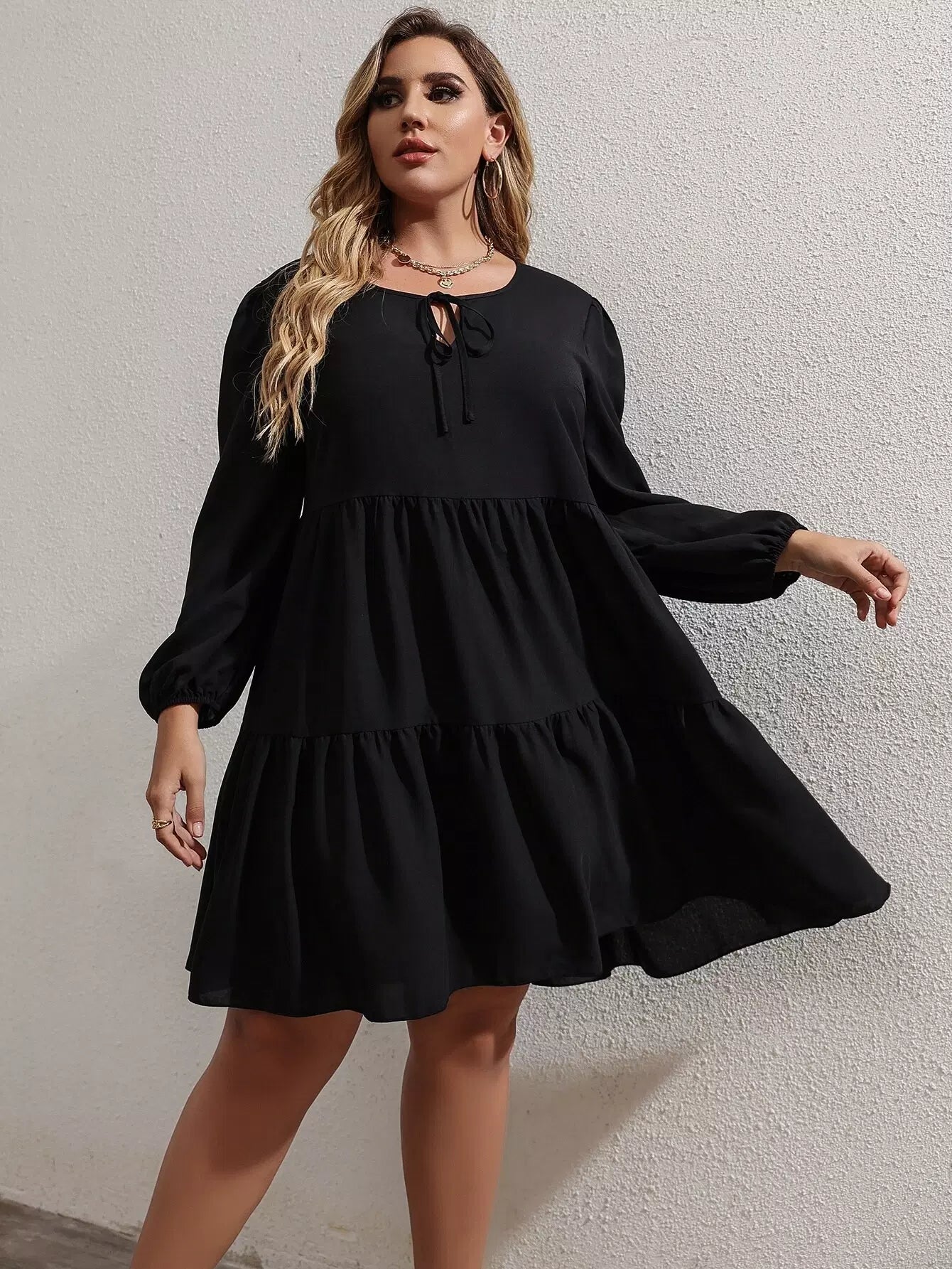 فستان بأكمام مكشكشة بربطة عنق بياقة زائد وأكمام مكشكشة