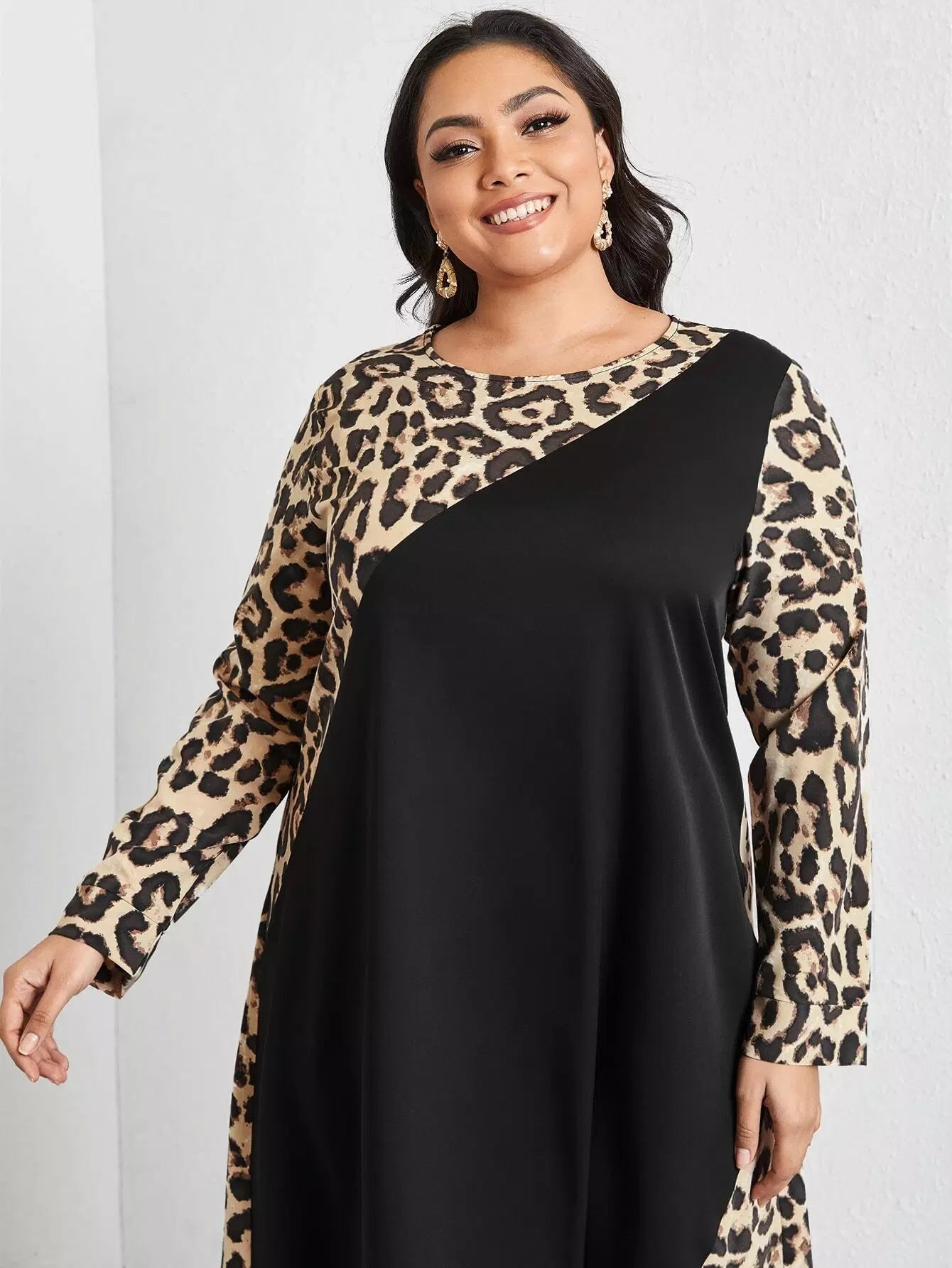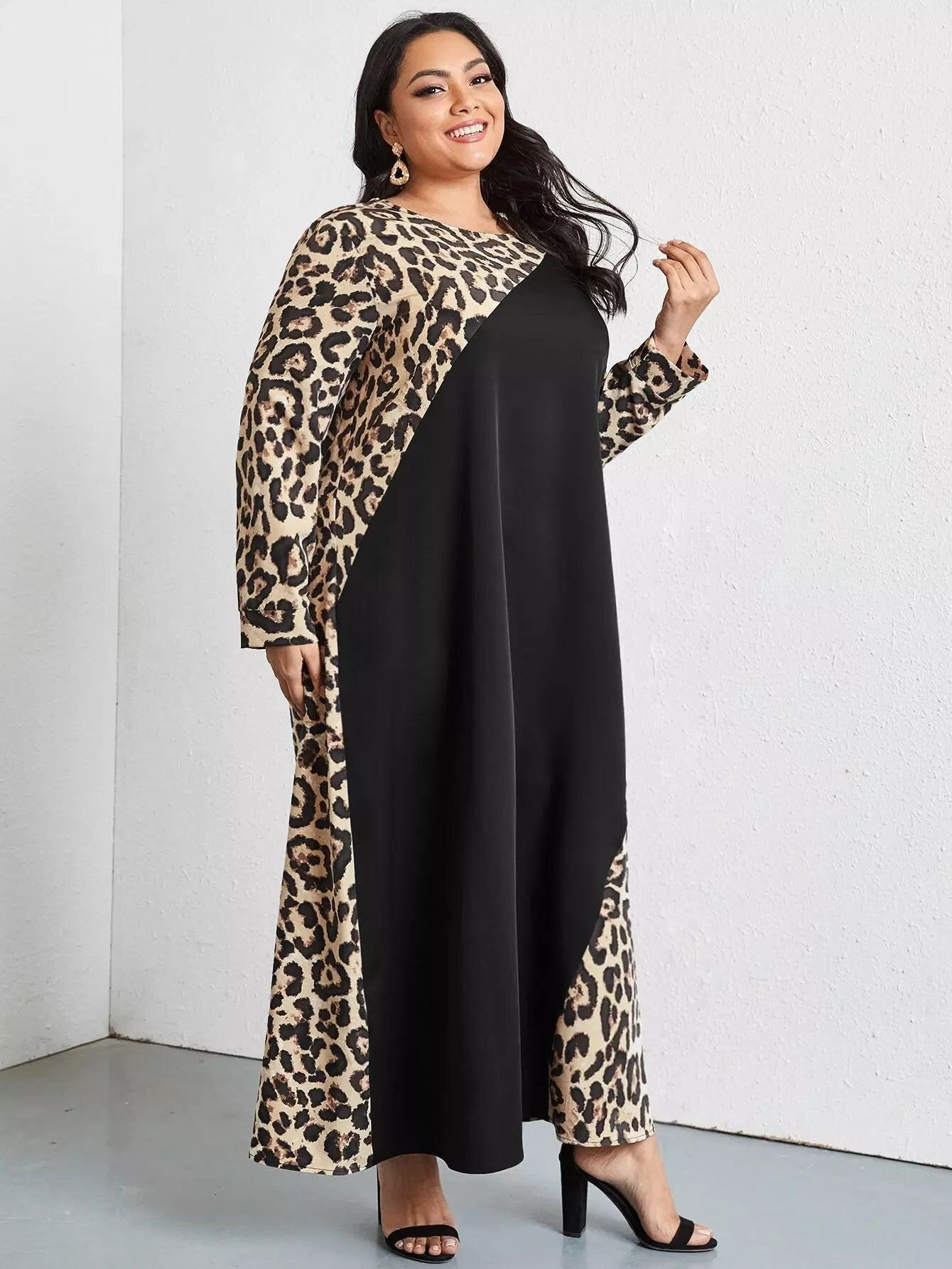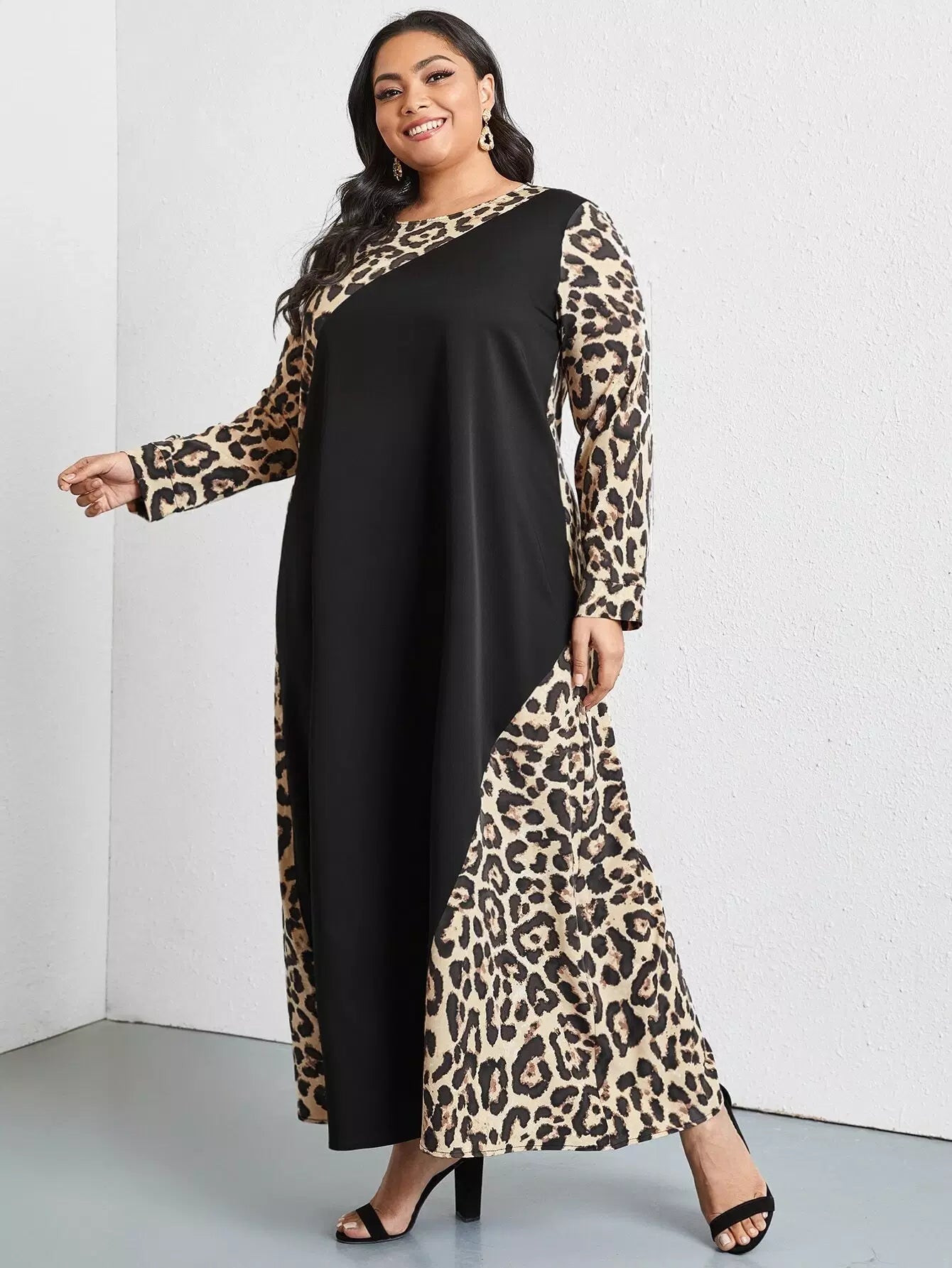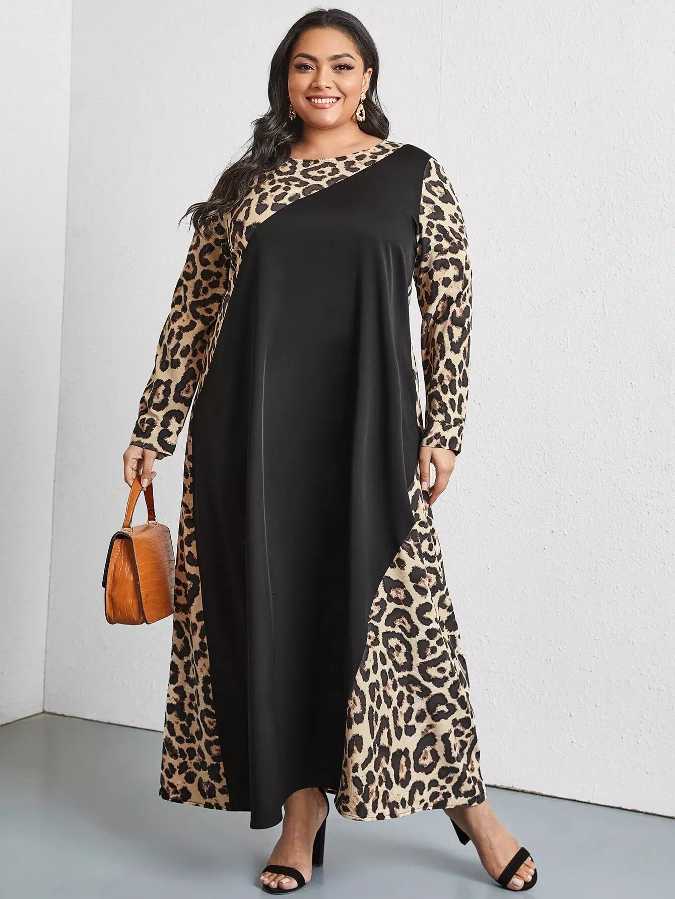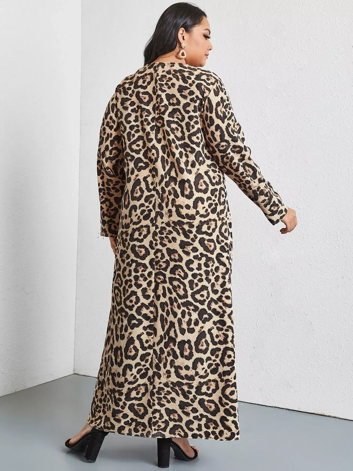 فستان ماكسي بنقشة جلد النمر بلونين زائد