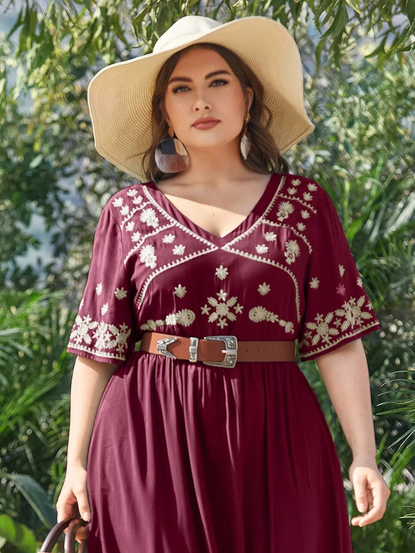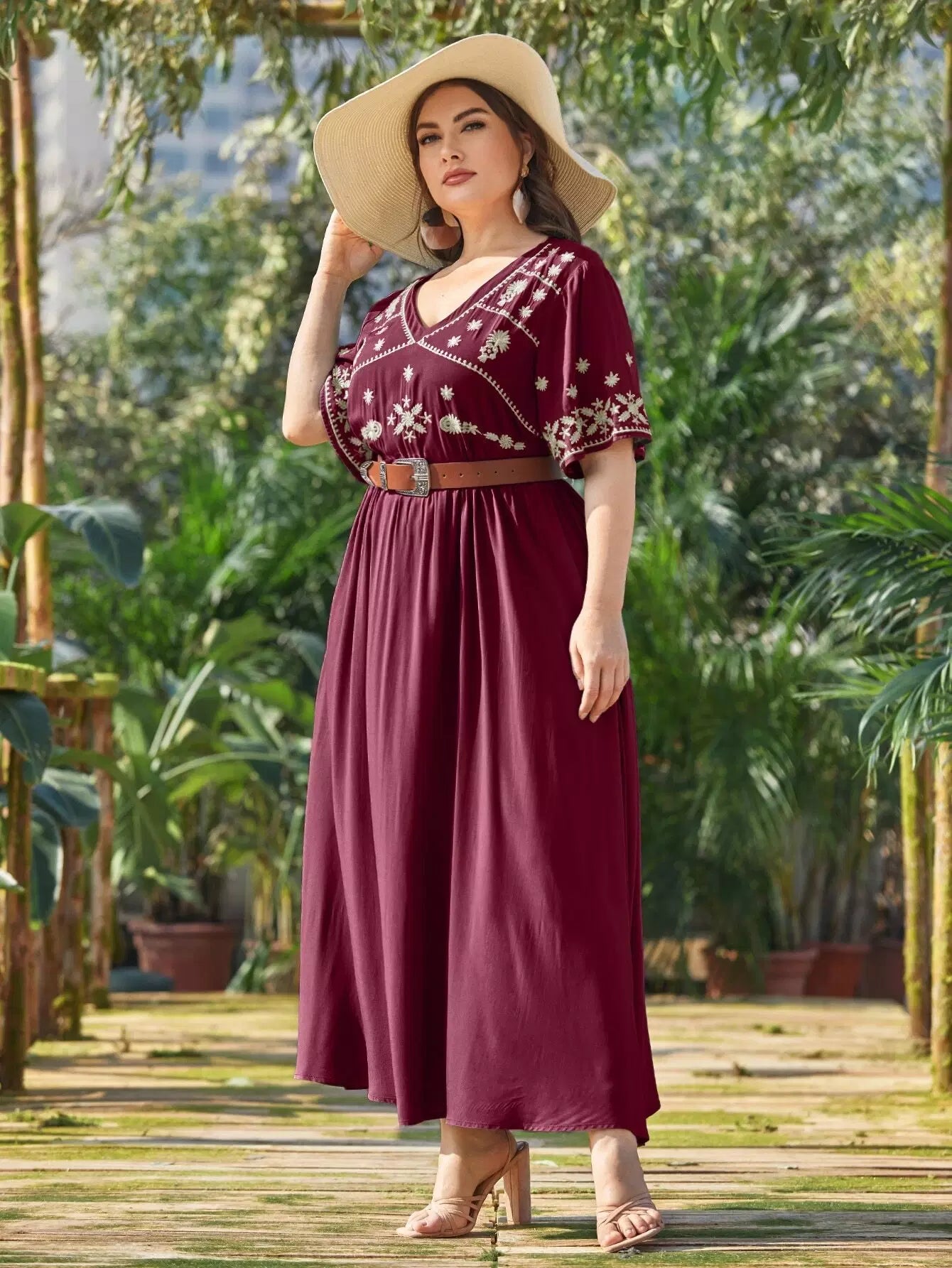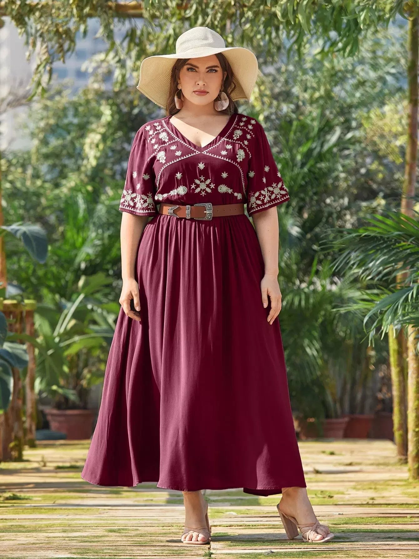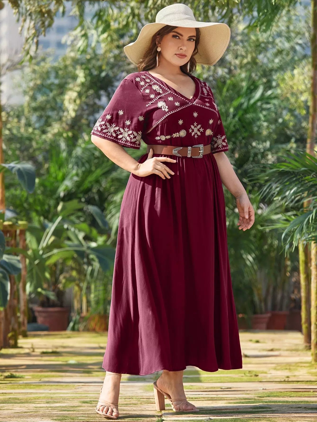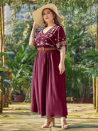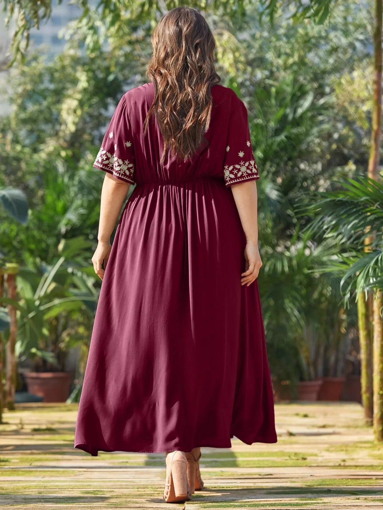 بالإضافة إلى فستان ماكسي مطرز بياقة على شكل حرف V بدون حزام