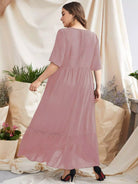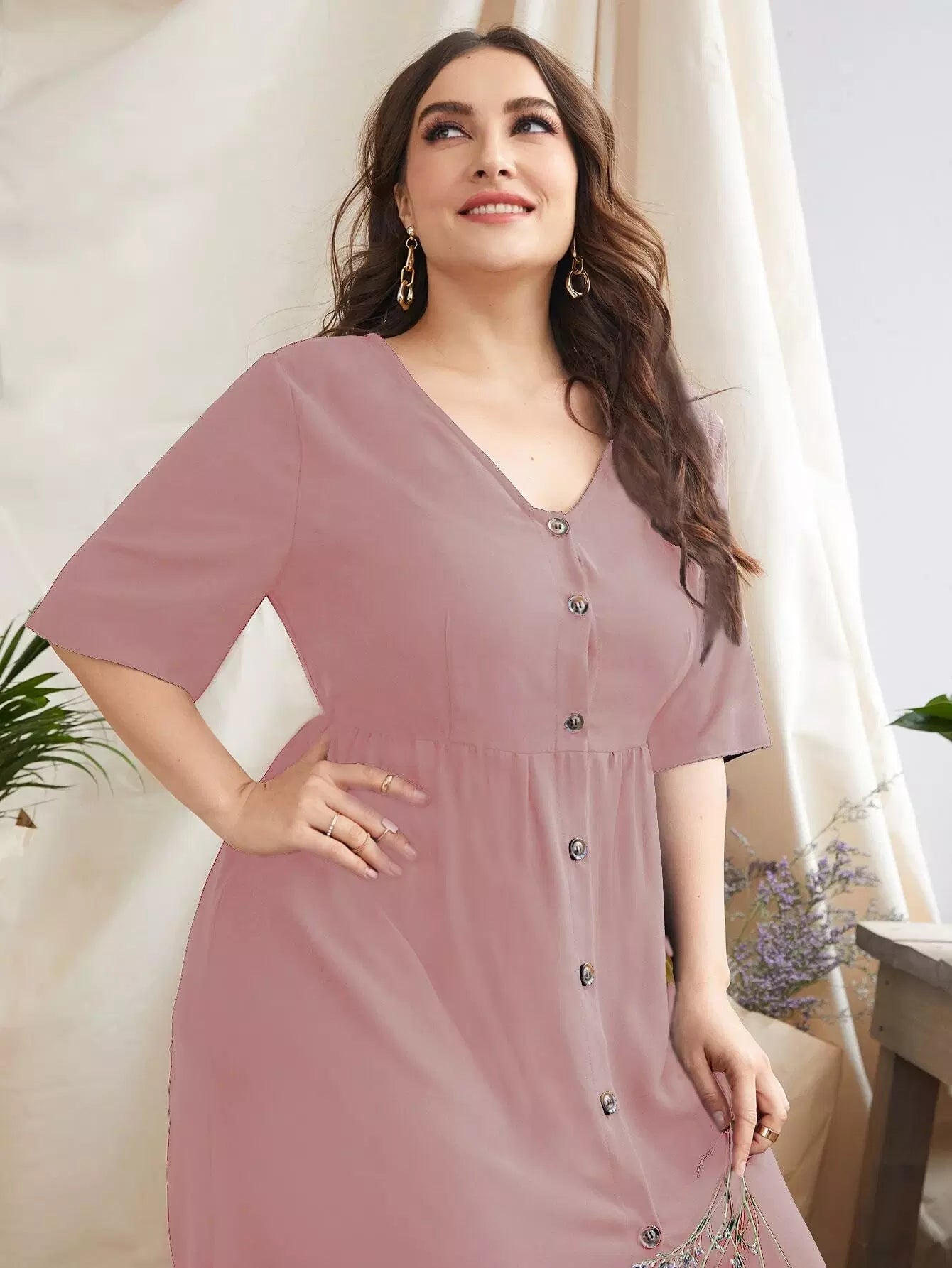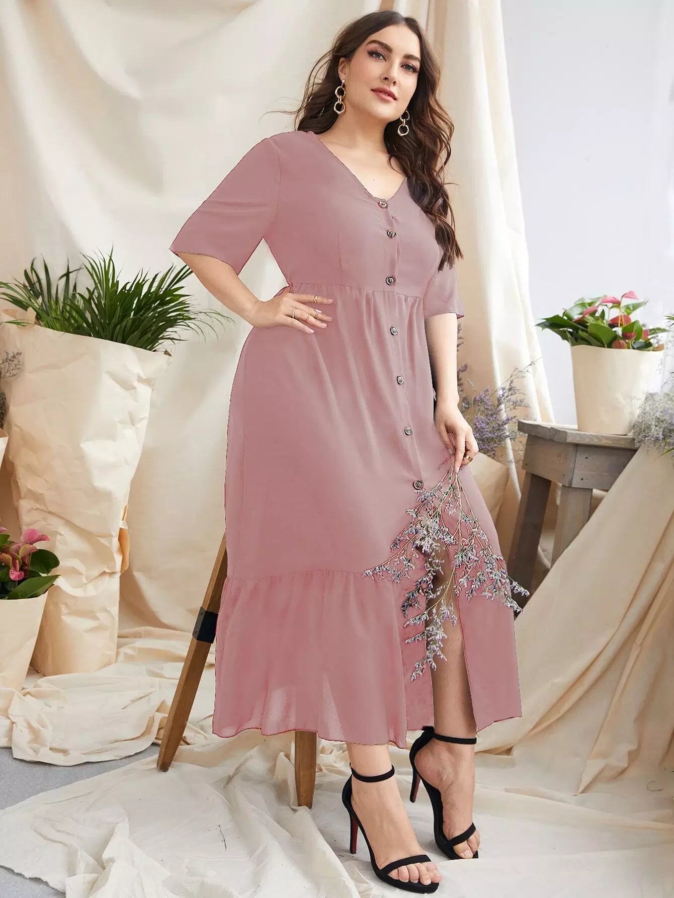 فستان بياقة على شكل حرف A بياقة على شكل حرف V على شكل كشكش
