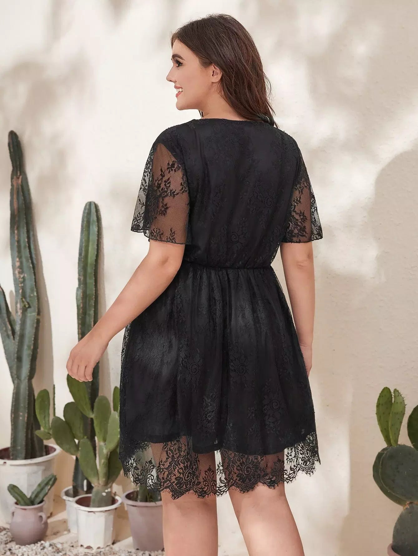 فستان بفتحة ملفوفة من الدانتيل على شكل حرف A