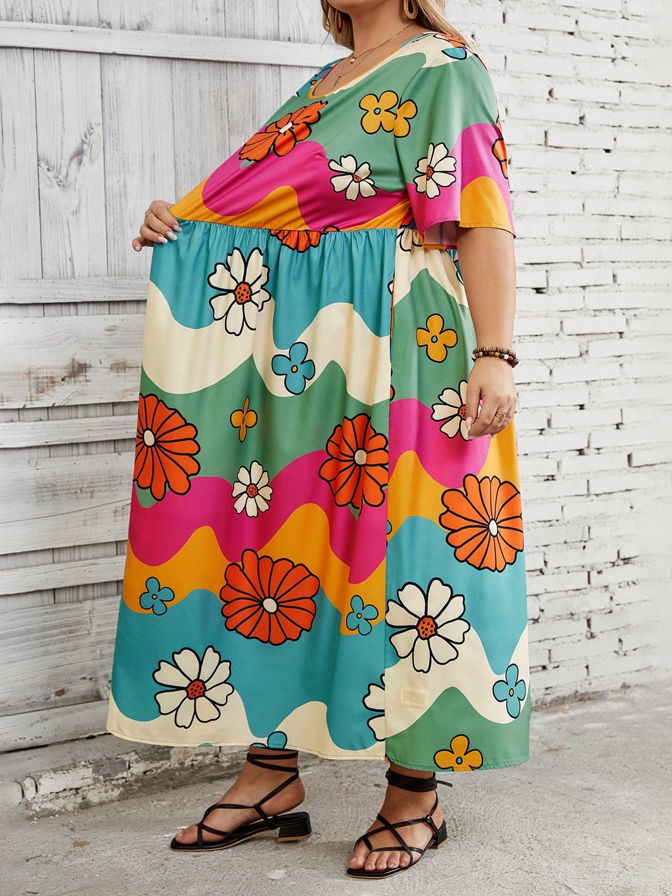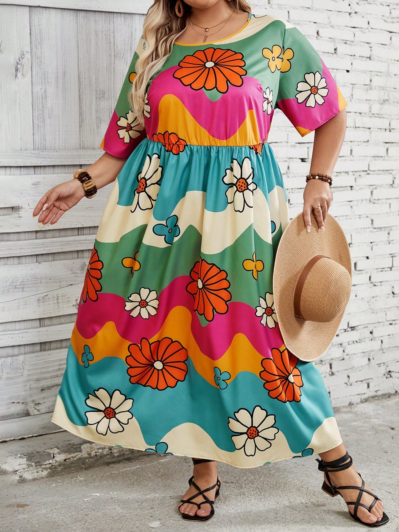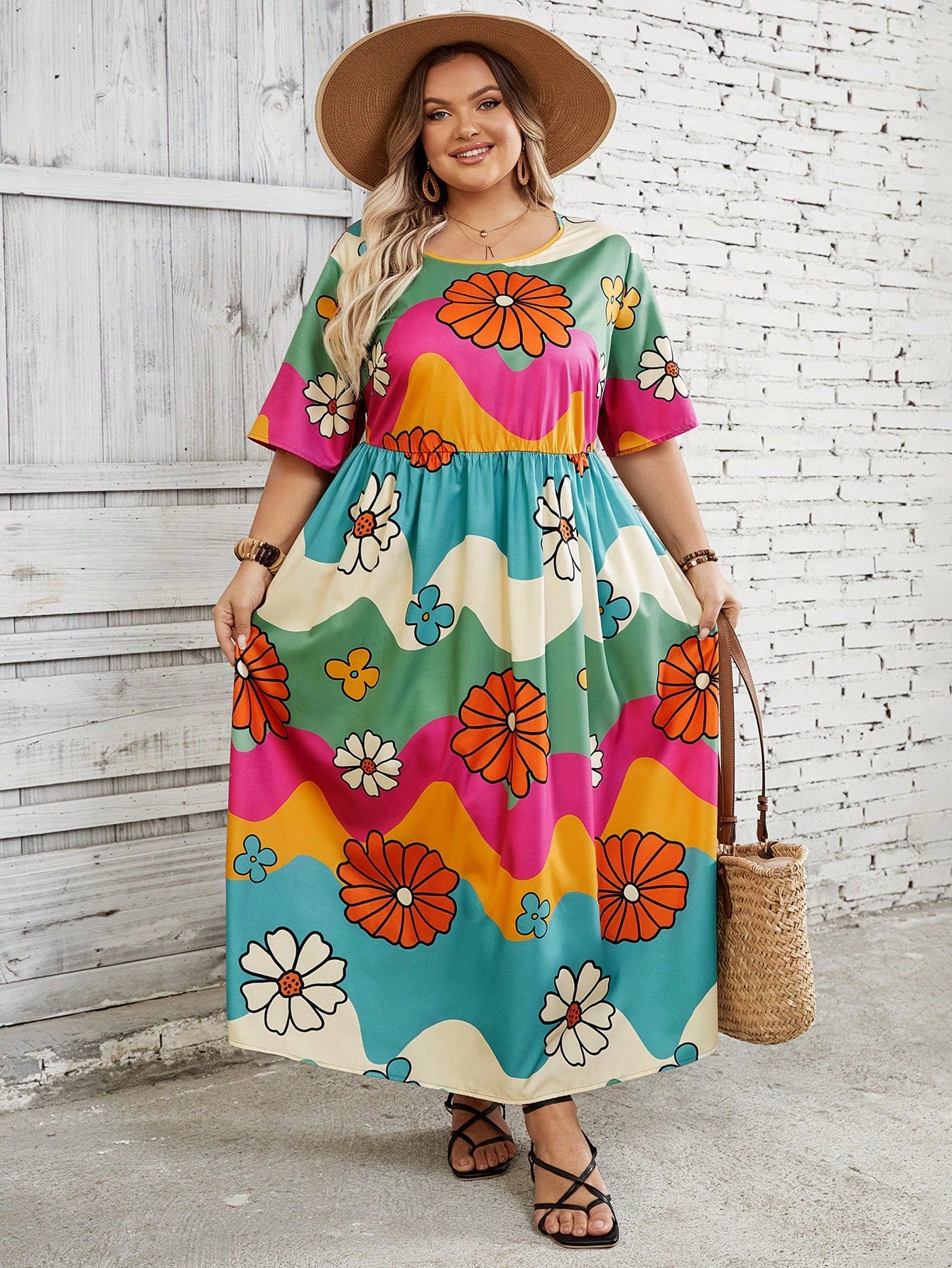 women SHEIN CURVE+ Plus Size Summer Vacation Long Dress