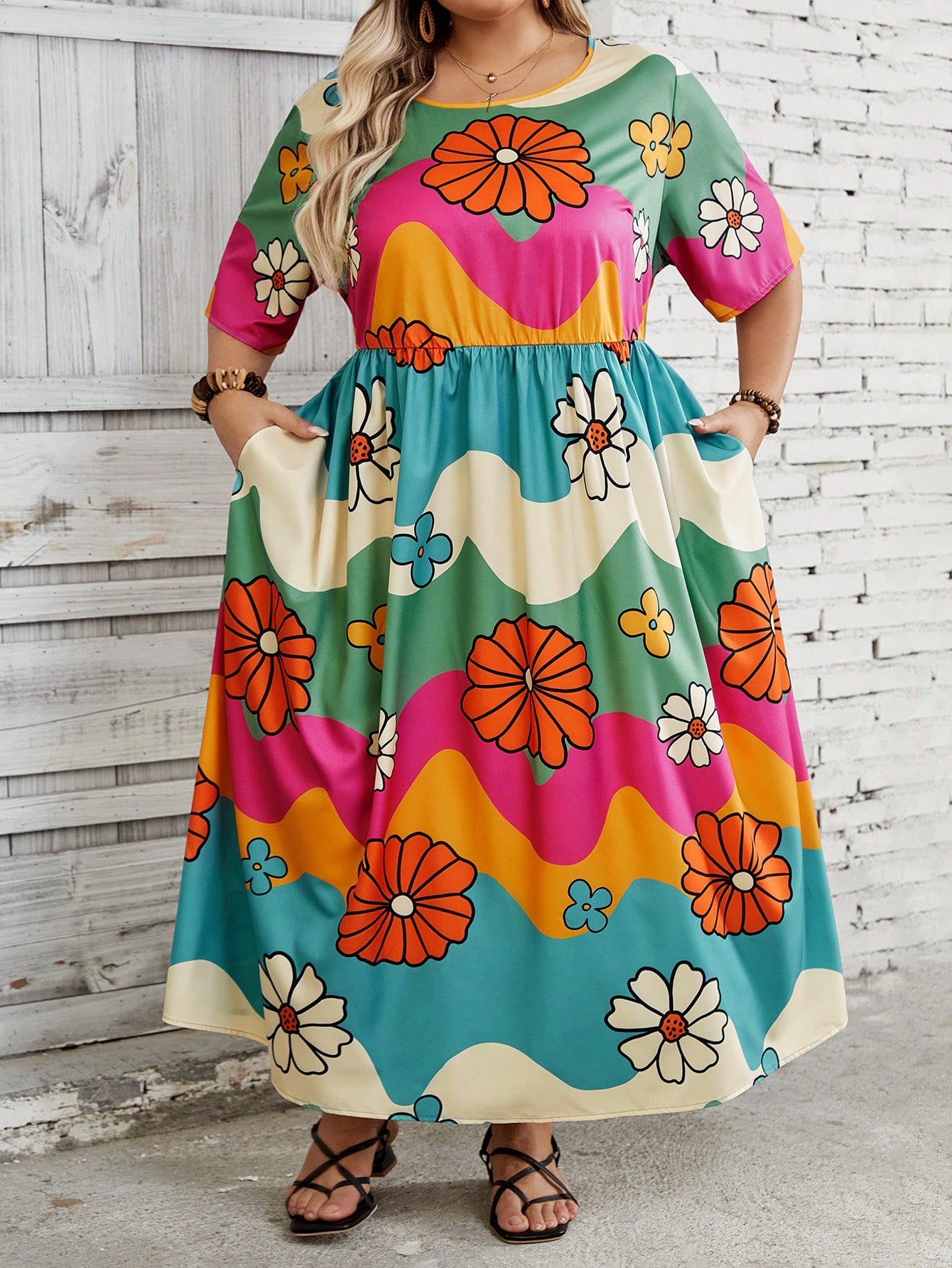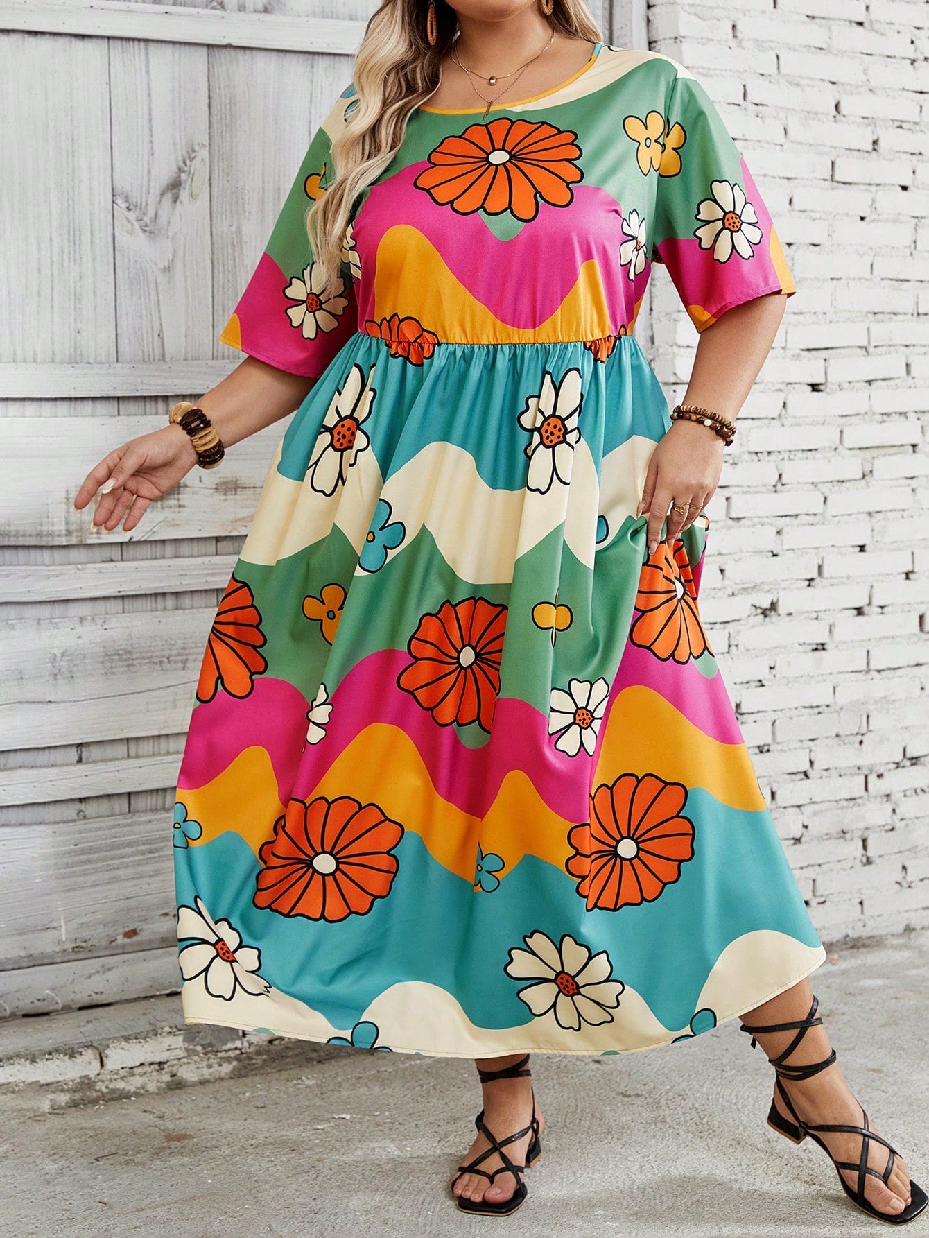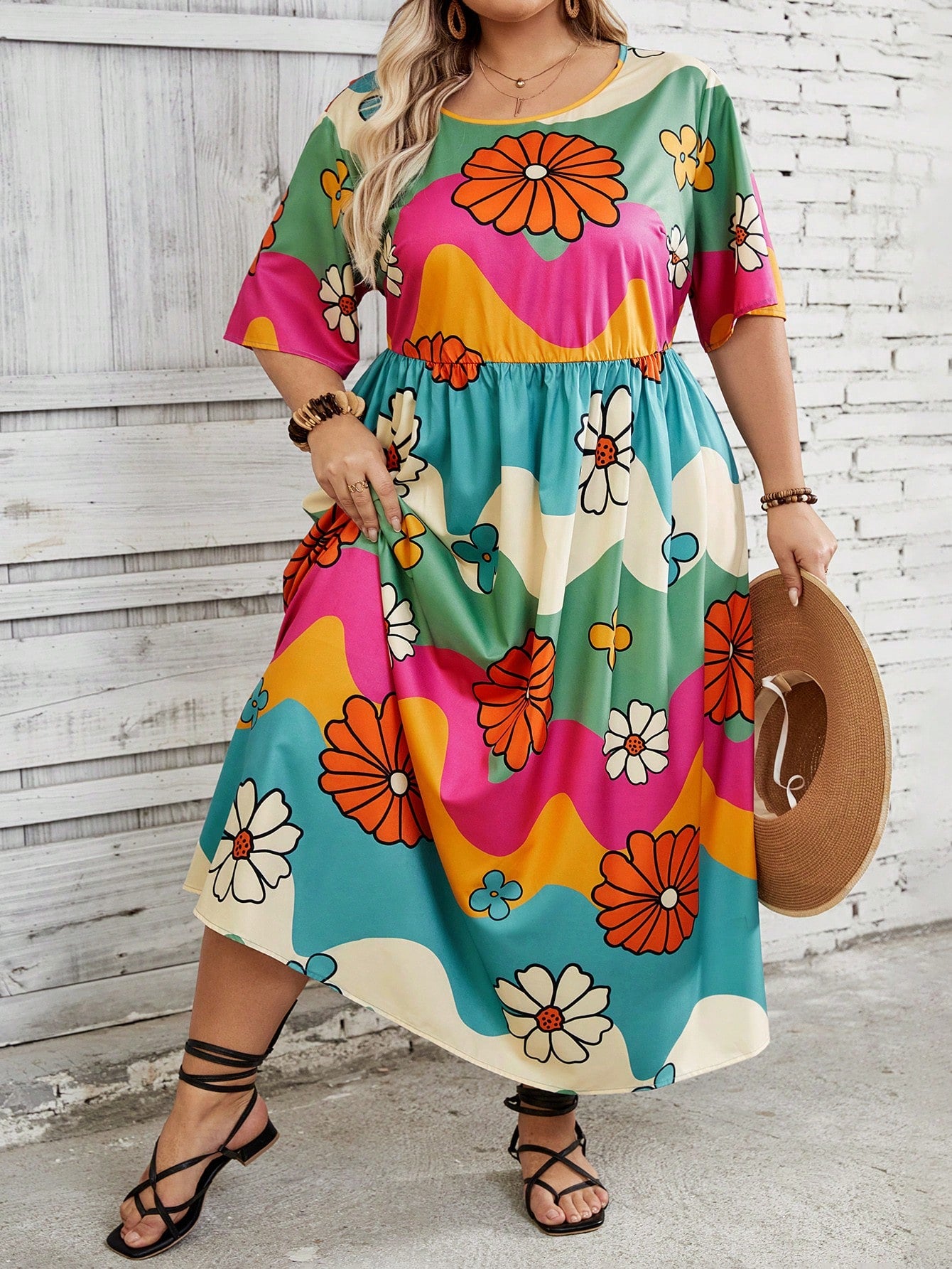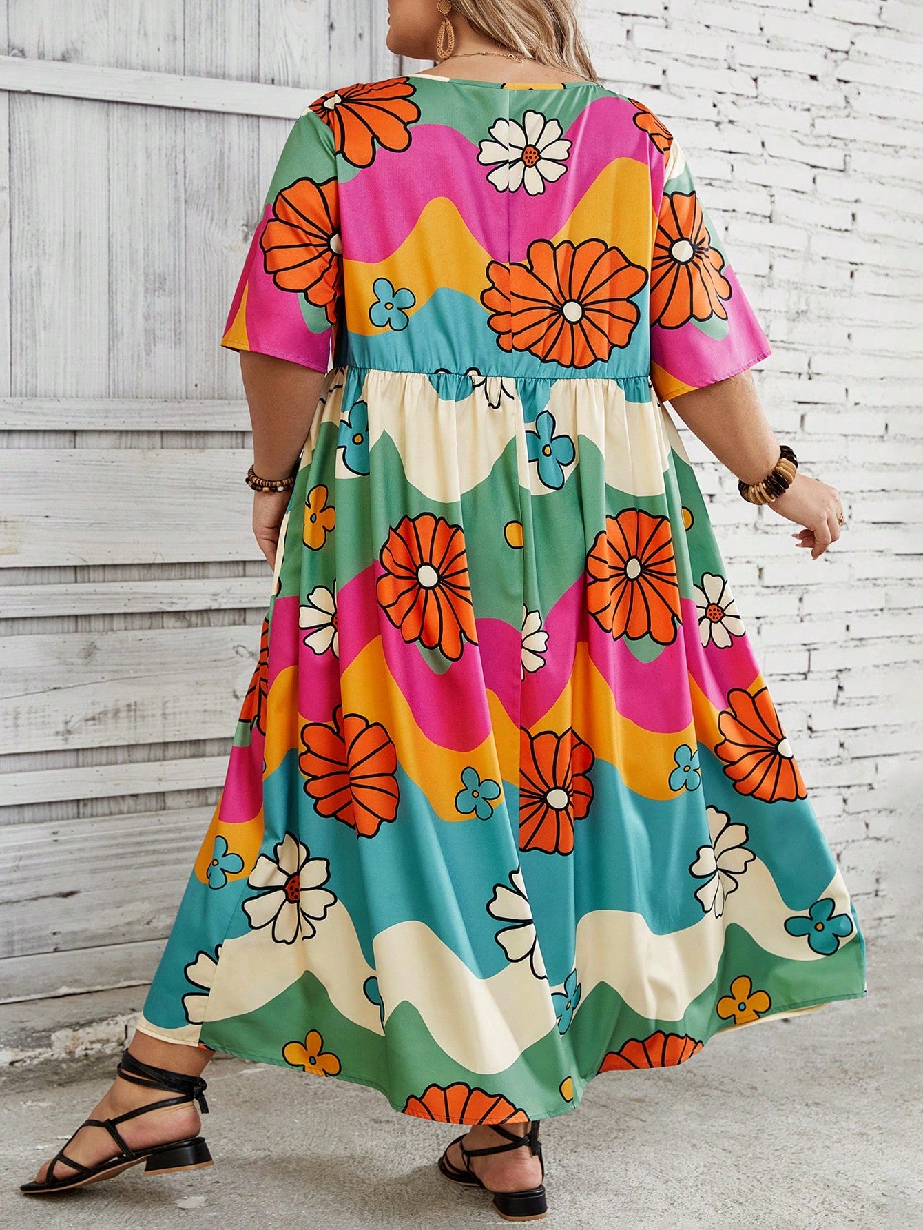 women SHEIN CURVE+ Plus Size Summer Vacation Long Dress