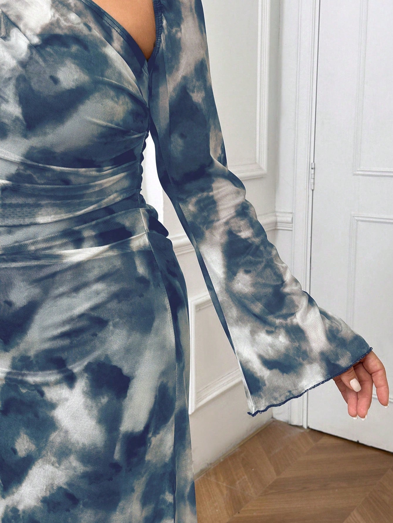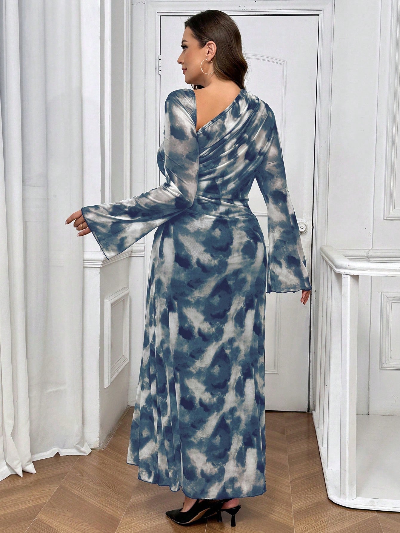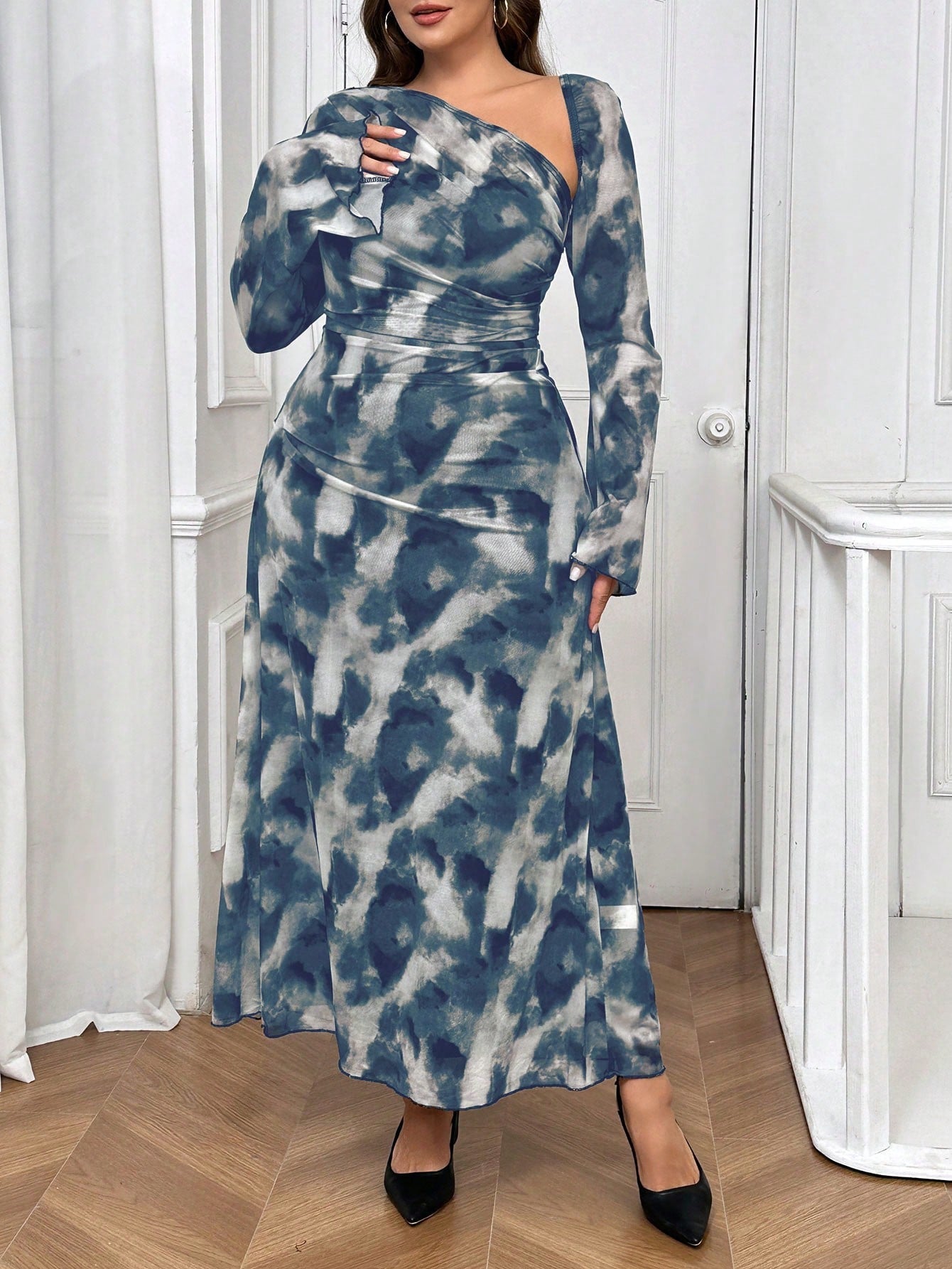 women SHEIN Essnce Plus Size Women's Asymmetric Collar Tie-Dye Print Long Sleeve Elegant Fashion Dress Fall Women Dresses Asymmetrical