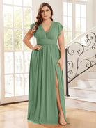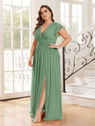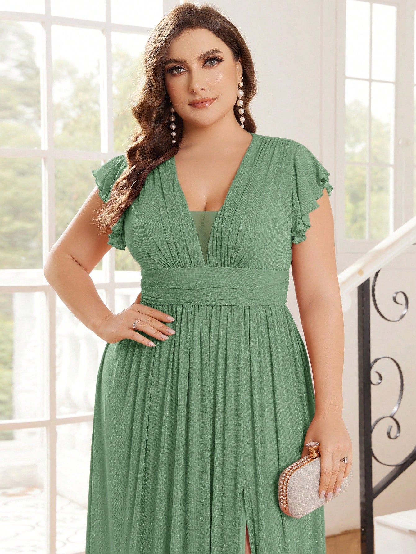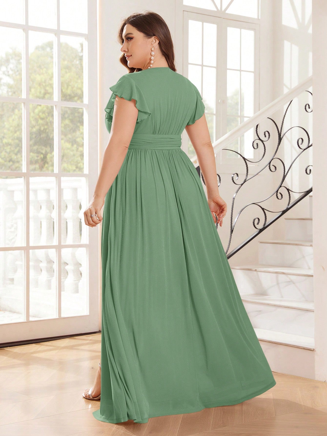 فستان واسع من قماش فضي لامع، مقاس كبير، بياقة على شكل حرف V، من ماركة Belle Plus Size