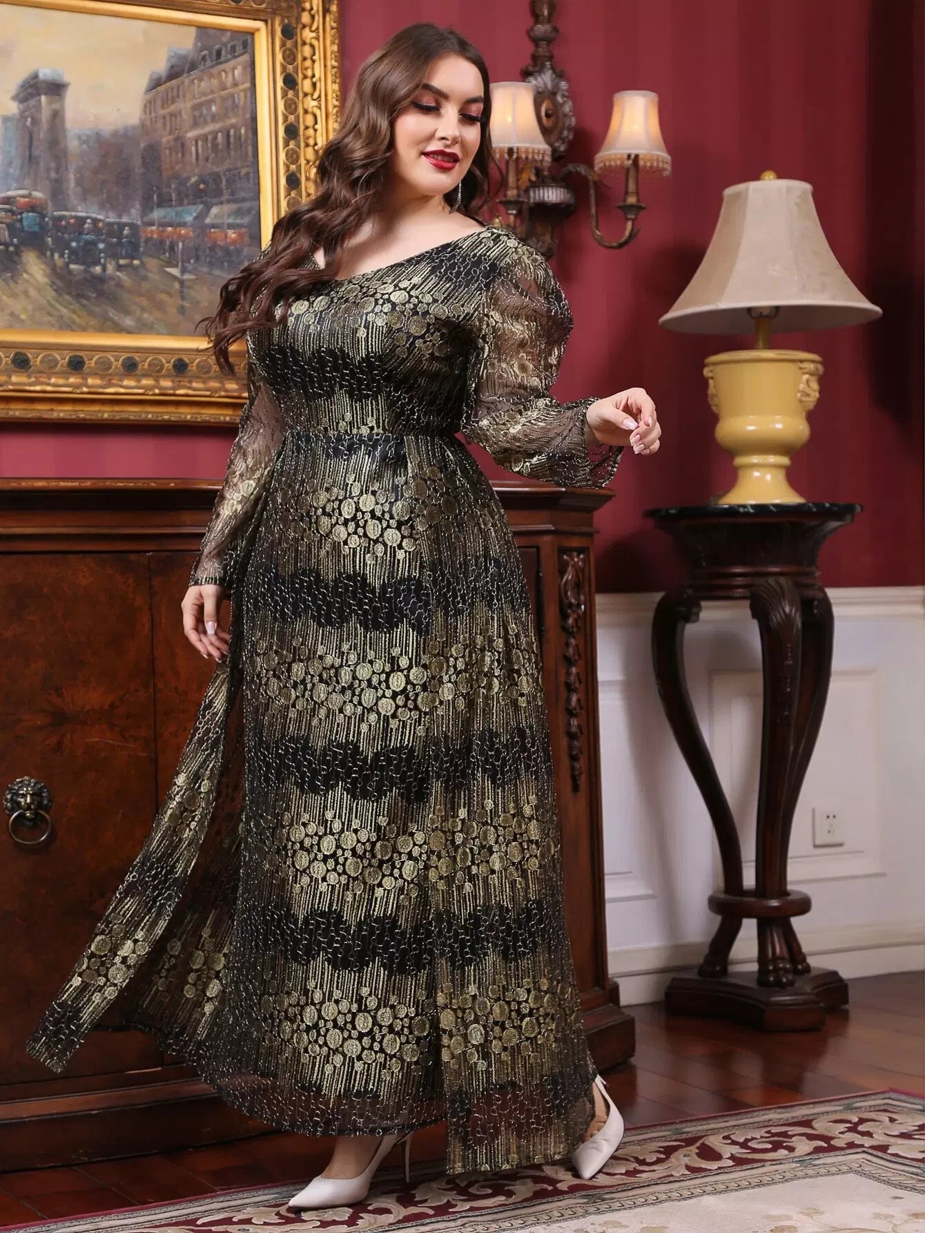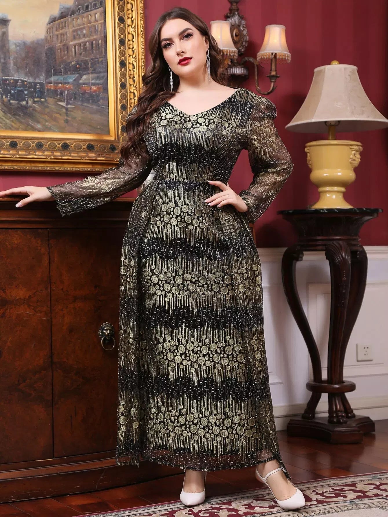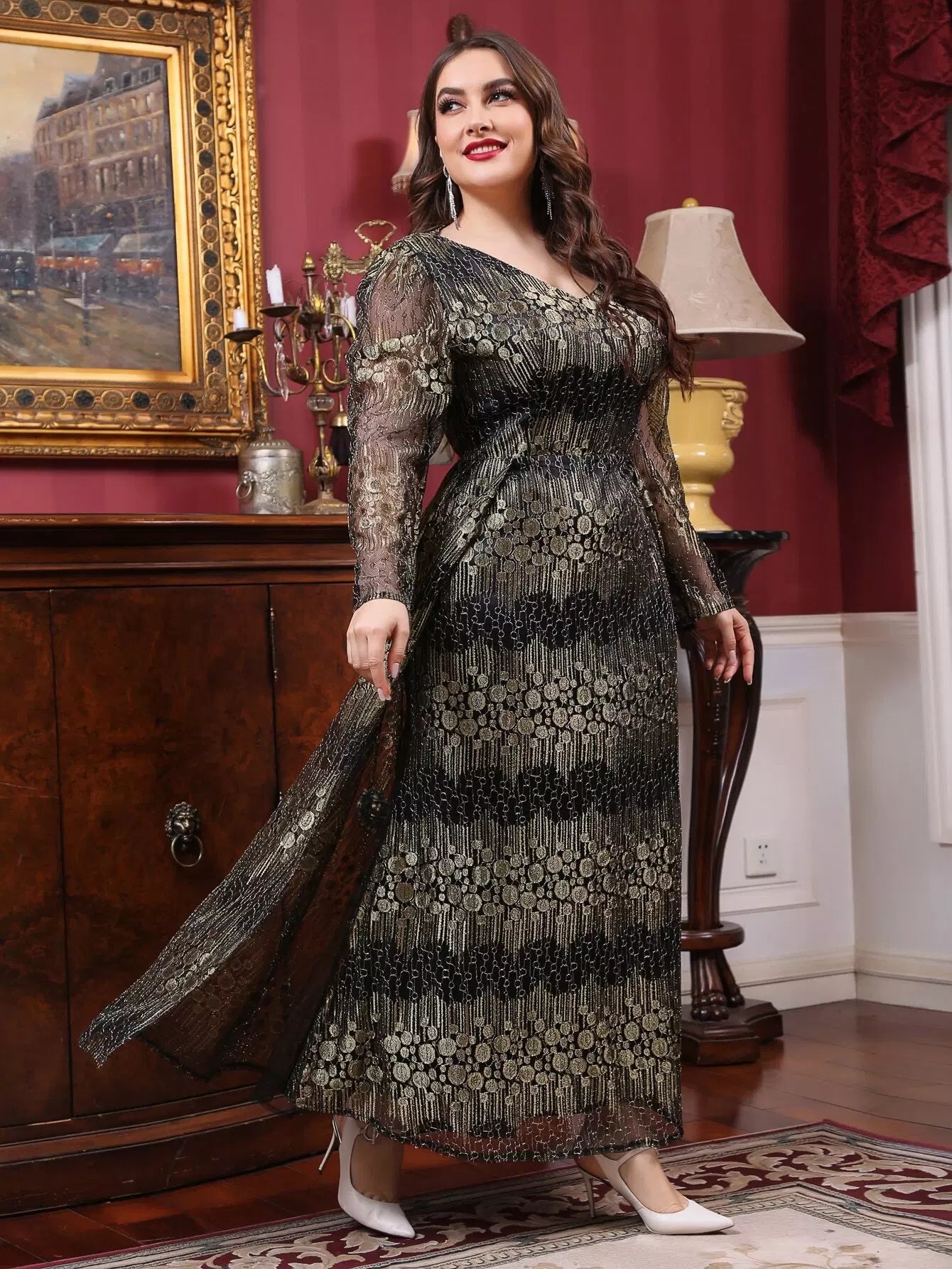 نحيف - مقاس كبير فستان مطرز بحاشية ملفوفة