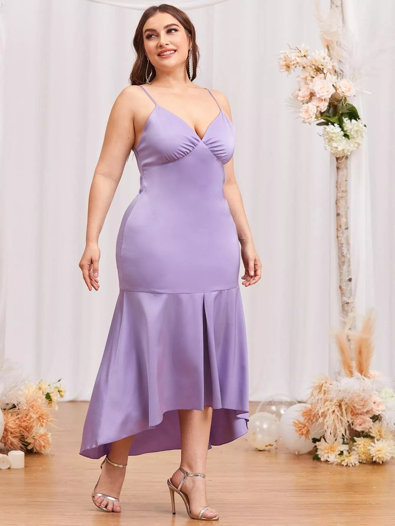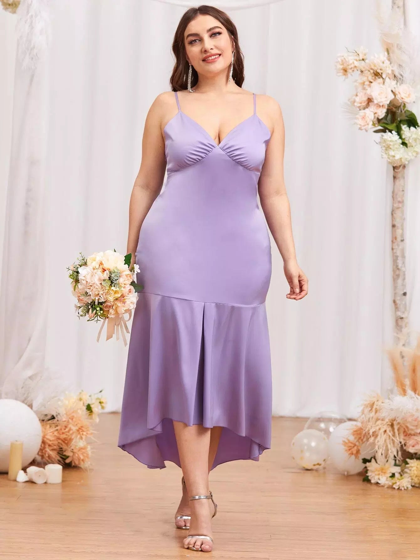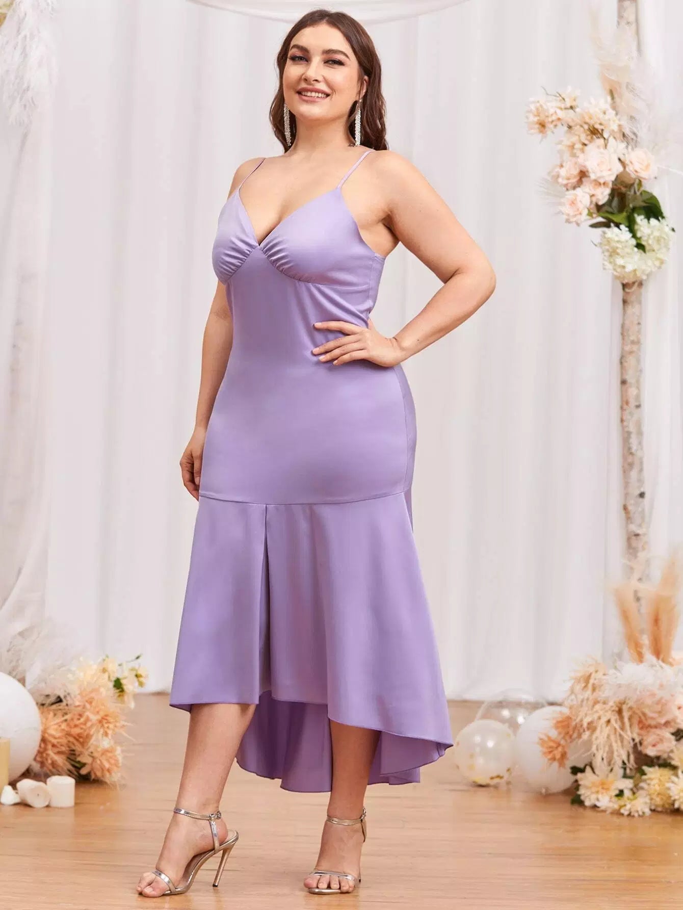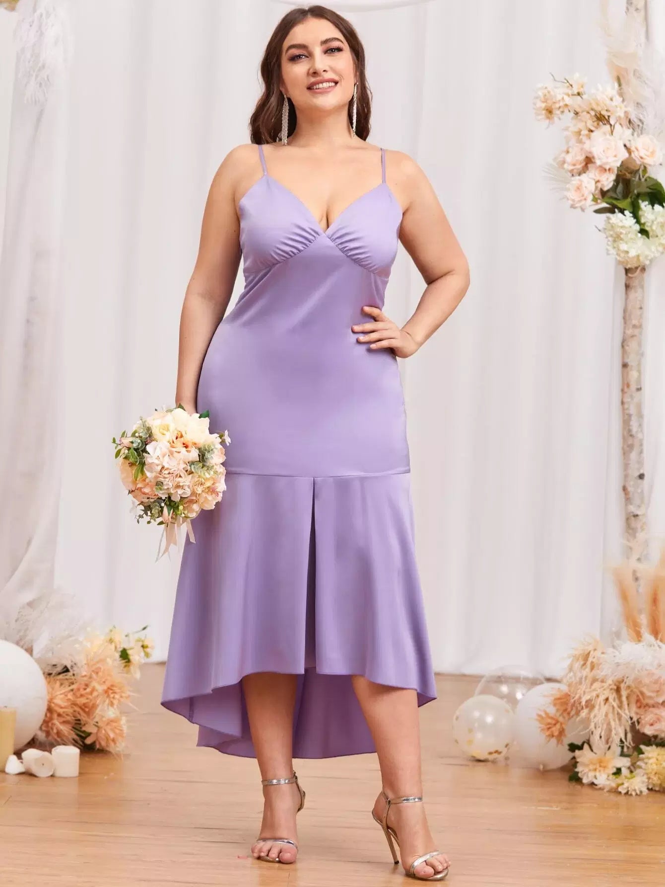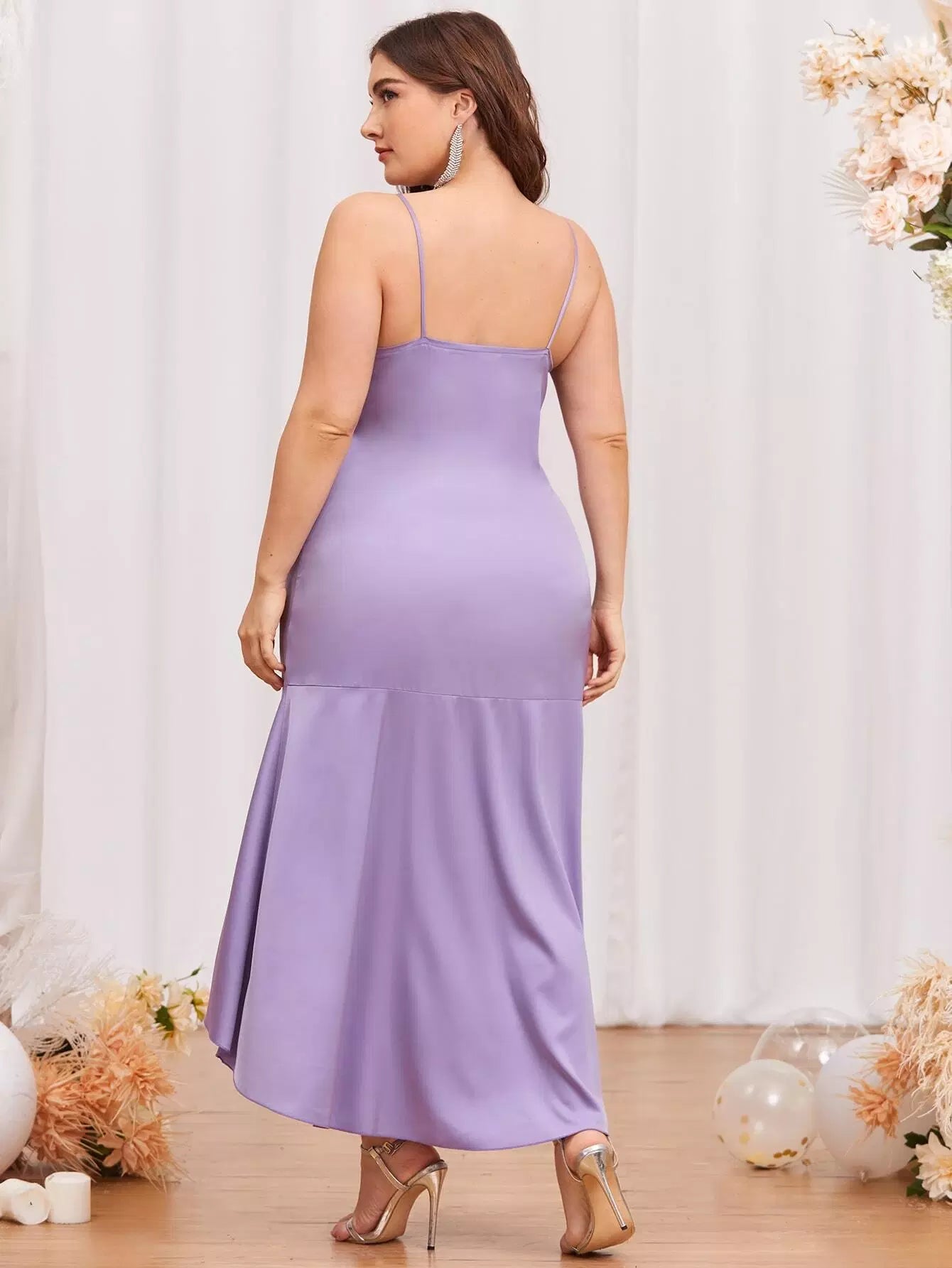 فستان كامي بحواف كشكش عالية منخفضة زائد