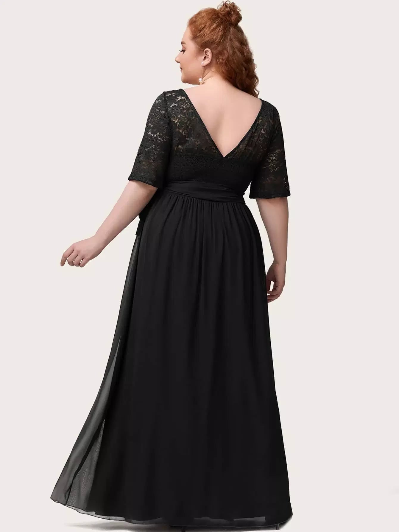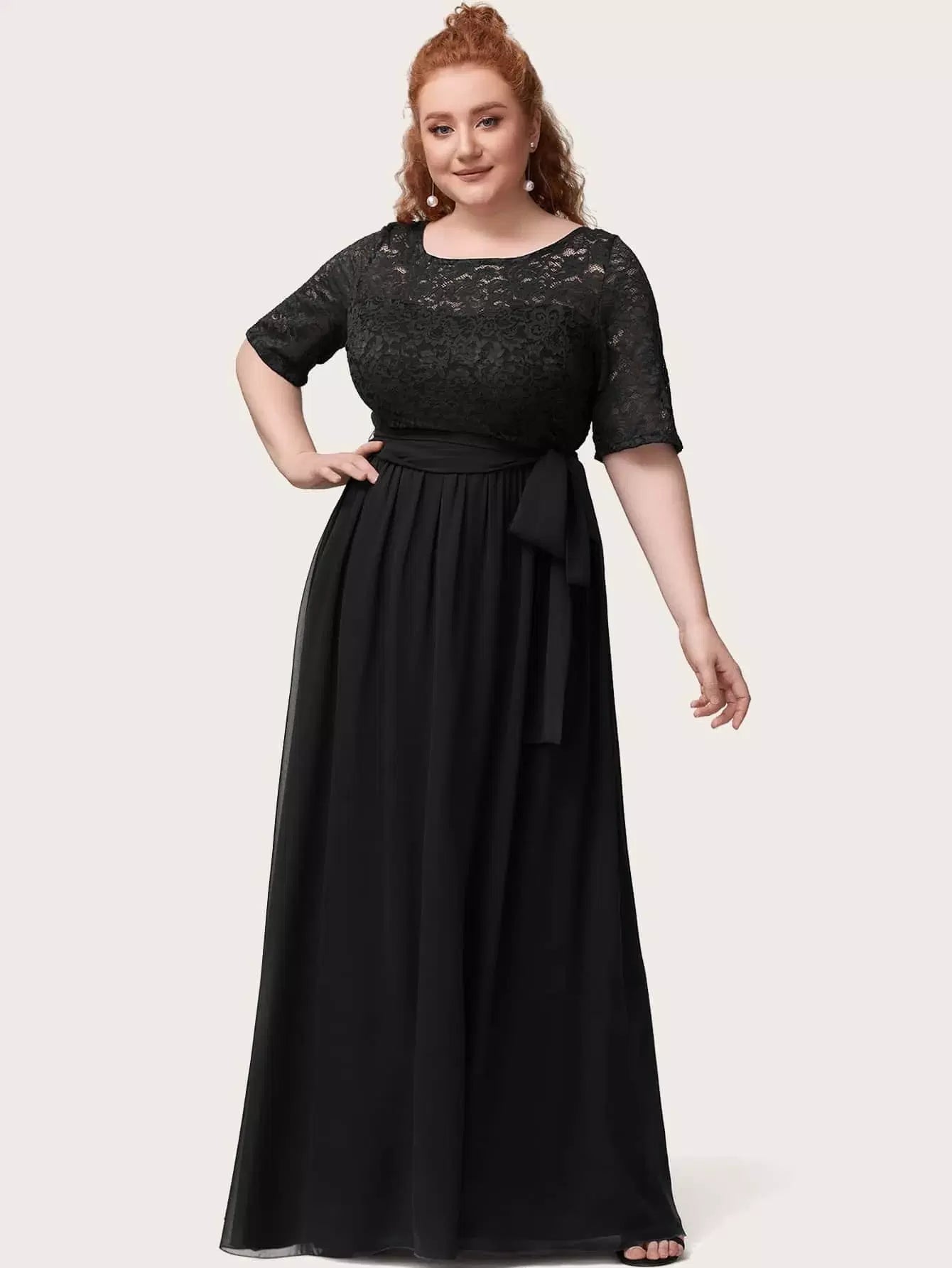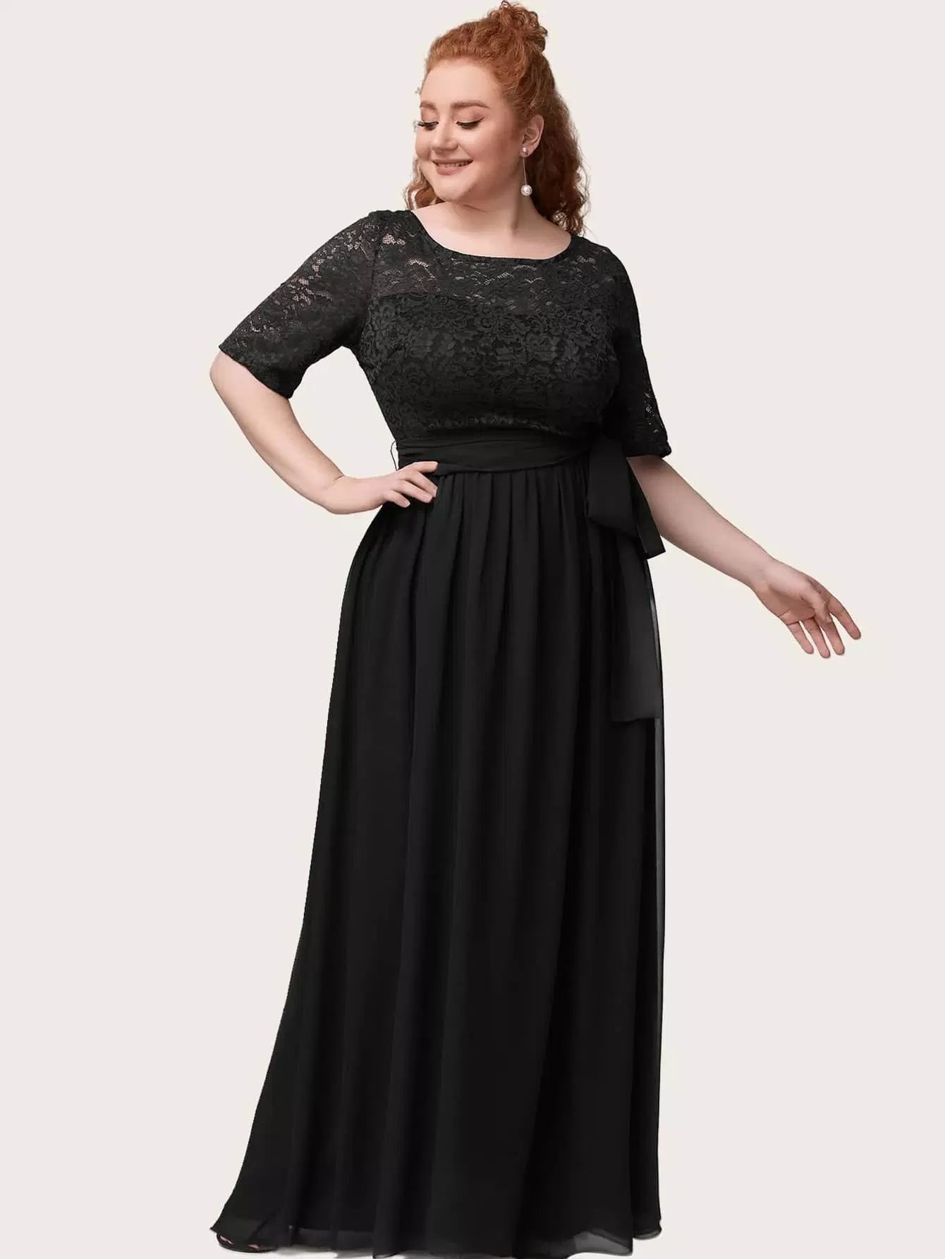 بالإضافة إلى فستان حفلة موسيقية من الدانتيل بدون حزام