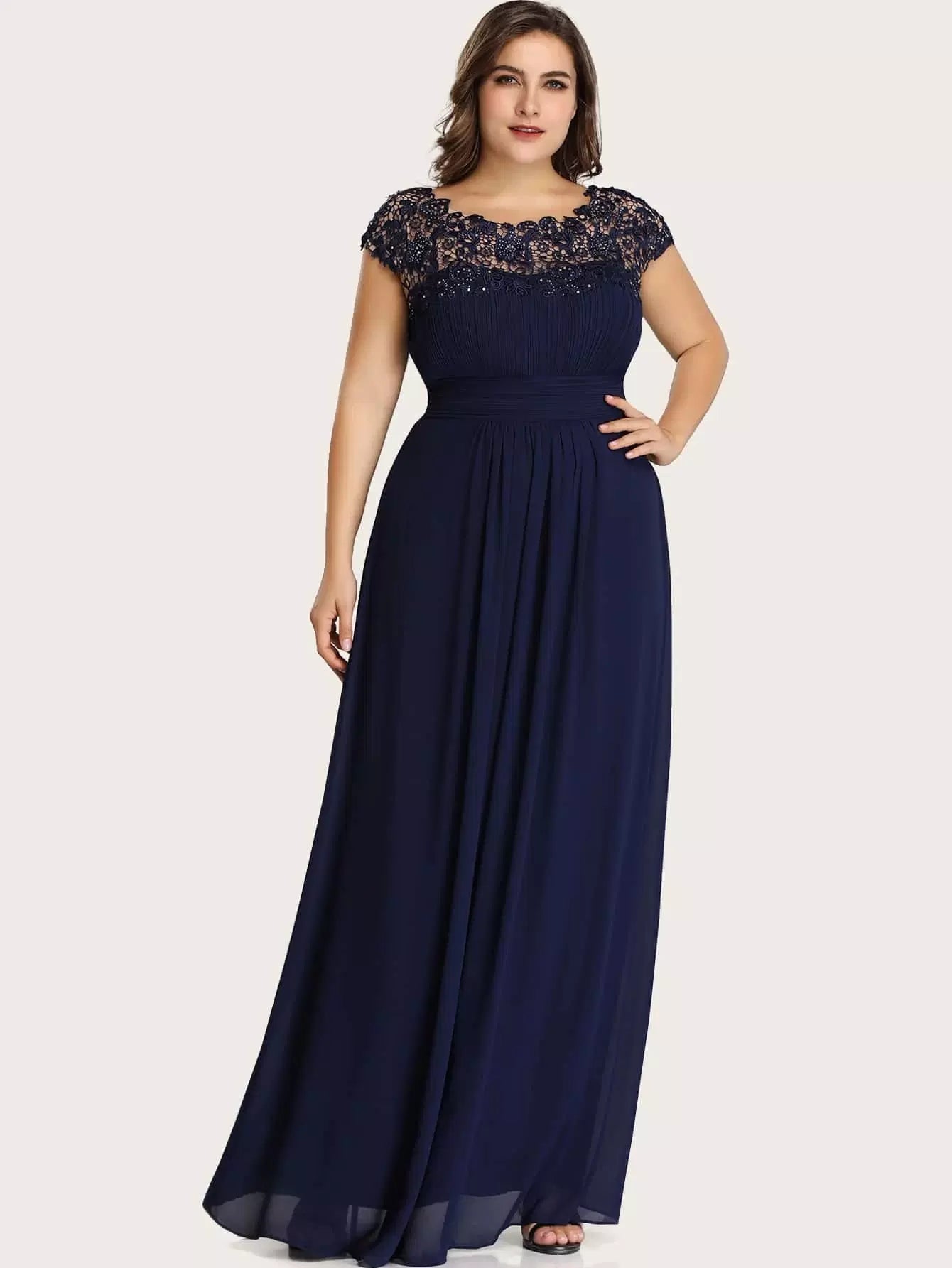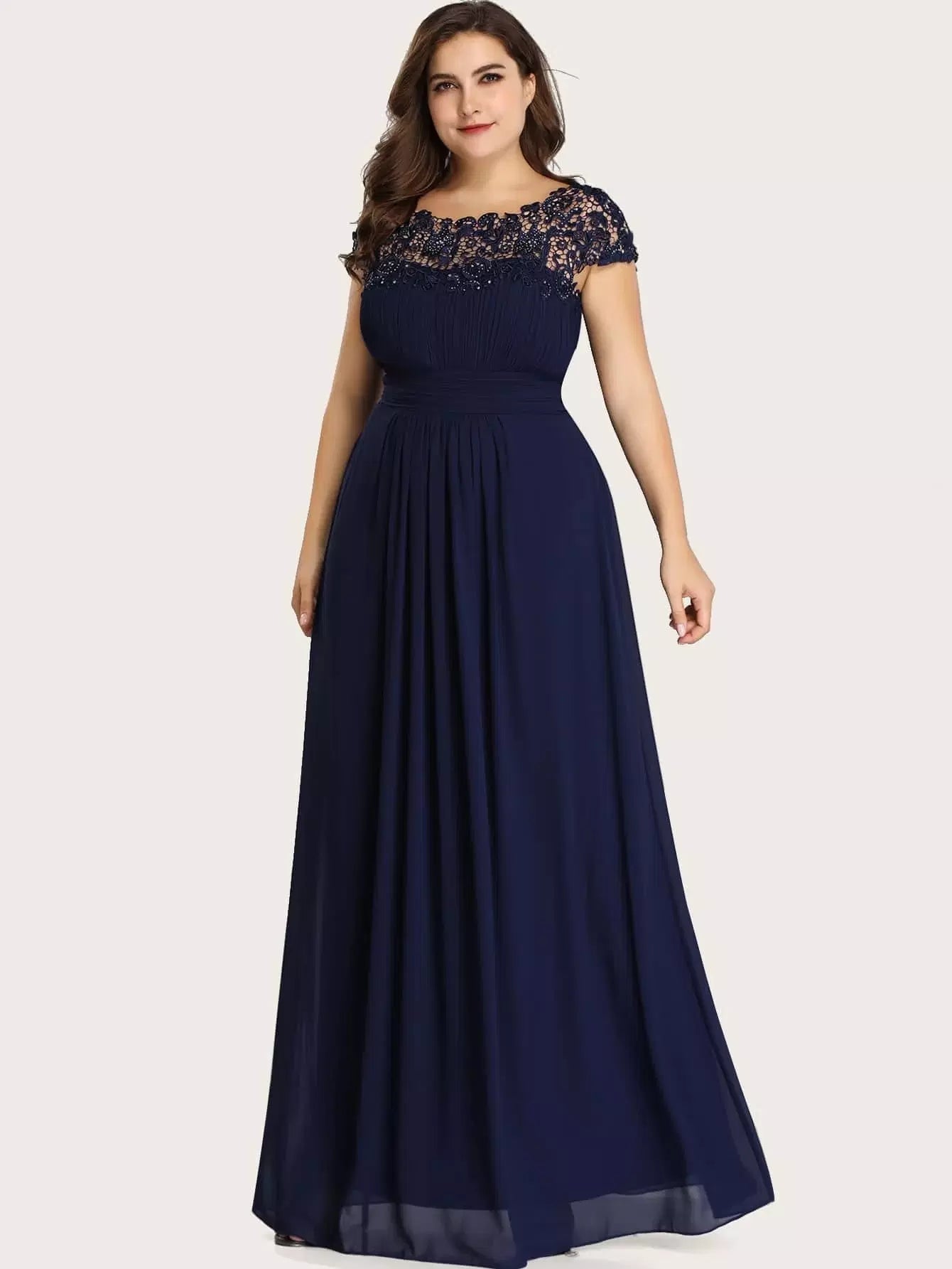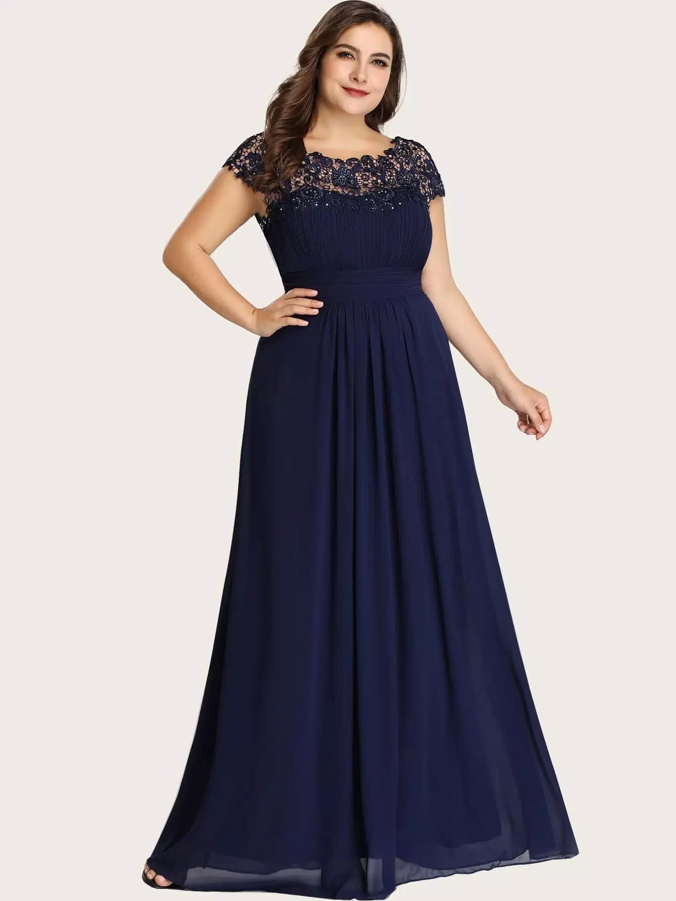 فستان حفلة راقصة من الدانتيل بطيات من الشيفون