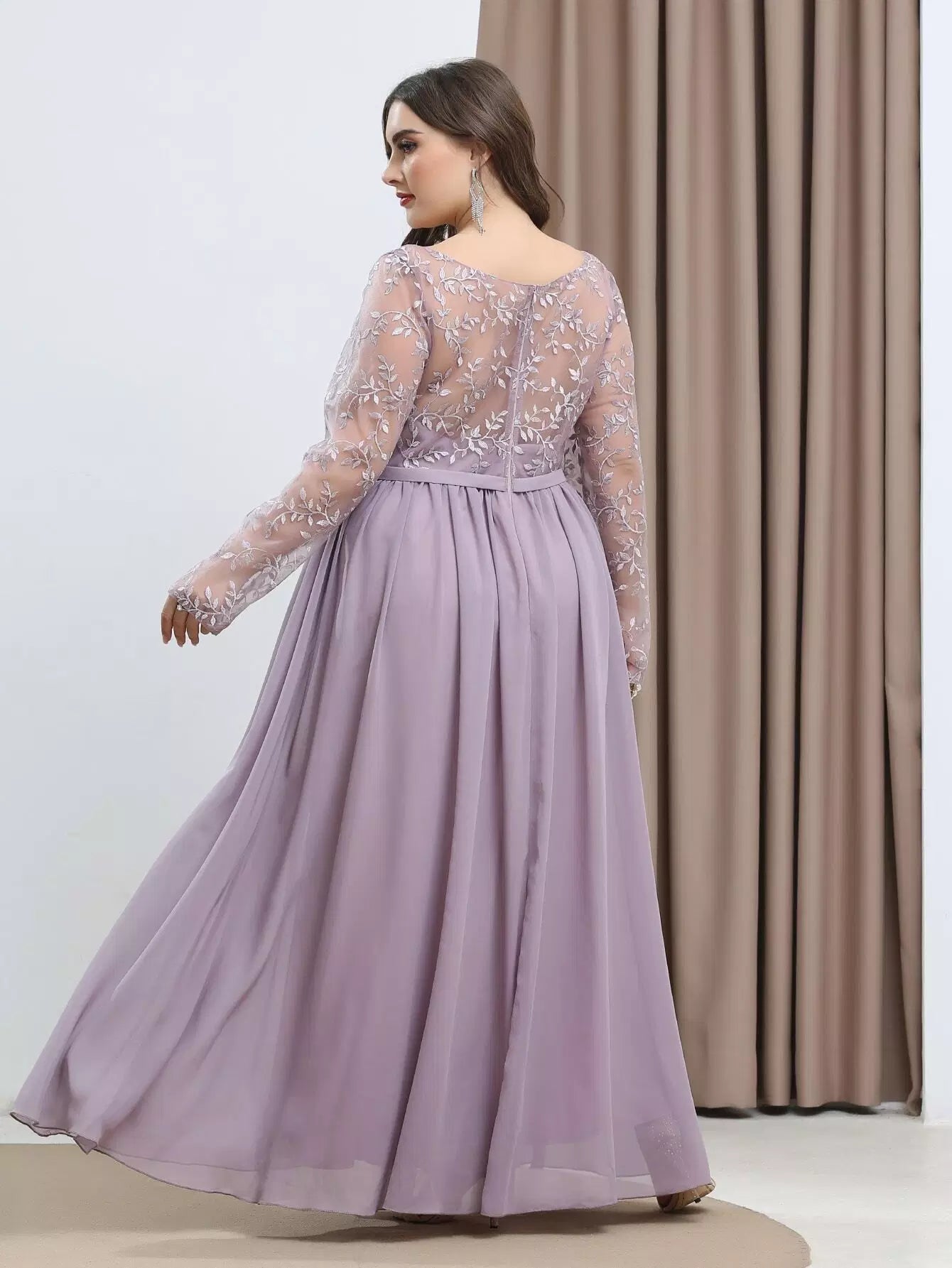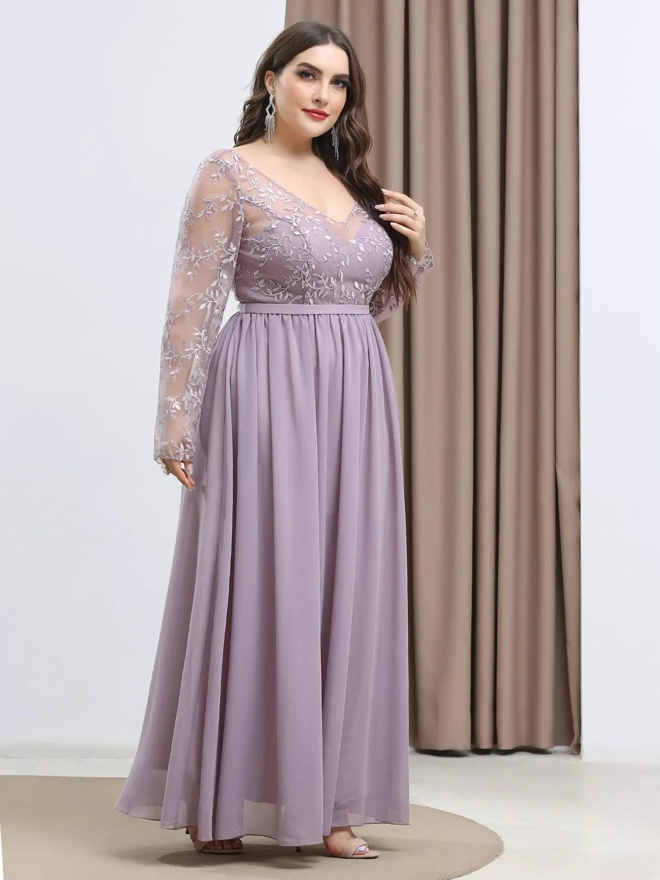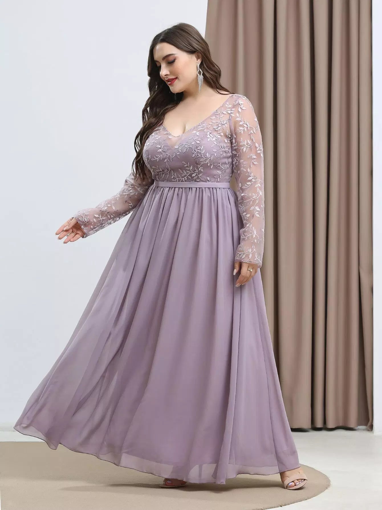 فستان بلس بلانتس مطرز بتطريز شيفون على شكل حرف A