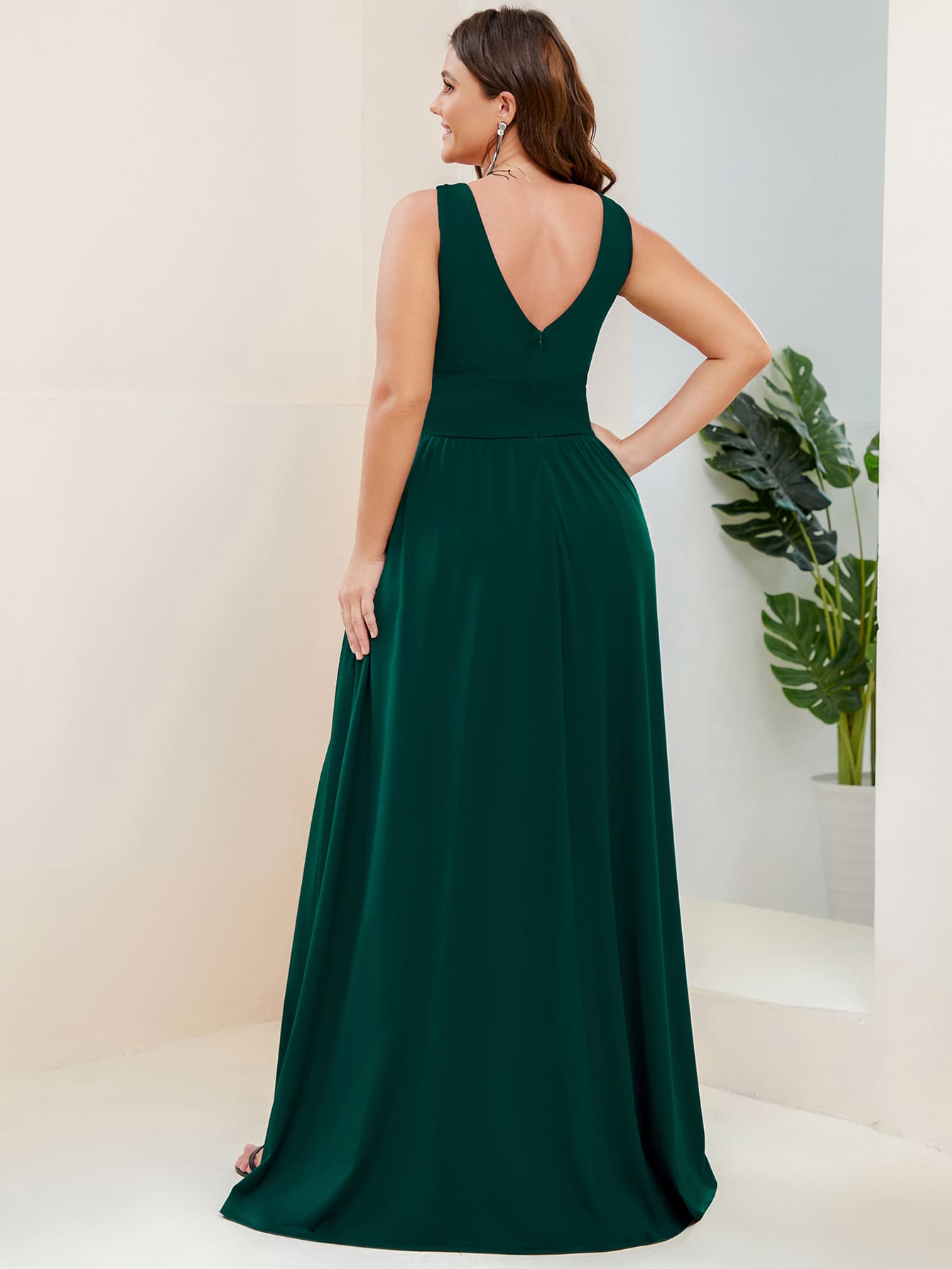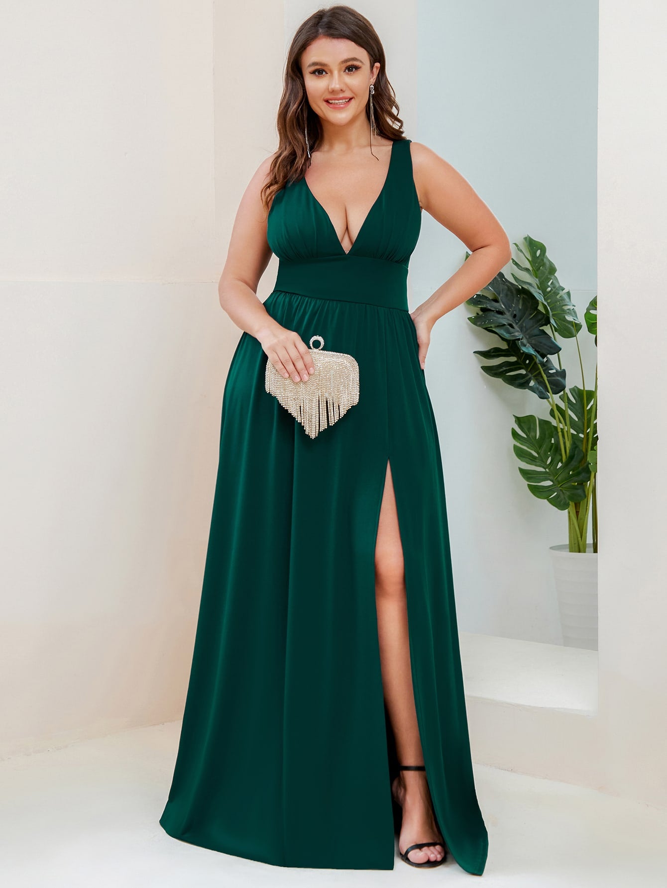 فستان وصيفة العروس الأنيق ذو فتحة صدر عميقة وشق جانبي يصل إلى الفخذ