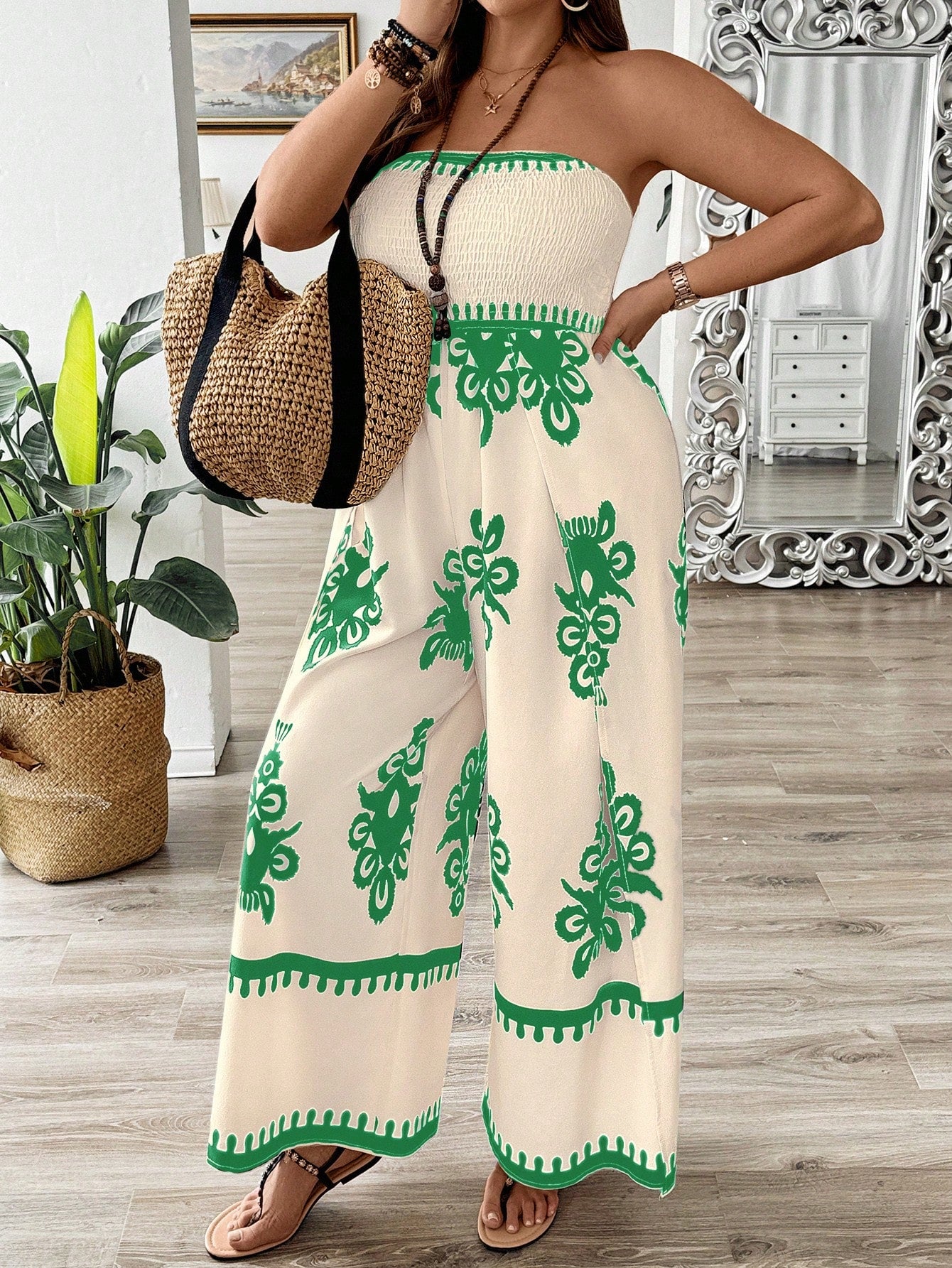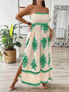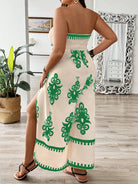 Breezaya Printed Plus Size Strapless Jumpsuit With Thigh-High Slits