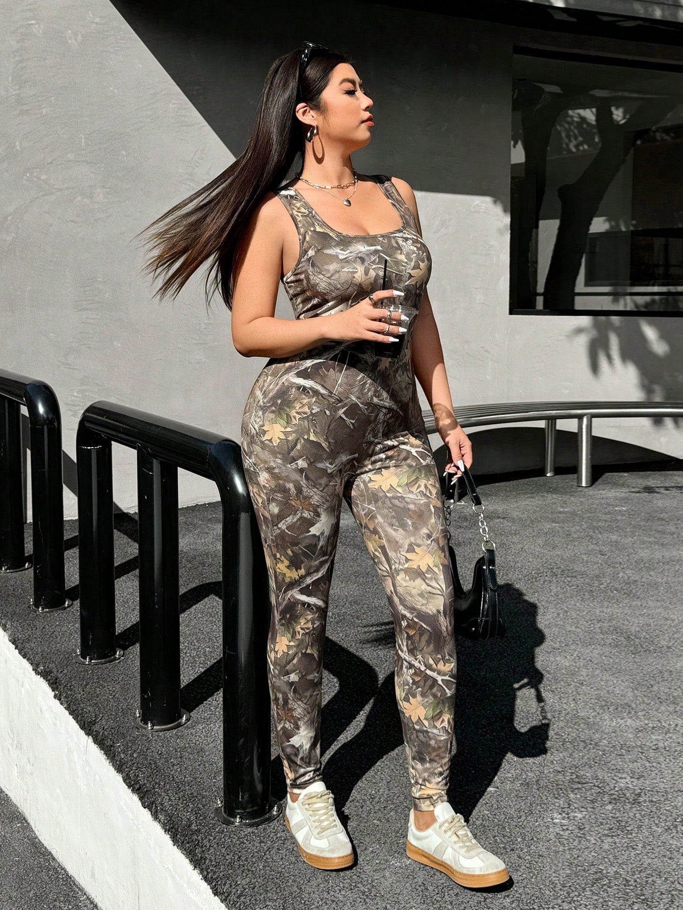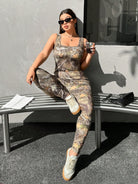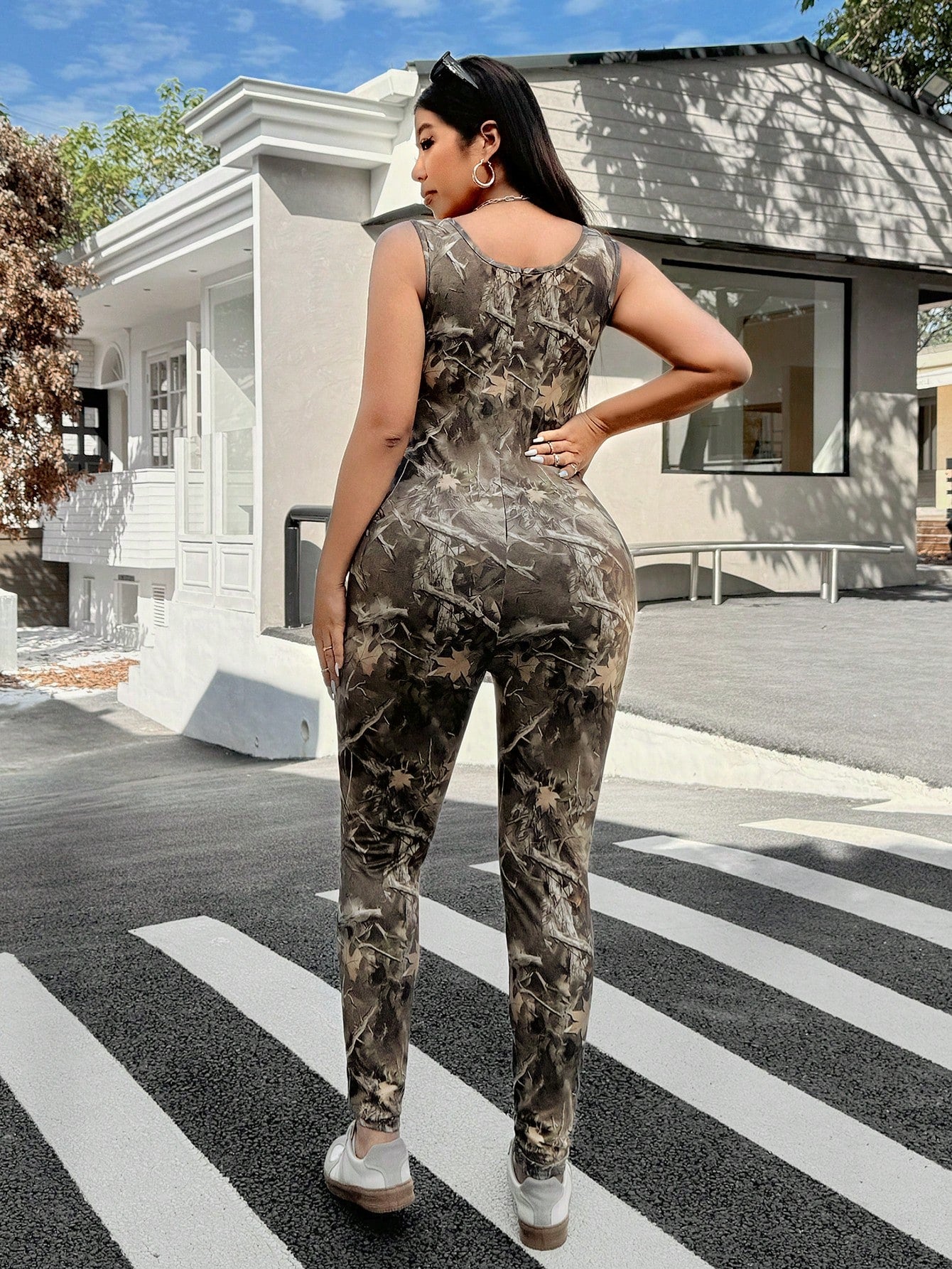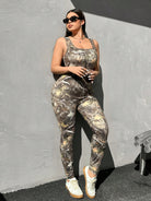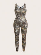 EZwear Plus Size Women Camo Maple Leaf & Scenic Print Casual Slim Fit Jumpsuit,Spring Summer Clothes