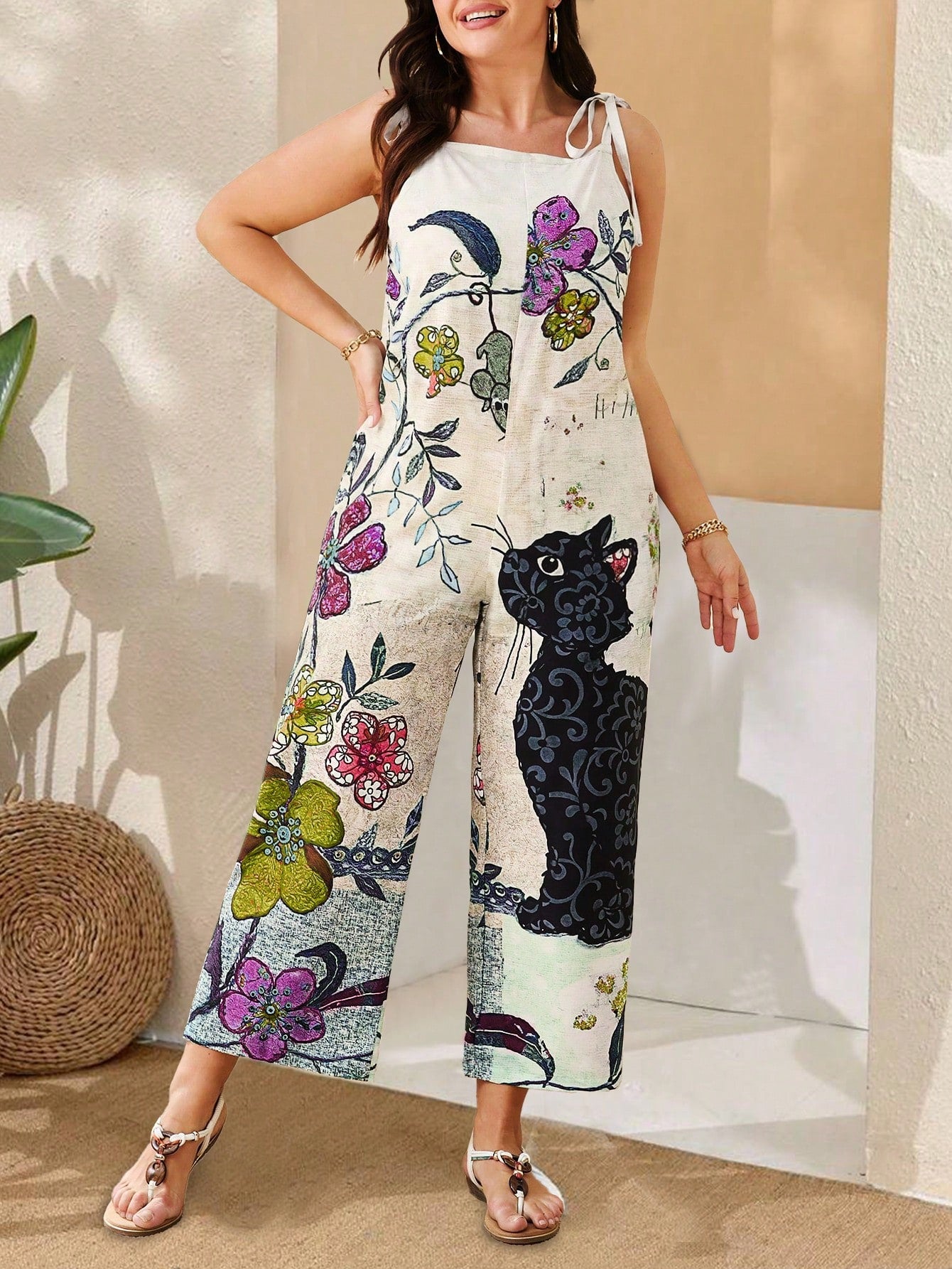 Holidaya Plus Size Women Tie-Waist Printed Casual Jumpsuits