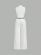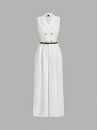 MOD Plus Size Women Jumpsuit With Blazer Collar, White, Elegant