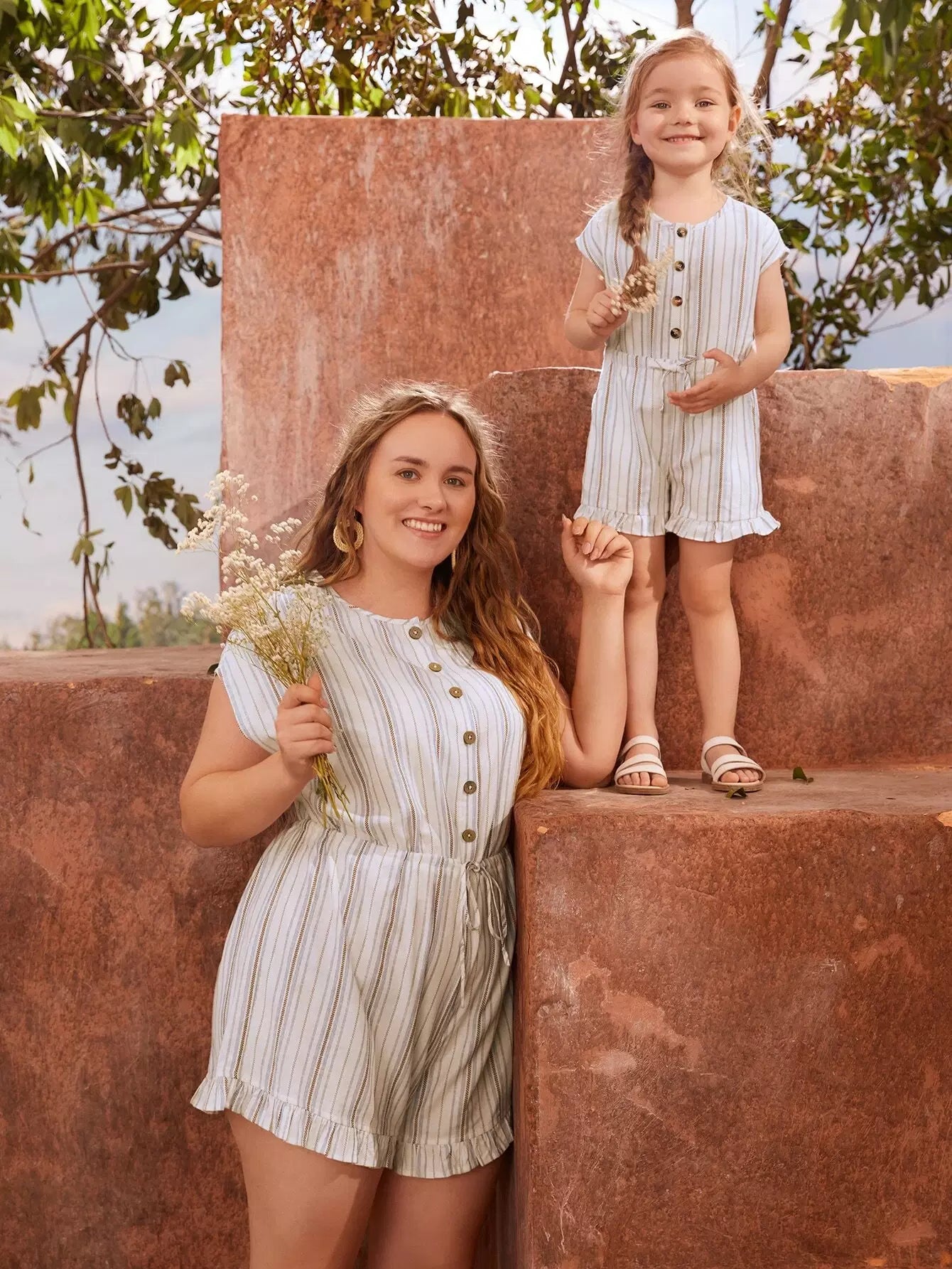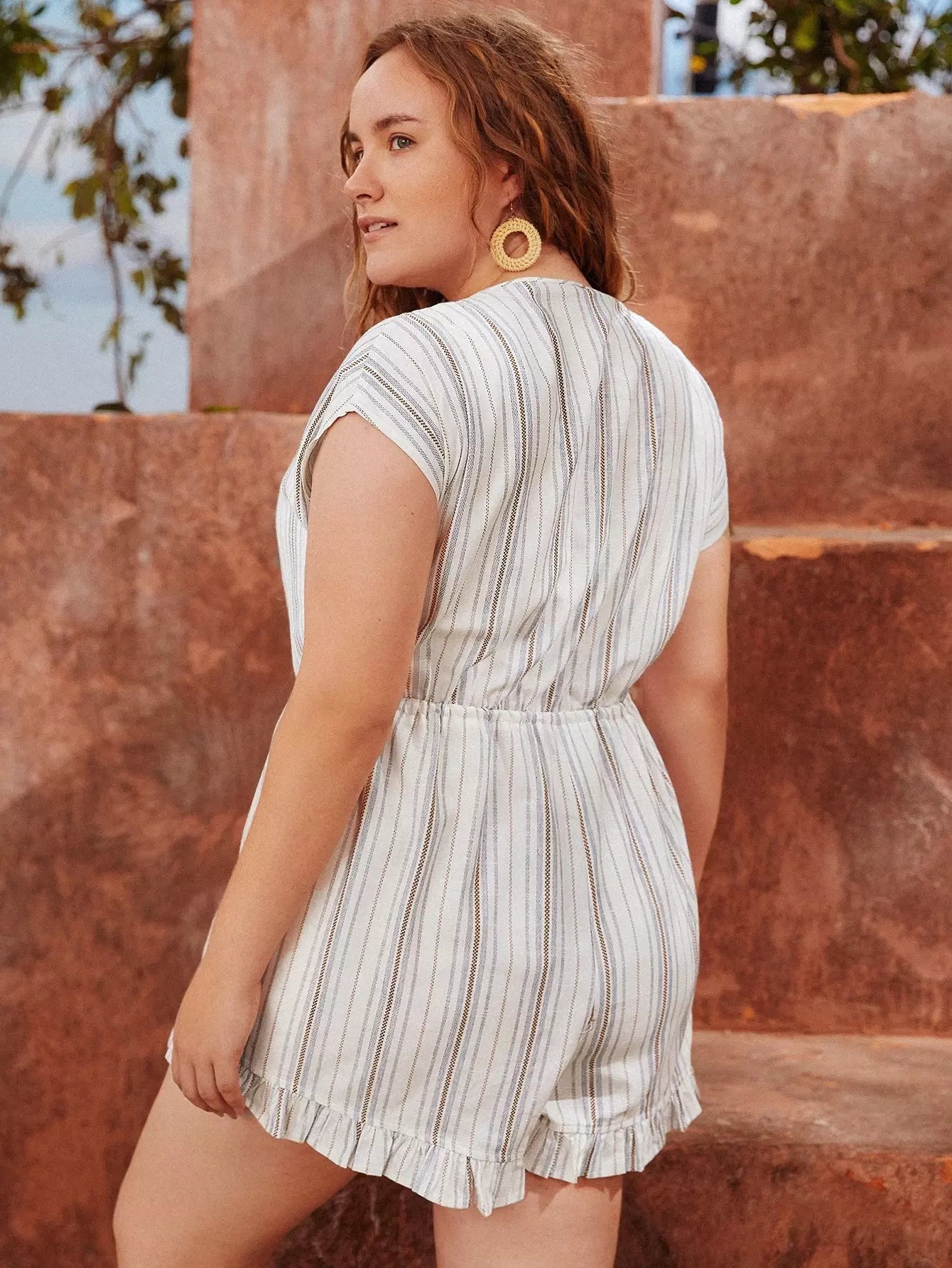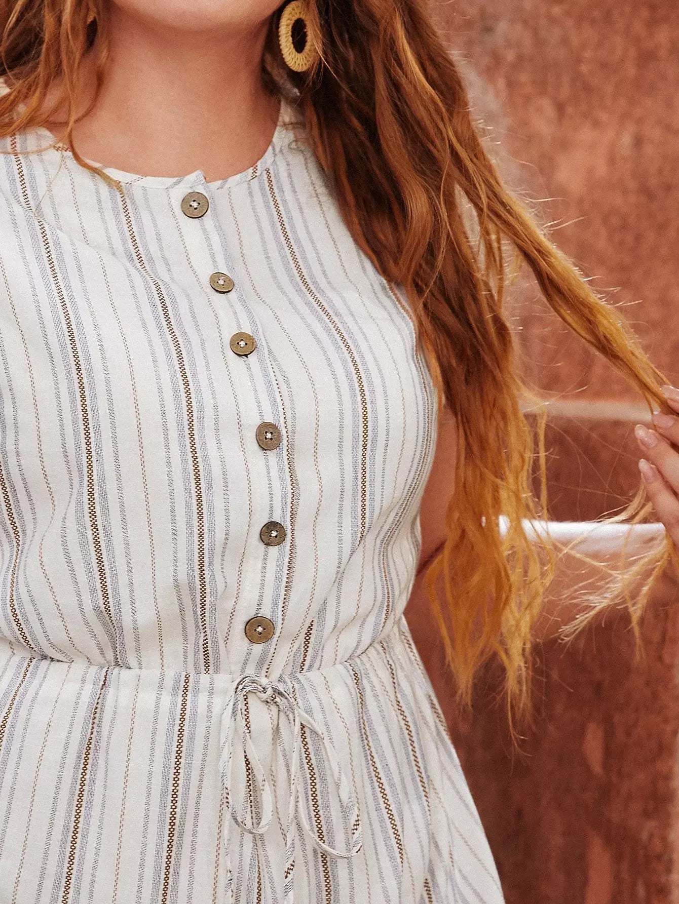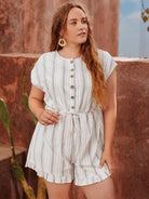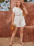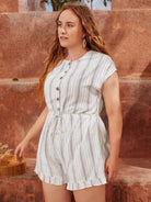 رومبر مخطط برباط أمامي بأزرار أمامية برباط خصر مخطط