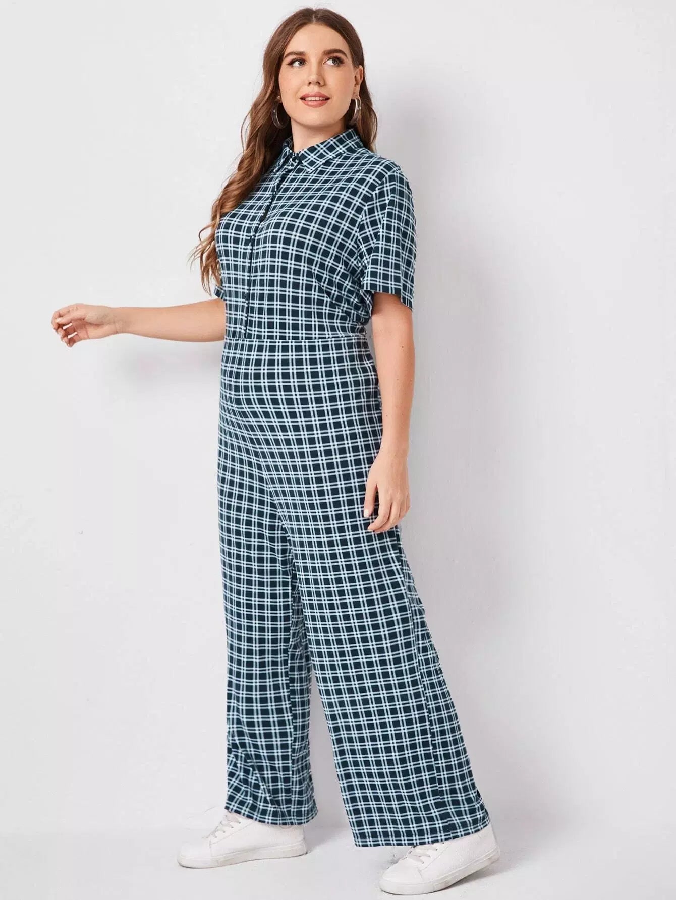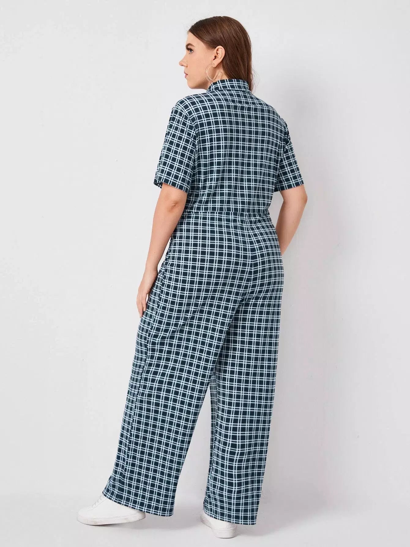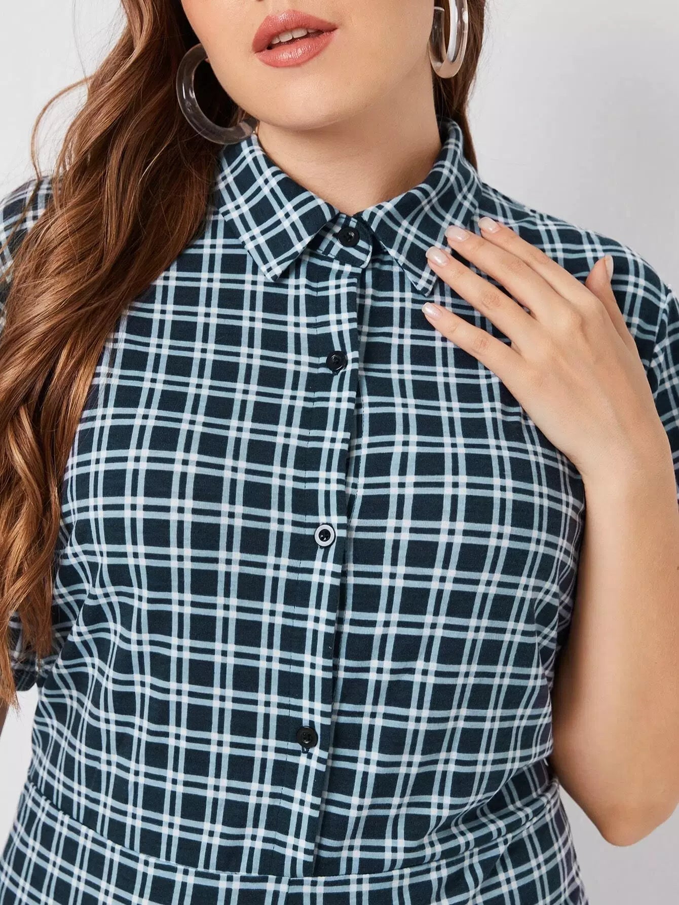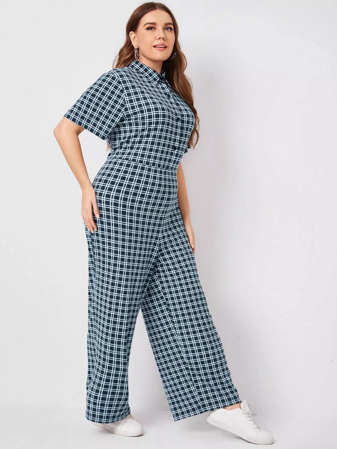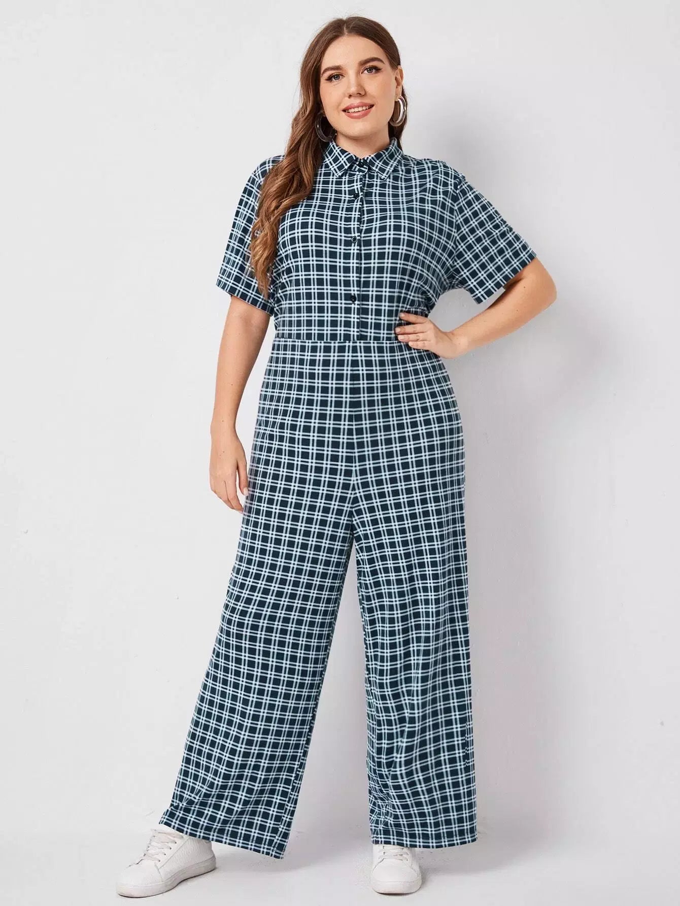 جمبسوت بياقة زائد بأزرار أمامية بأزرار عريضة منقوشة من الأمام