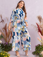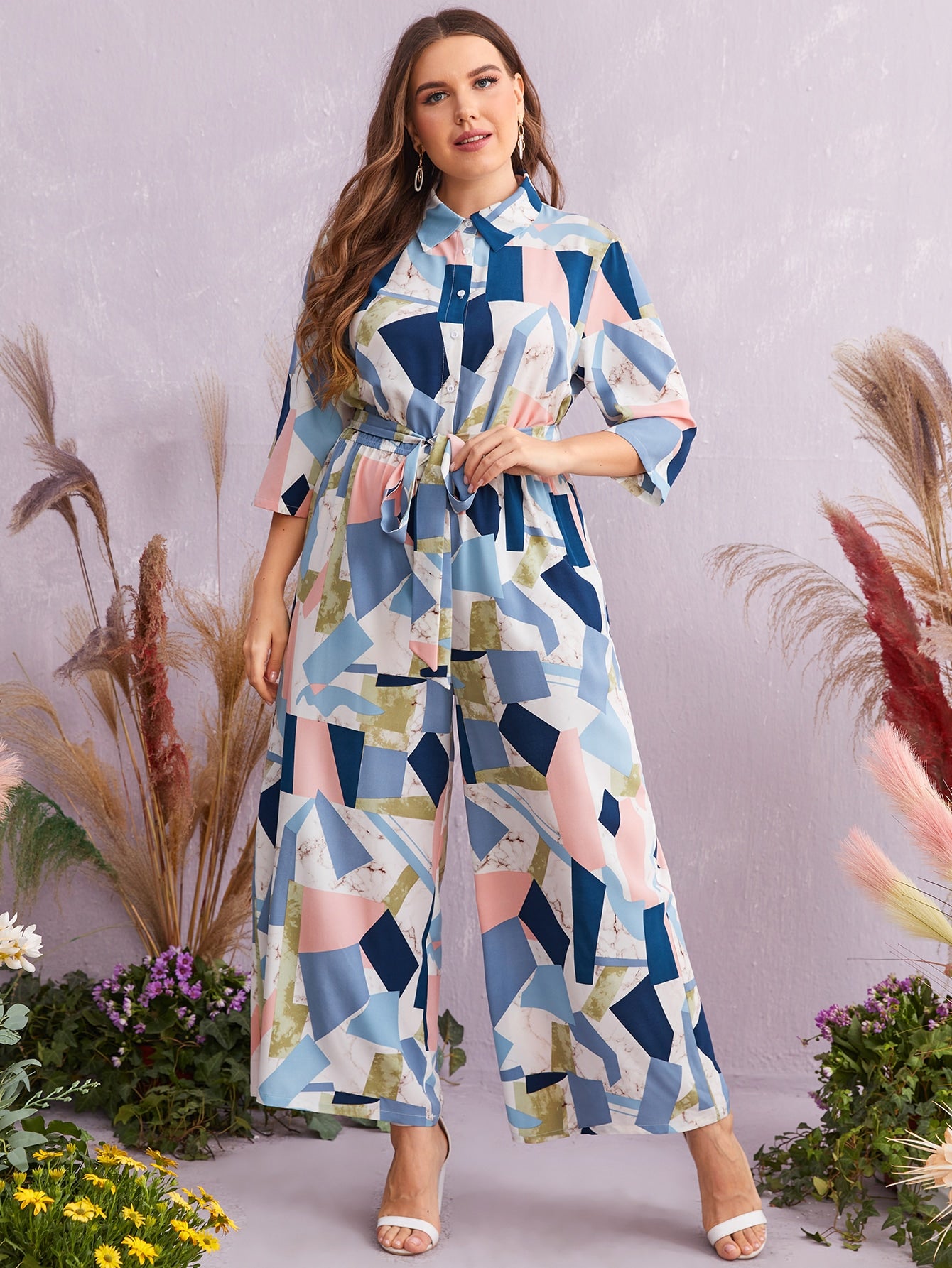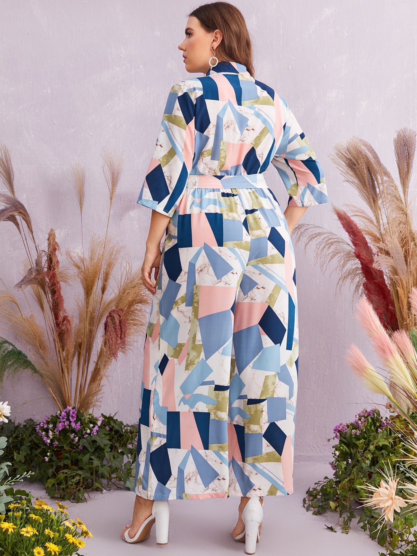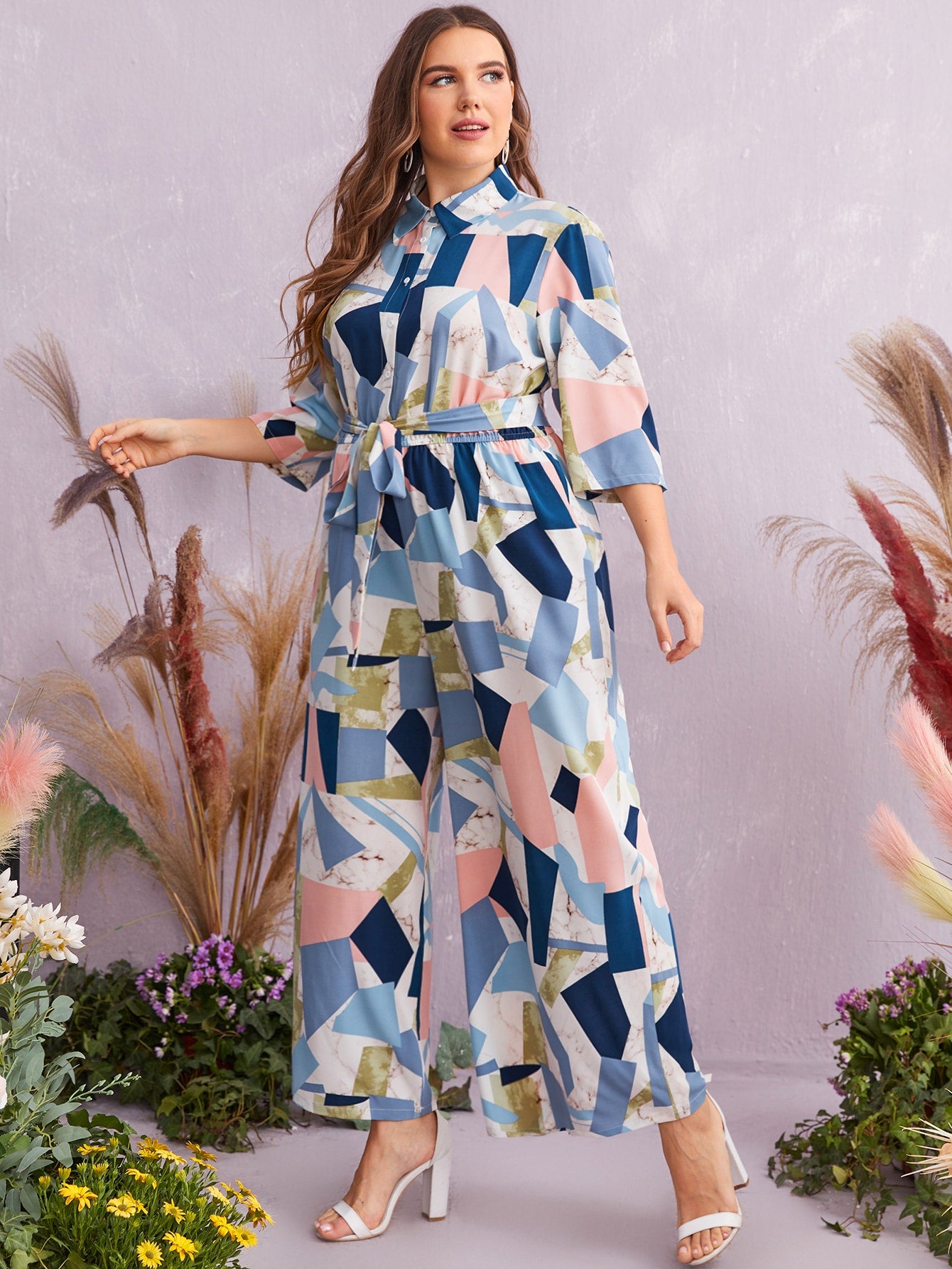 بالإضافة إلى بذلة ذات أرجل واسعة وطبعة كاملة بدون حزام