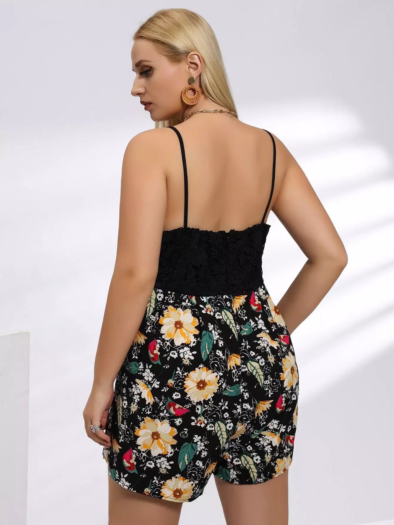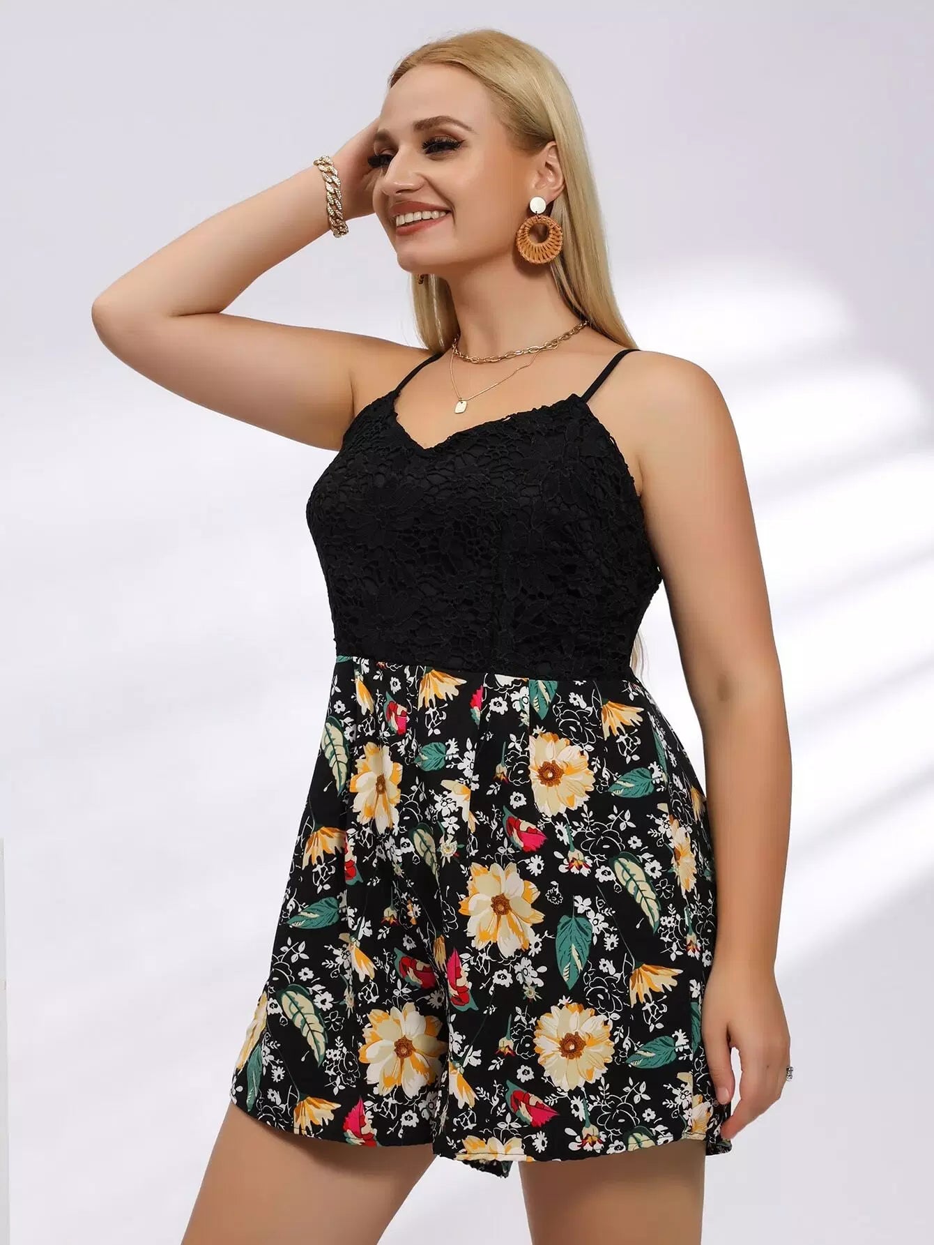 رومبر قصير بلون مغاير من الدانتيل المخرم بطبعة زهور بلون مغاير