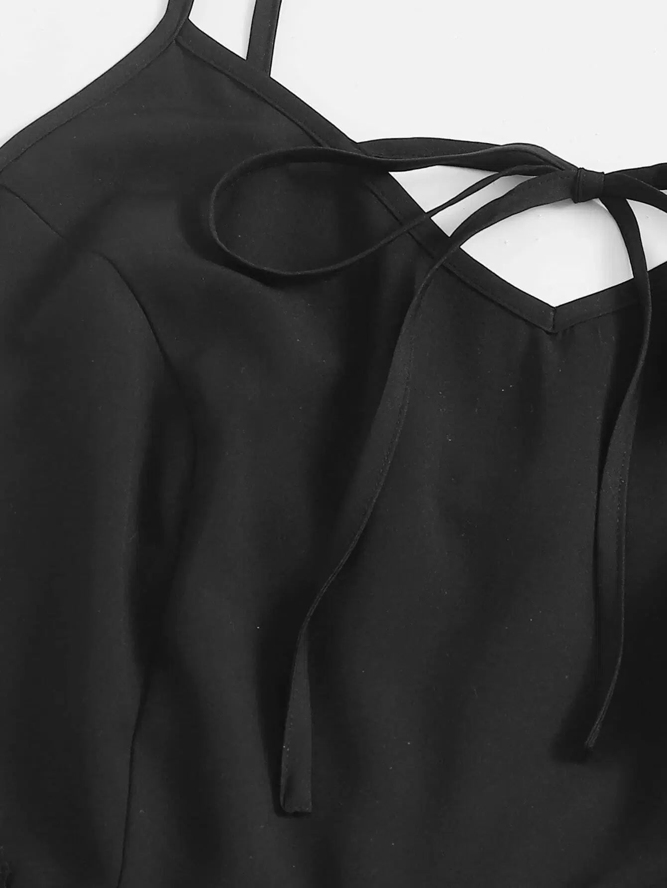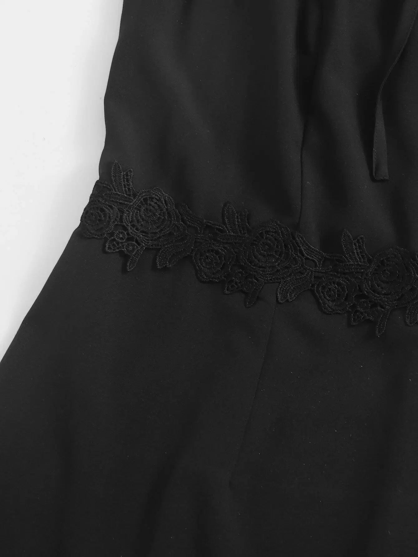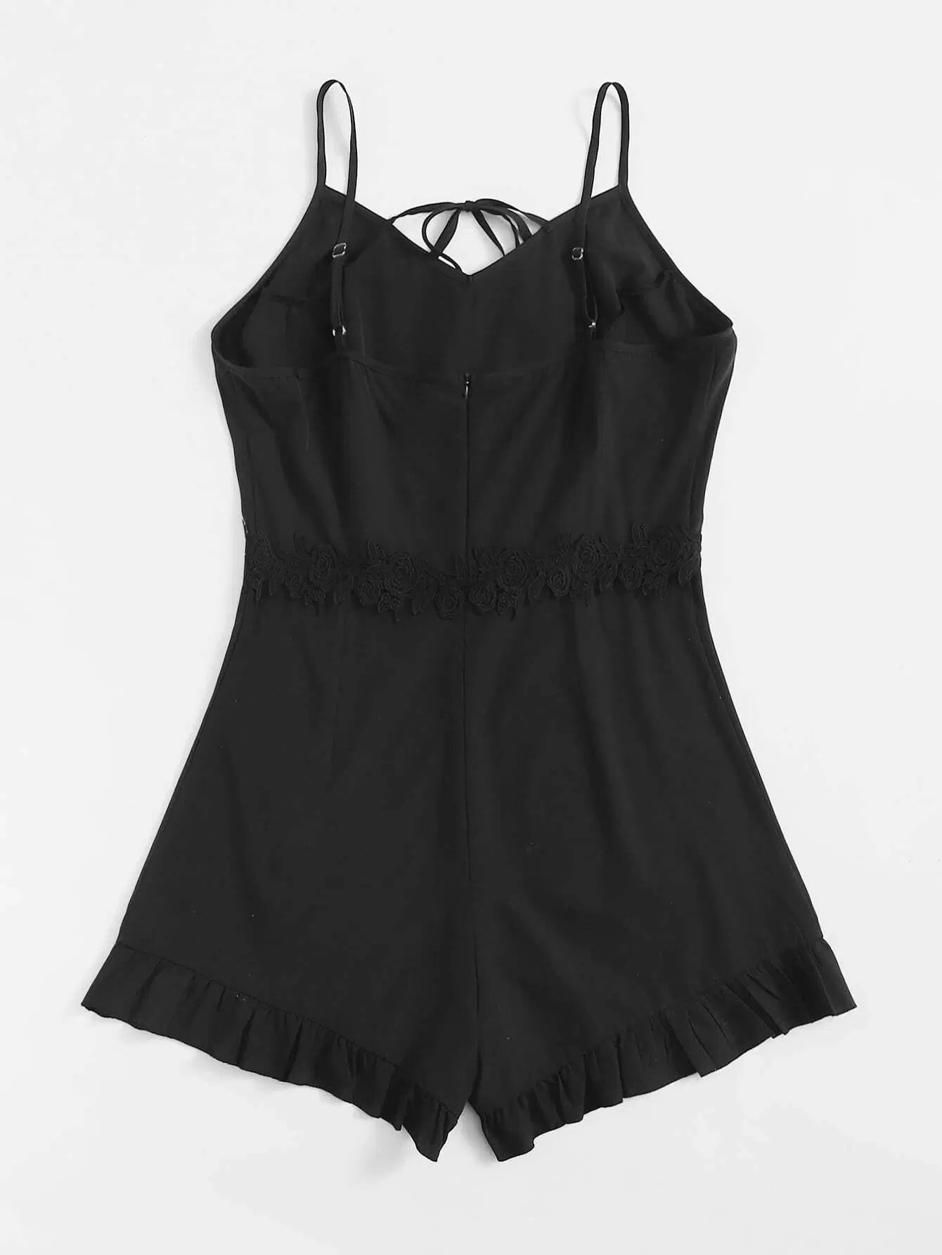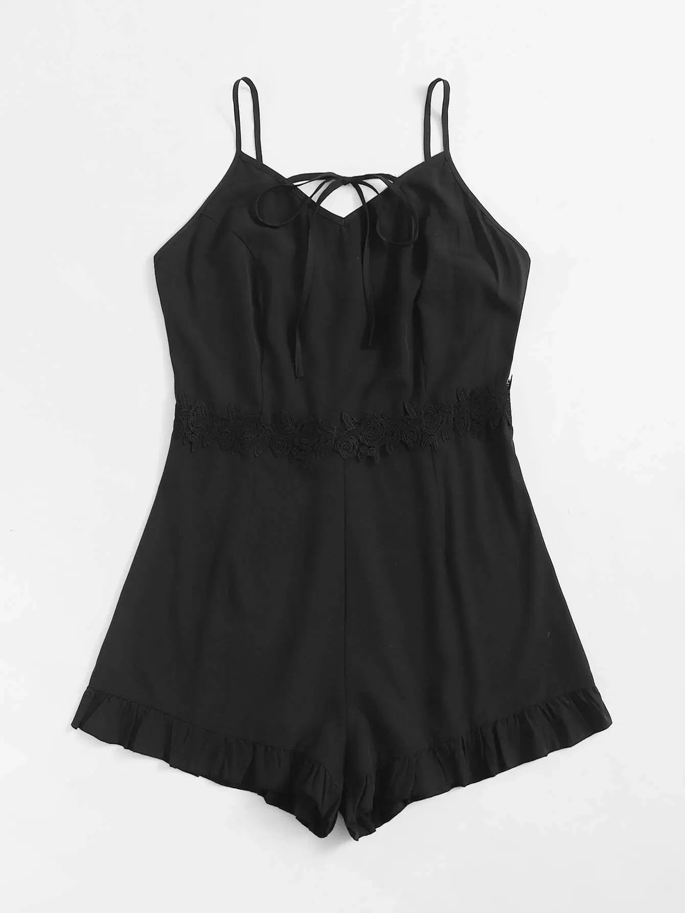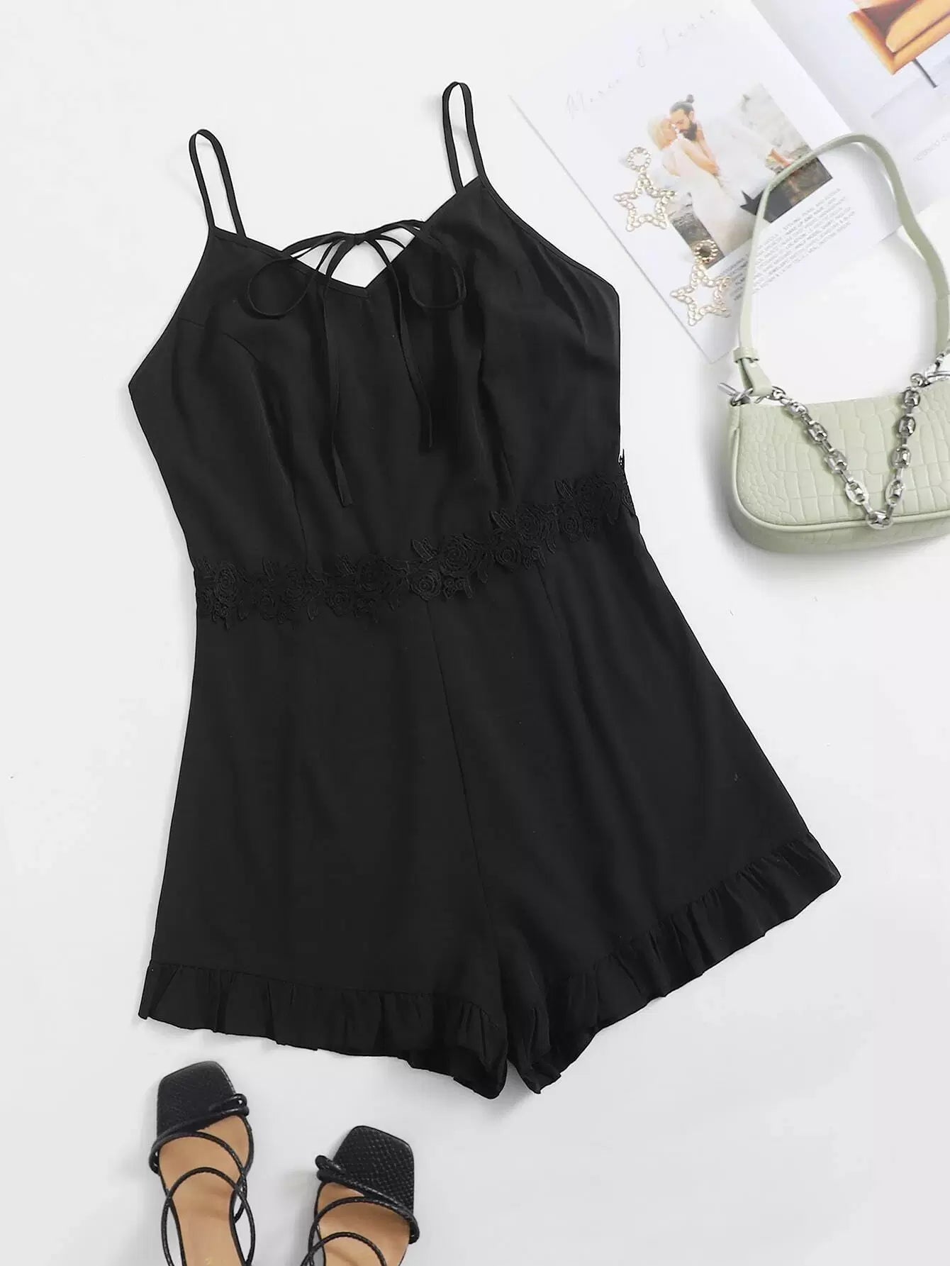 رومبر قصير كشكش من الدانتيل المخرم بلون مغاير بلون مغاير