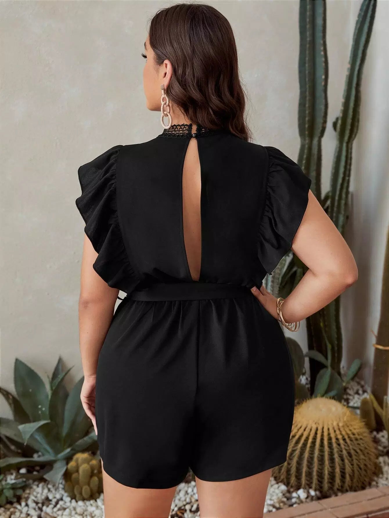 رومبير مزين بكشكشة ودانتيل متباين اللون بدون حزام