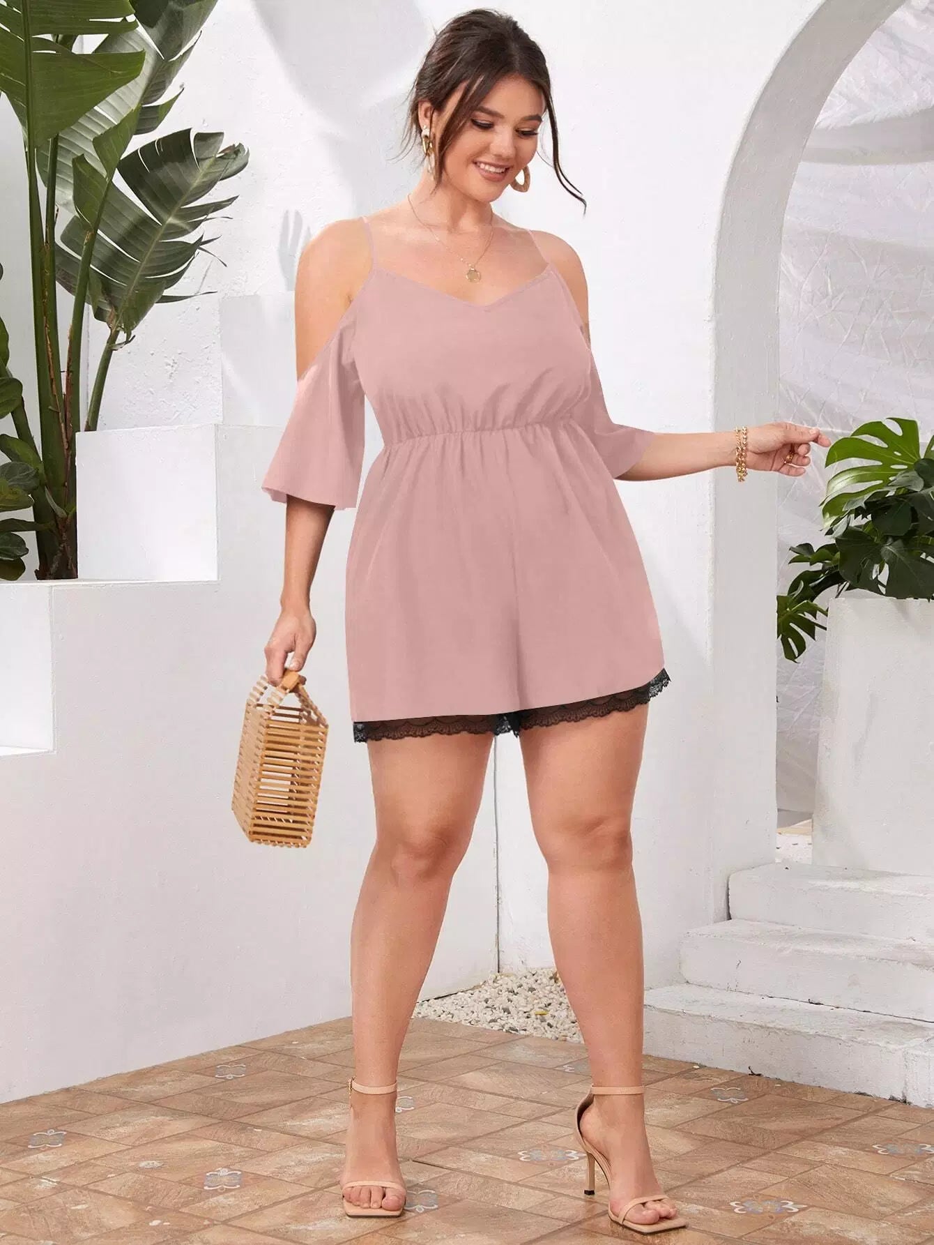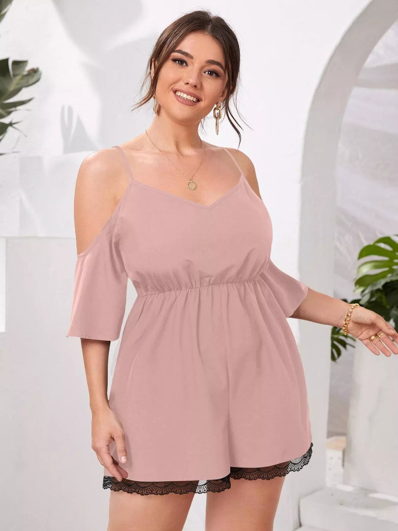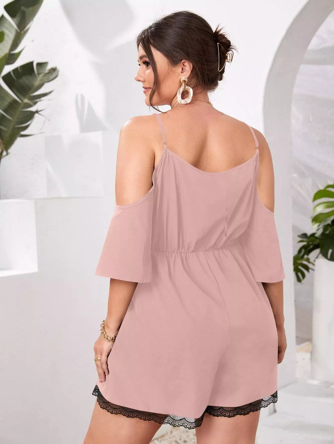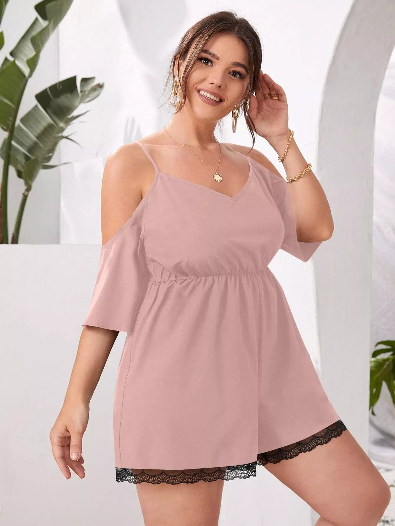 رومبر بأكتاف باردة دانتيل بلون مغاير بلون مغاير