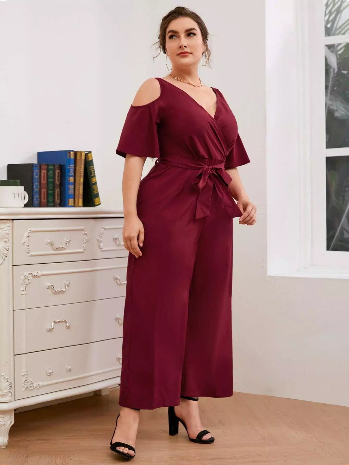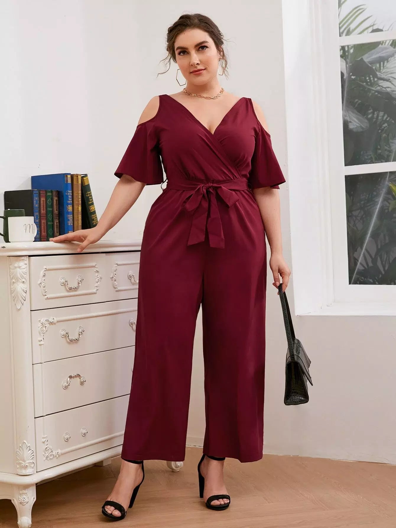 بالإضافة إلى بذلة ذات أكتاف واسعة وأرجل واسعة بدون حزام