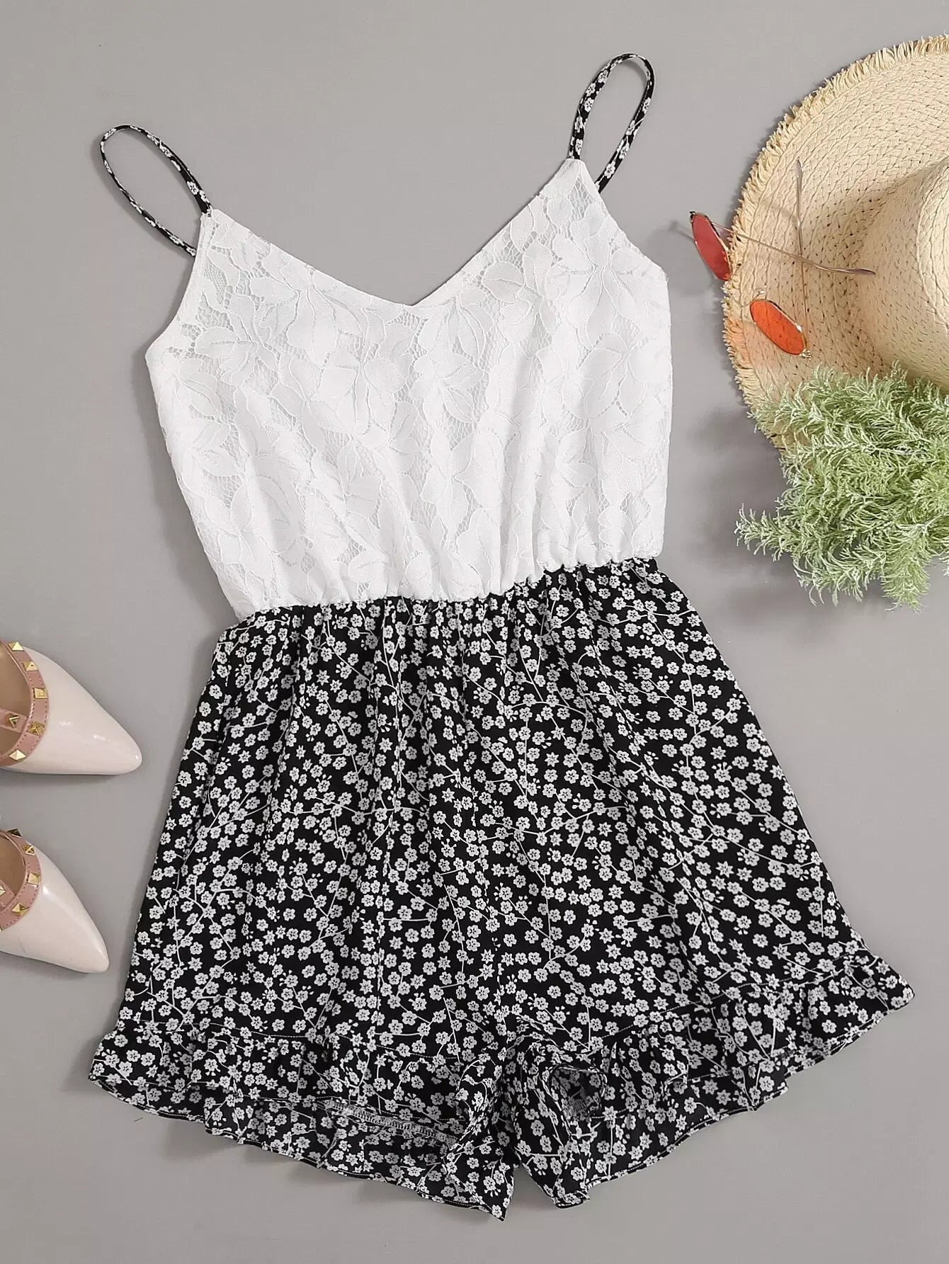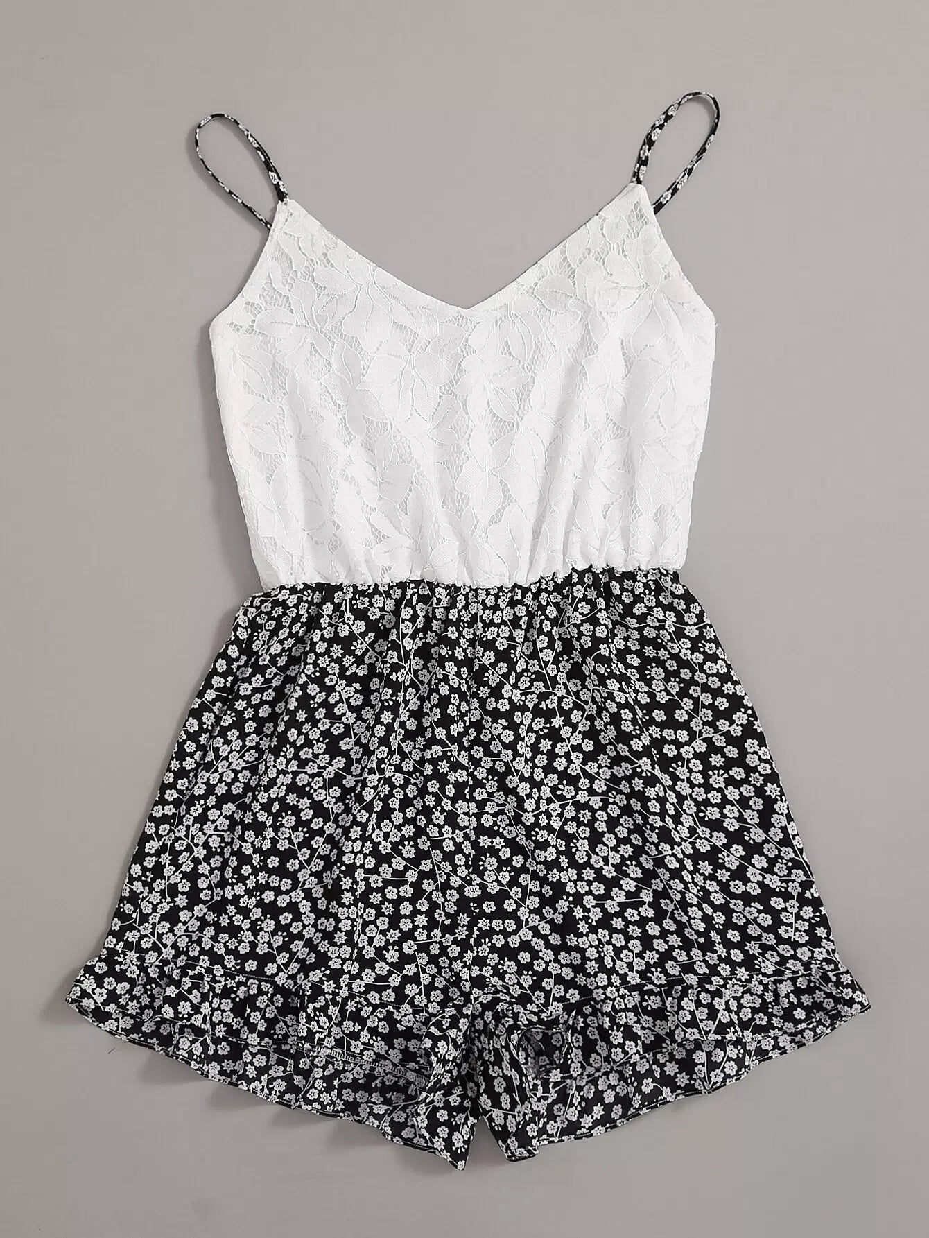 رومبر رومبر قصير مزين بدانتيل من الدانتيل المزين بالزهور