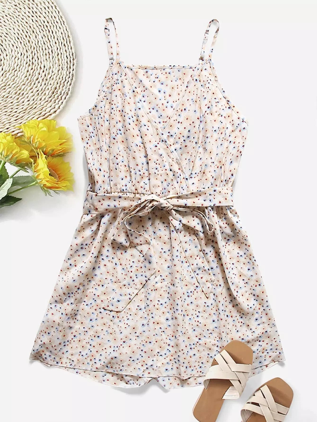 بالإضافة إلى رومبير كامي أمامي بطباعة زهور Ditsy بدون حزام