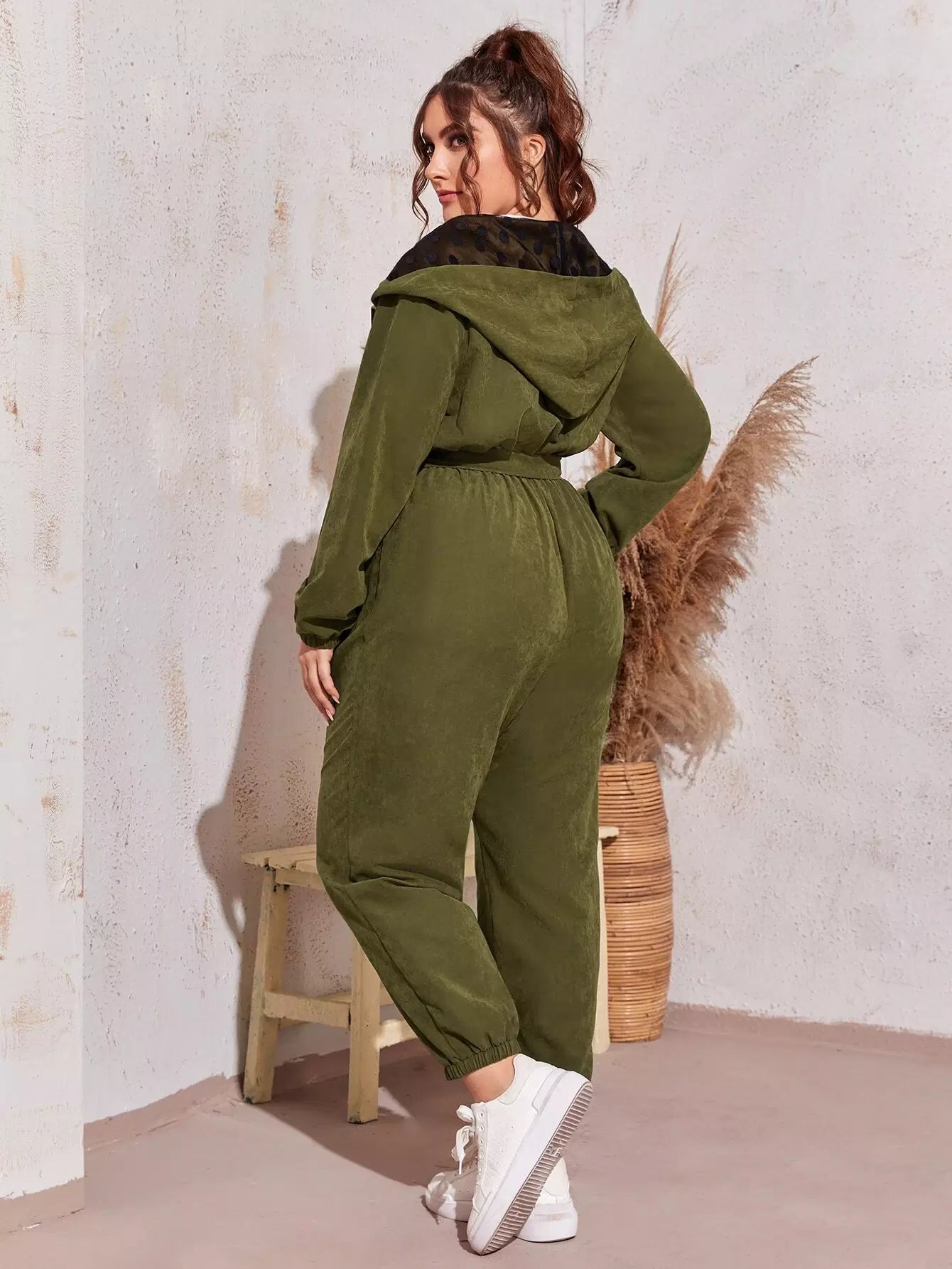 نحيف - مقاس كبير بذلة بغطاء للرأس وبطانة شبكية من دوبي وجيب مائل وحزام ذاتي