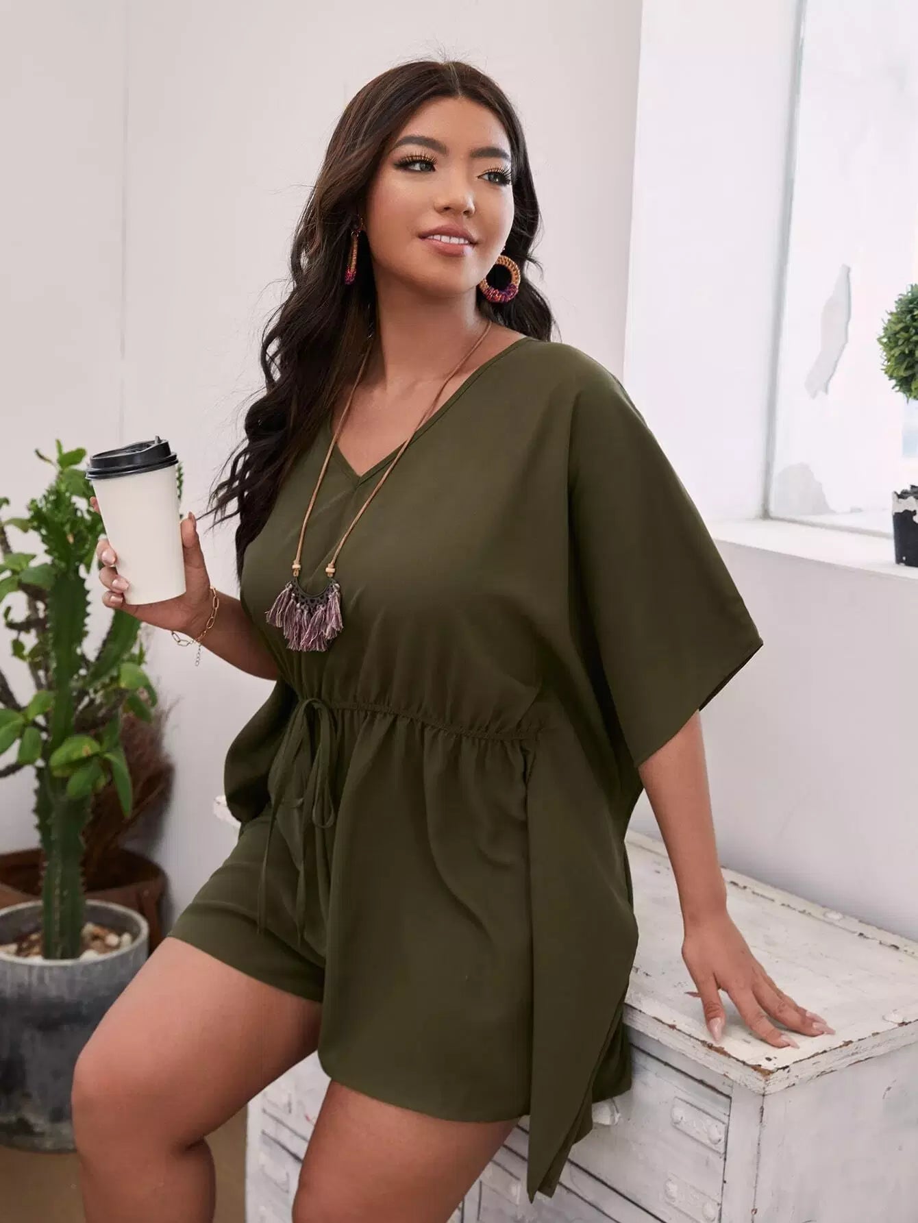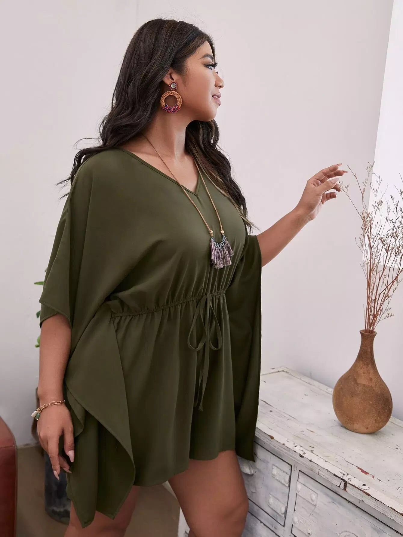 رومبر بأكمام دولمان زائد بأربطة أمامية من الأمام