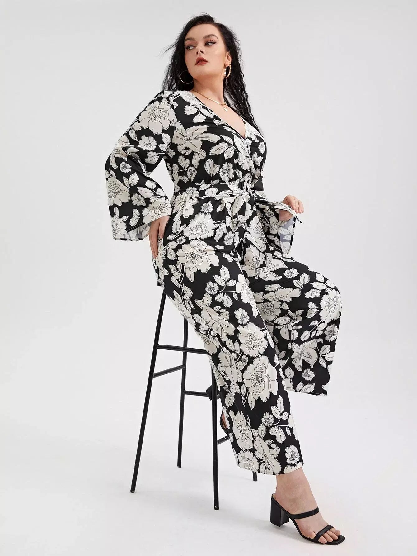 بالإضافة إلى بذلة طباعة الأزهار بدون حزام