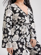 نحيف - مقاس كبير الأزهار طباعة مربوط بذلة