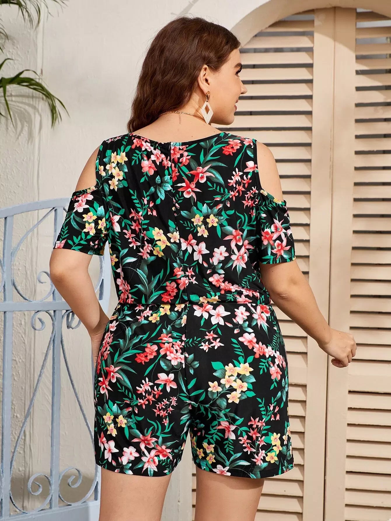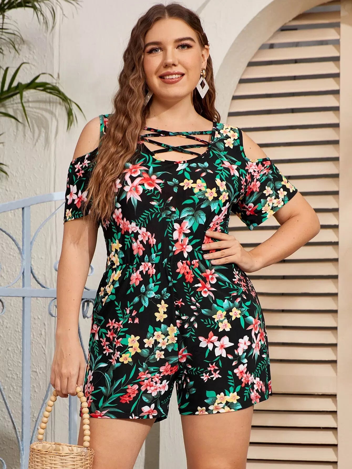 نحيف - مقاس كبير طباعة الأزهار متقاطع رومبير الكتف الباردة
