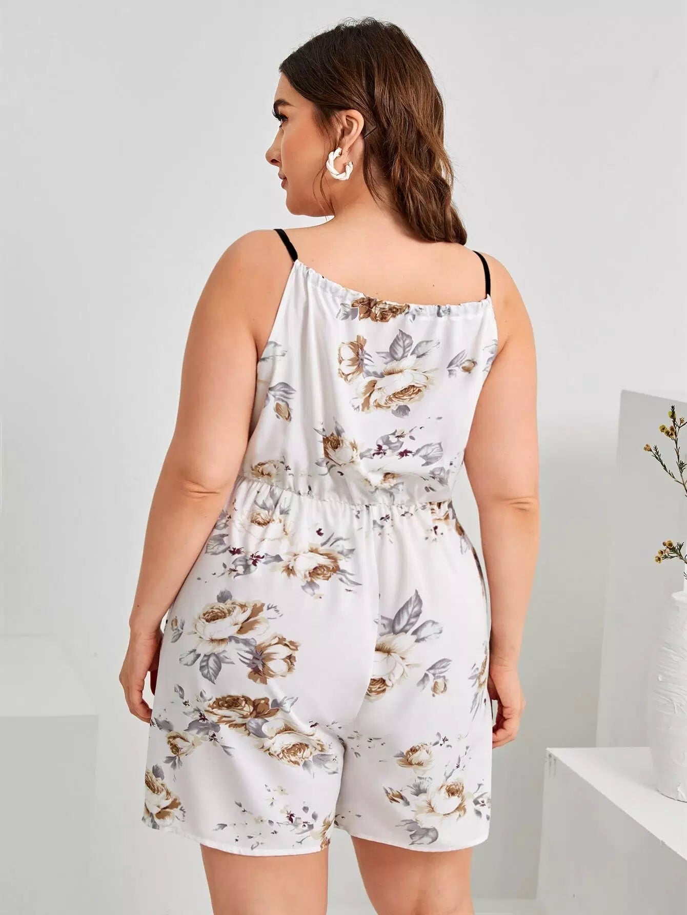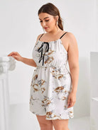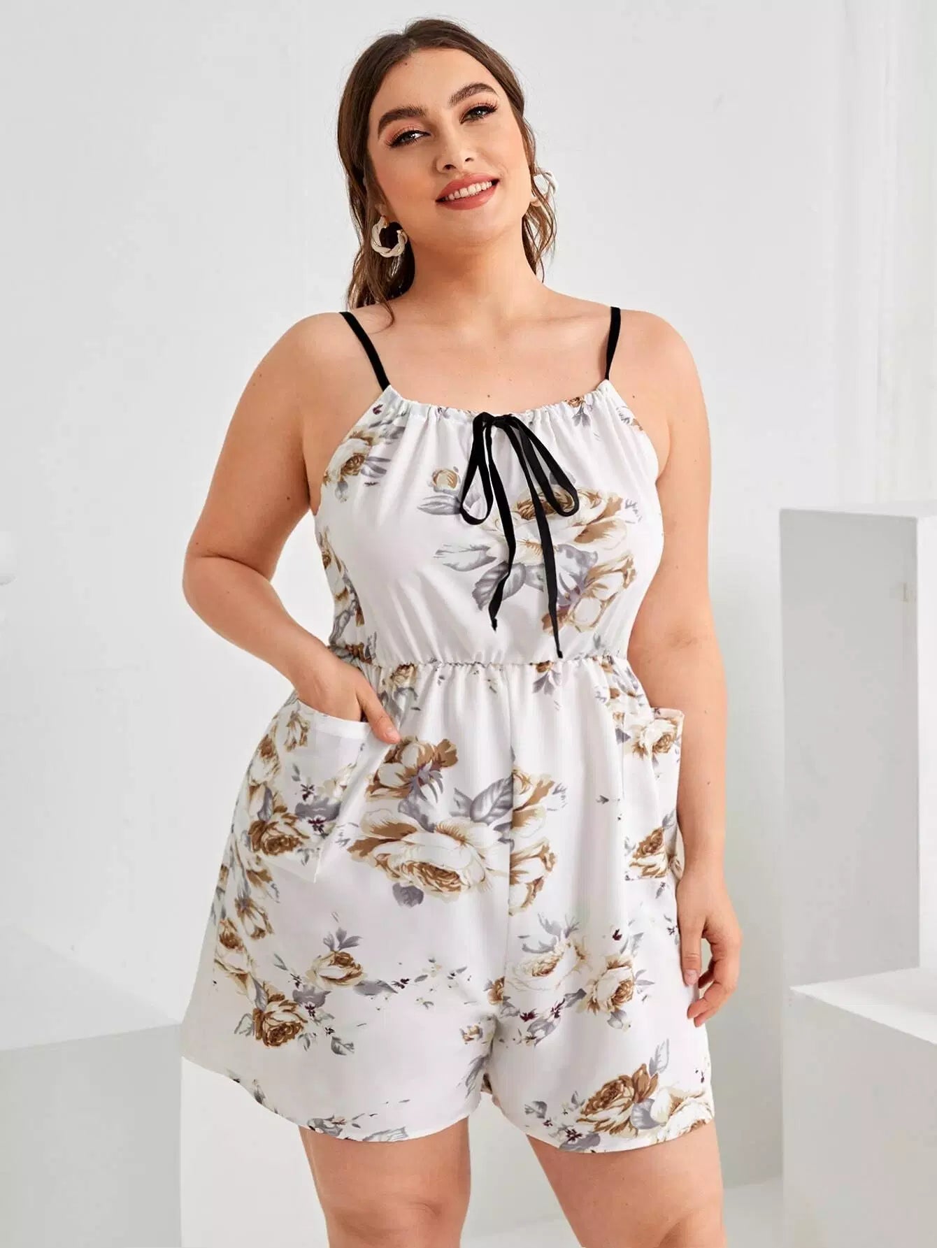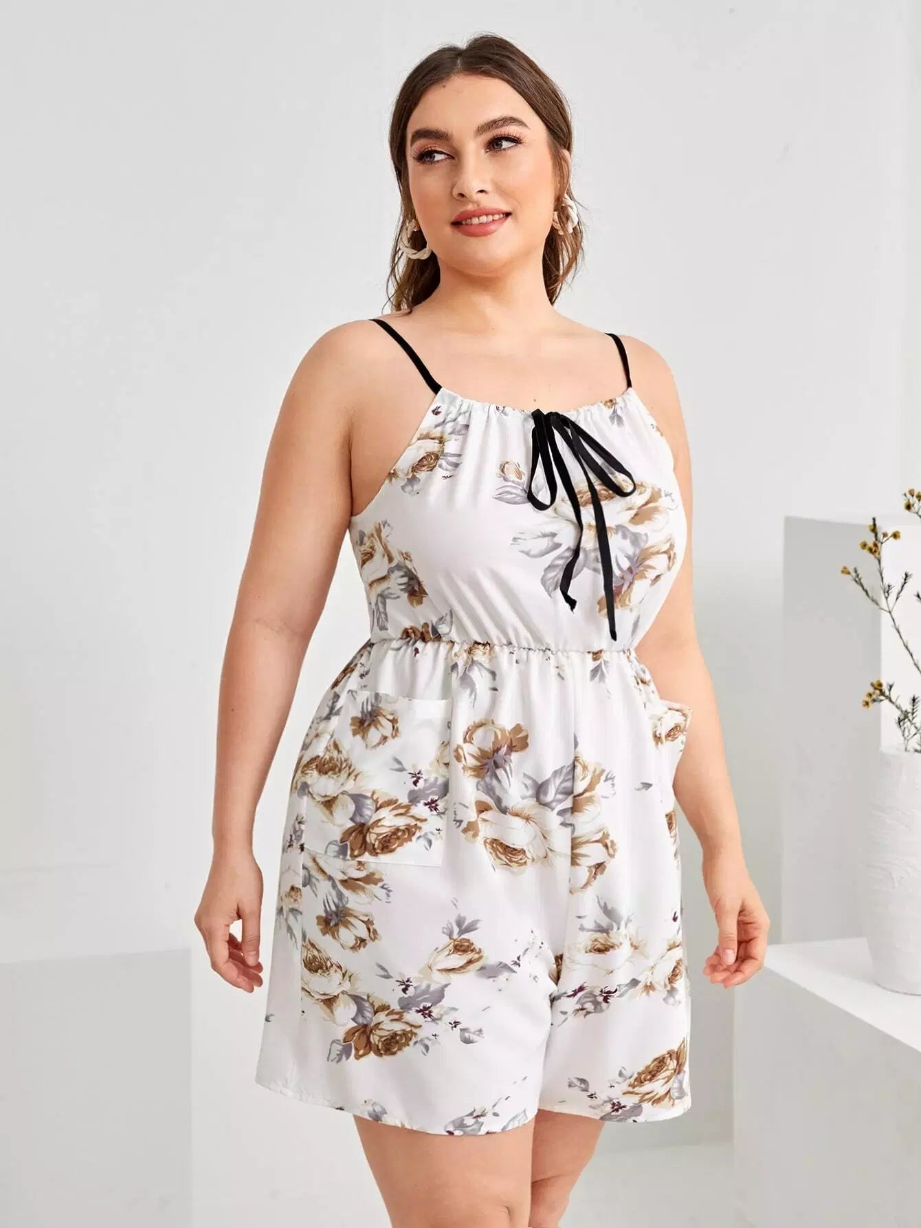 رومبر قصير مزين بطبعة زهور وطبعة زهور وربطة عنق أمامية