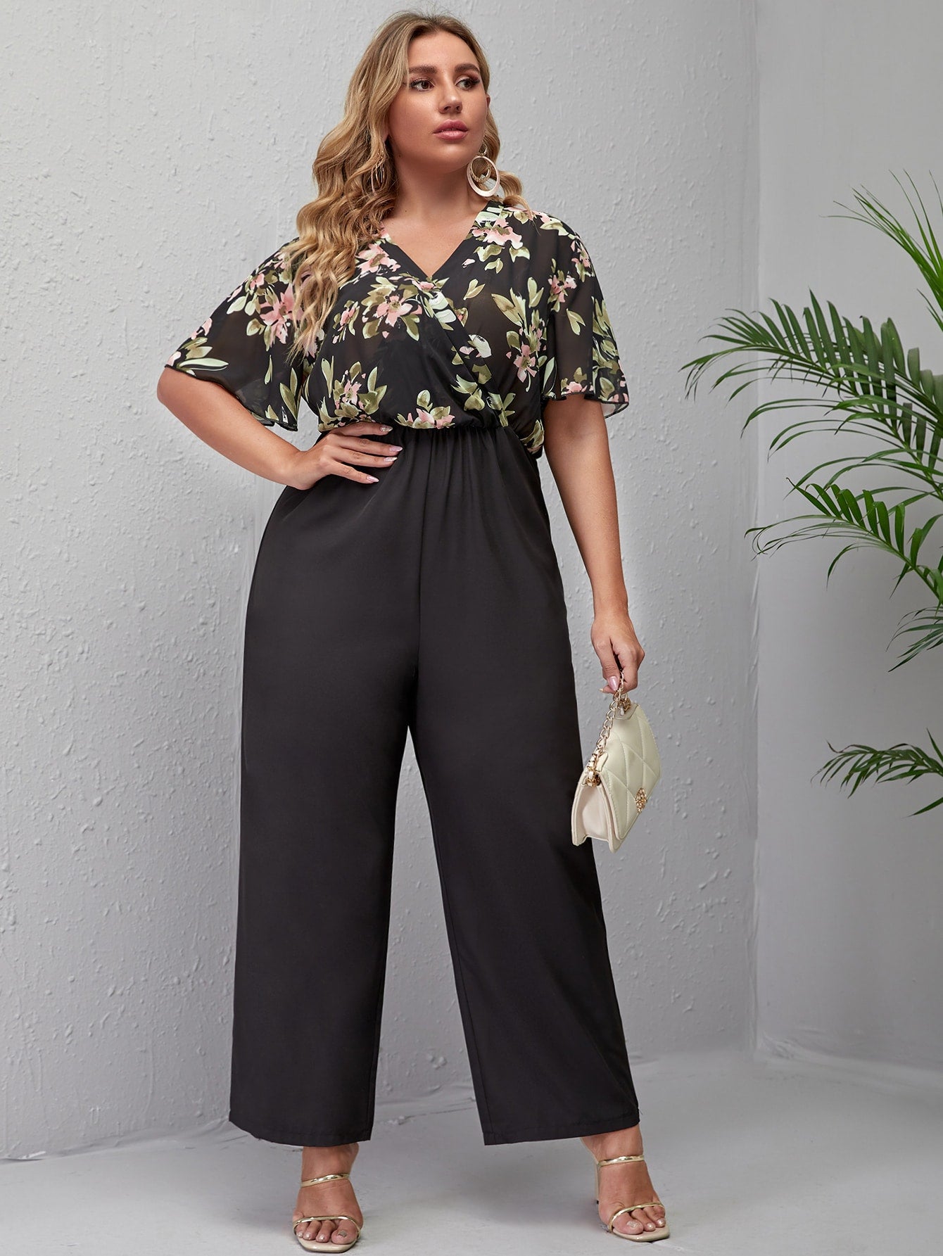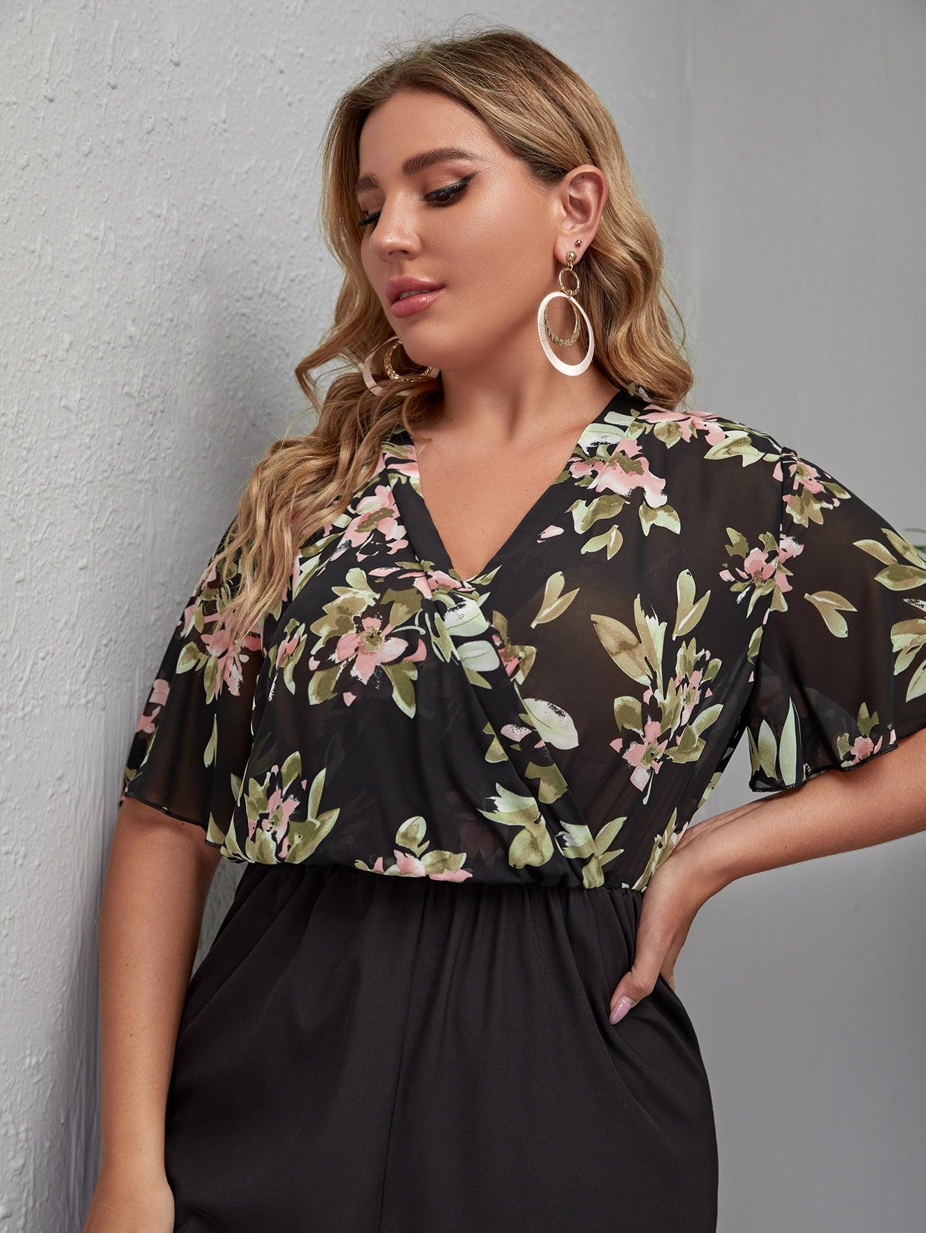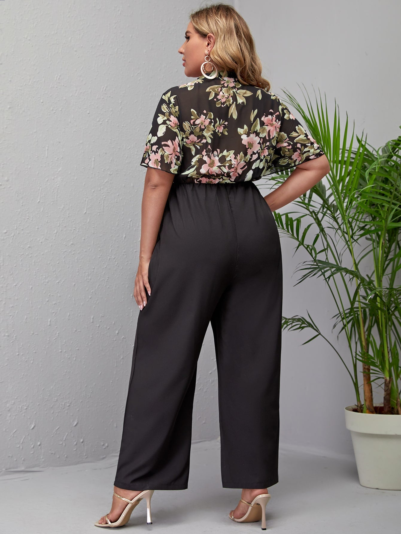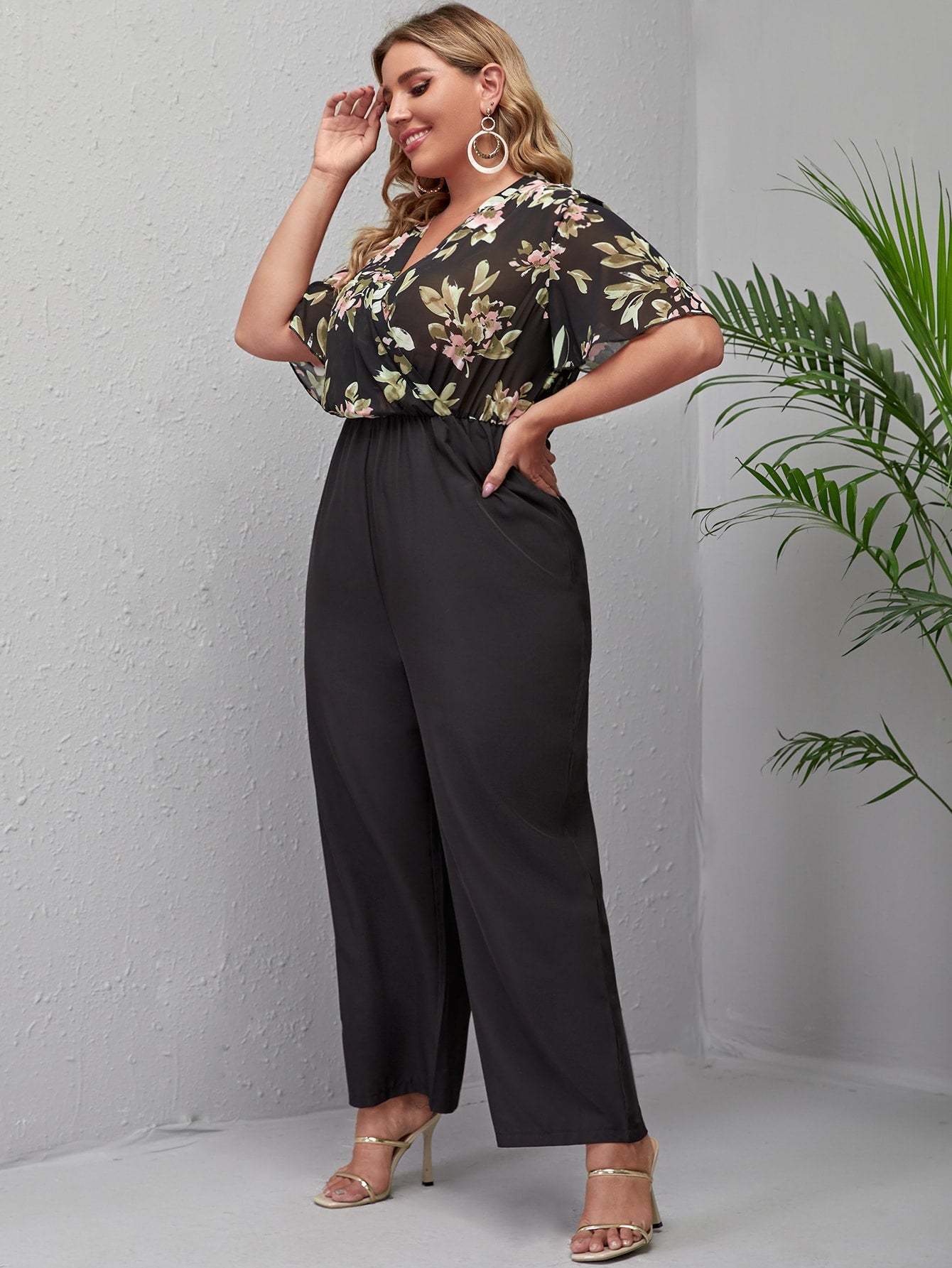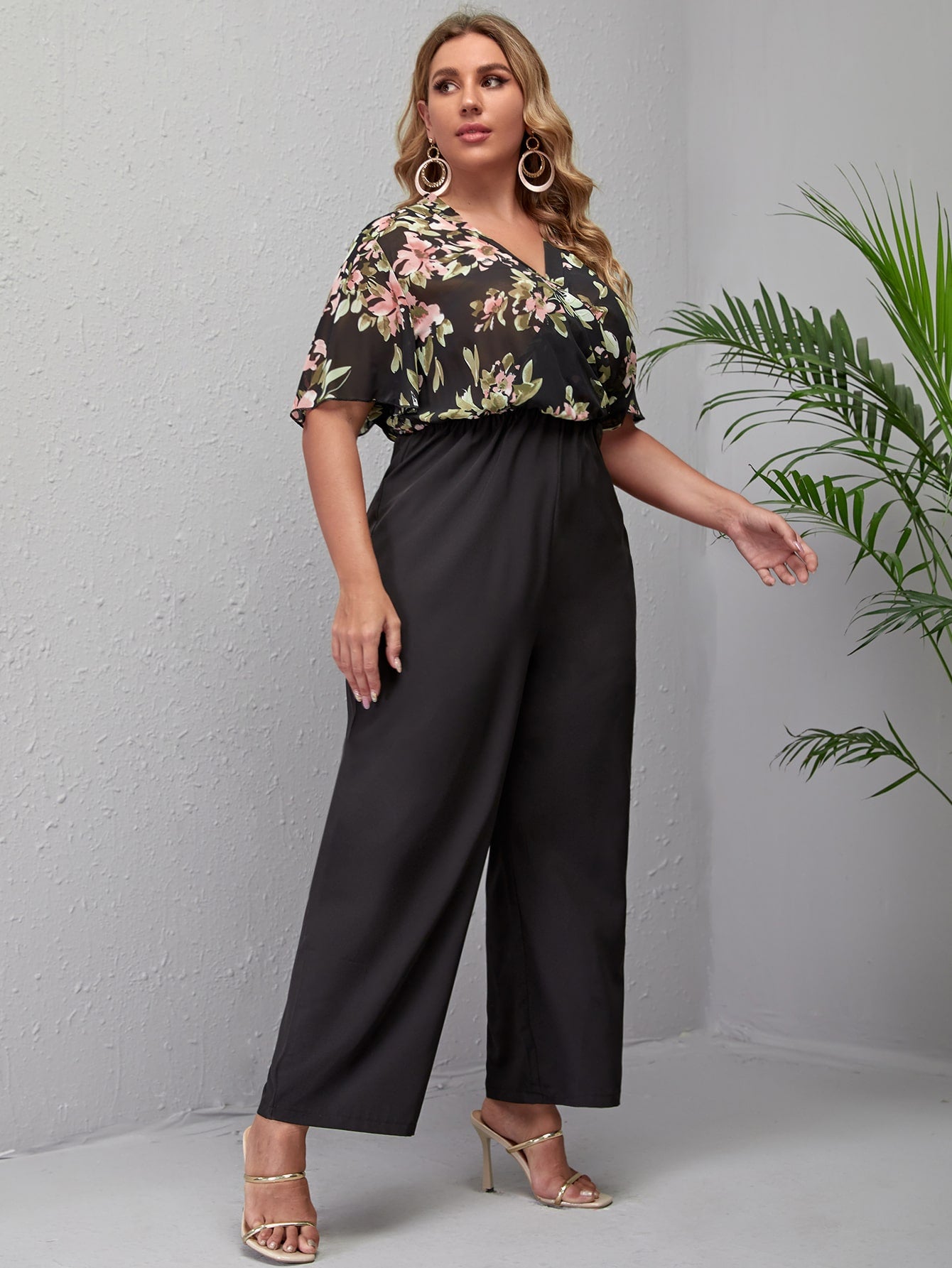 Plus Floral Wrap Combo Wide Leg Jumpsuit