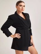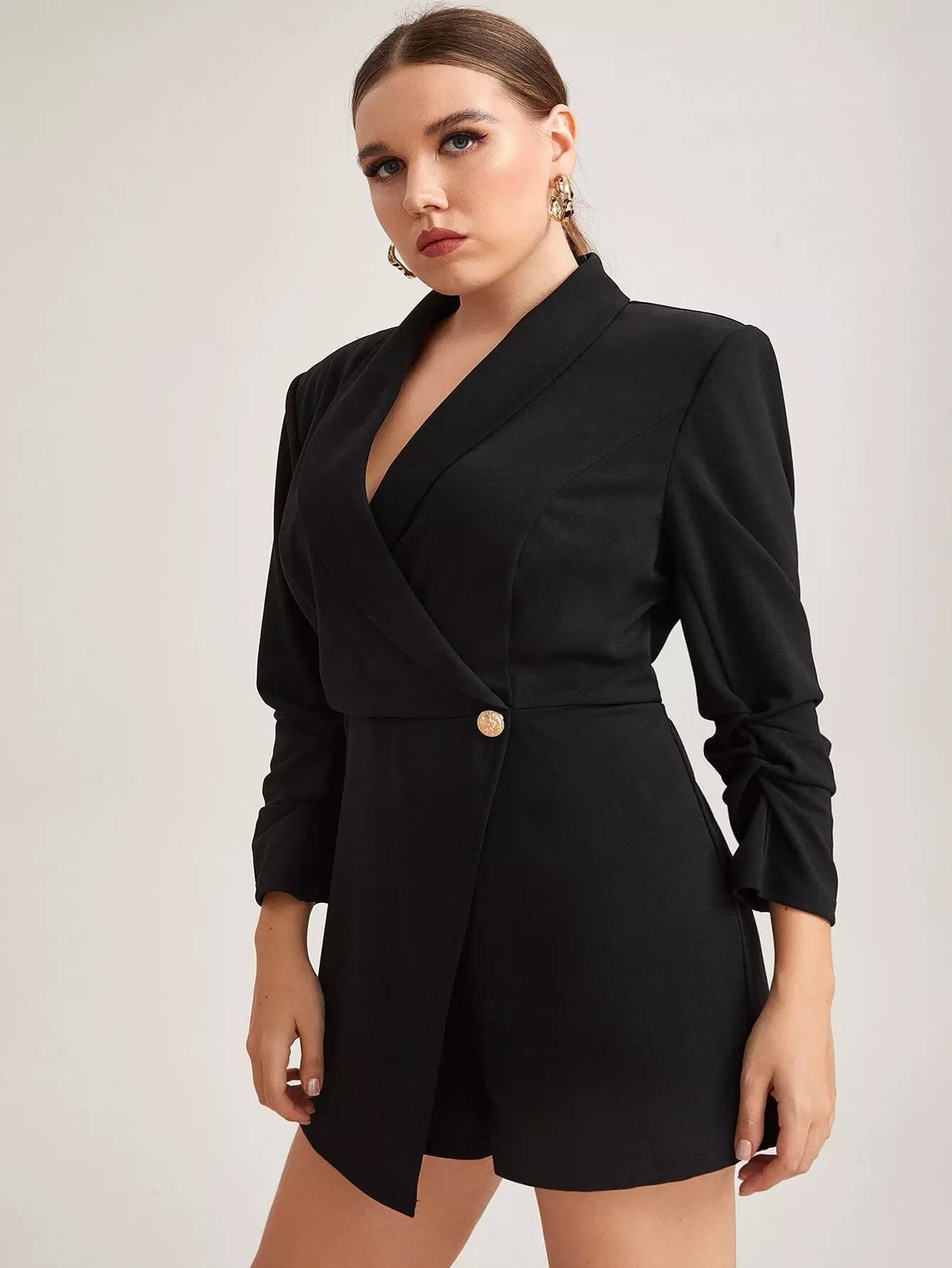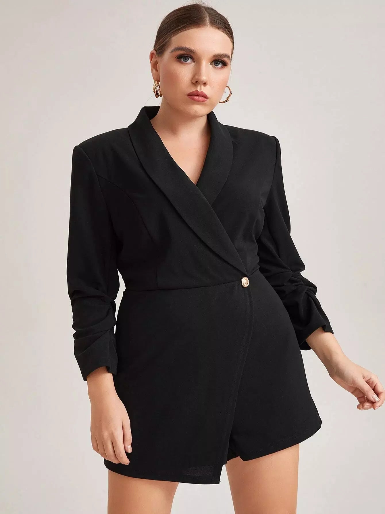 نحيف - مقاس كبير رومبير ذو أكمام متجمعة وياقة شال وحاشية غير متماثلة