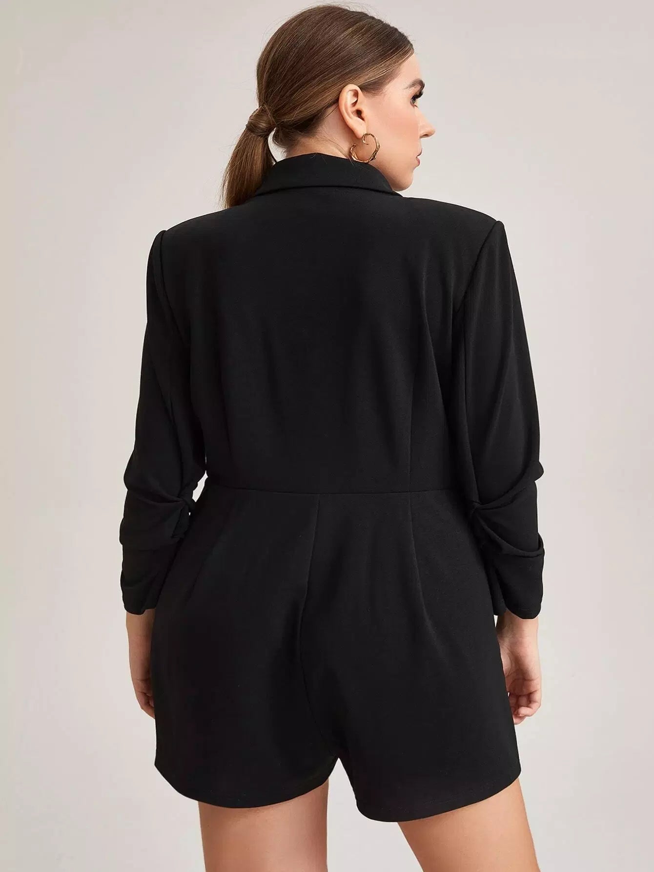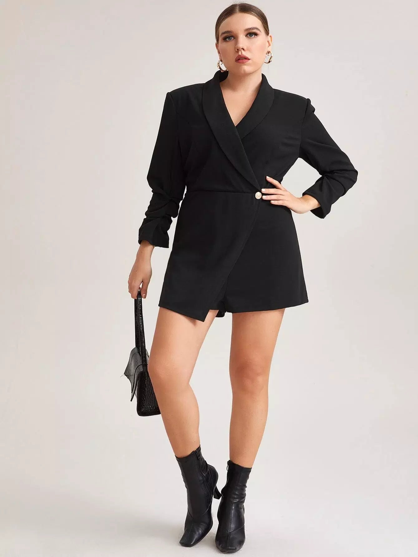 رومبر بأكمام مجمعة بياقة شال بحافة غير متناظرة