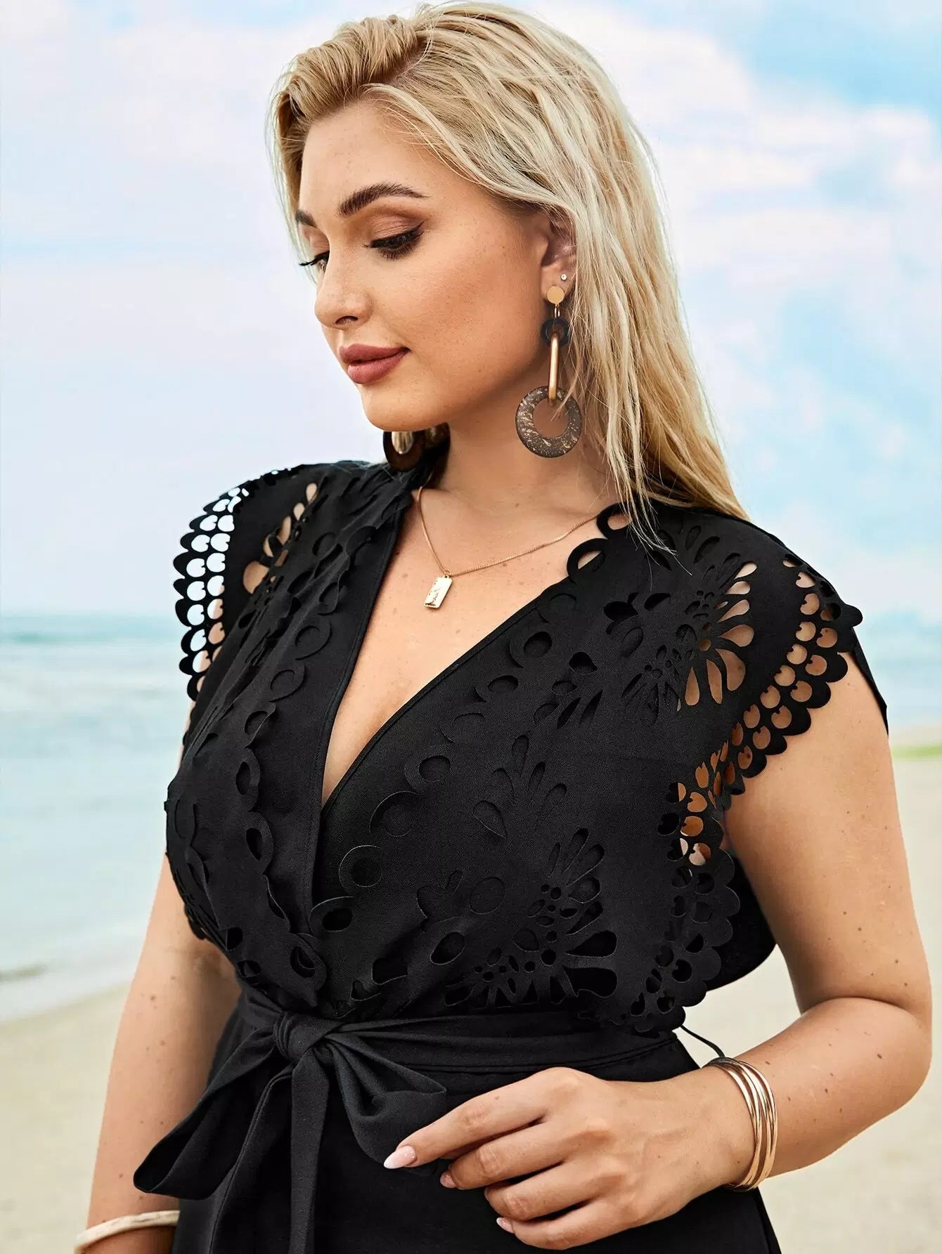 بالإضافة إلى بذلة صدرية مقطوعة بالليزر بدون حزام