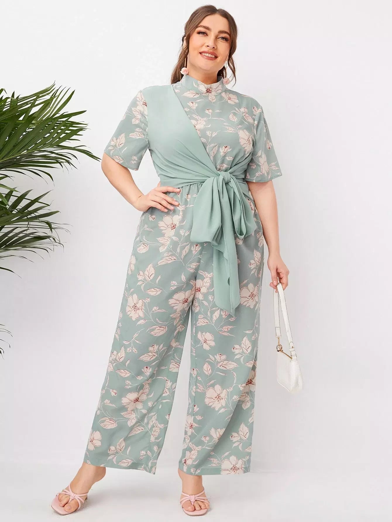 جمبسوت برقبة زائد بربطة عنق زهرية أمامية بربطة عنق زائد