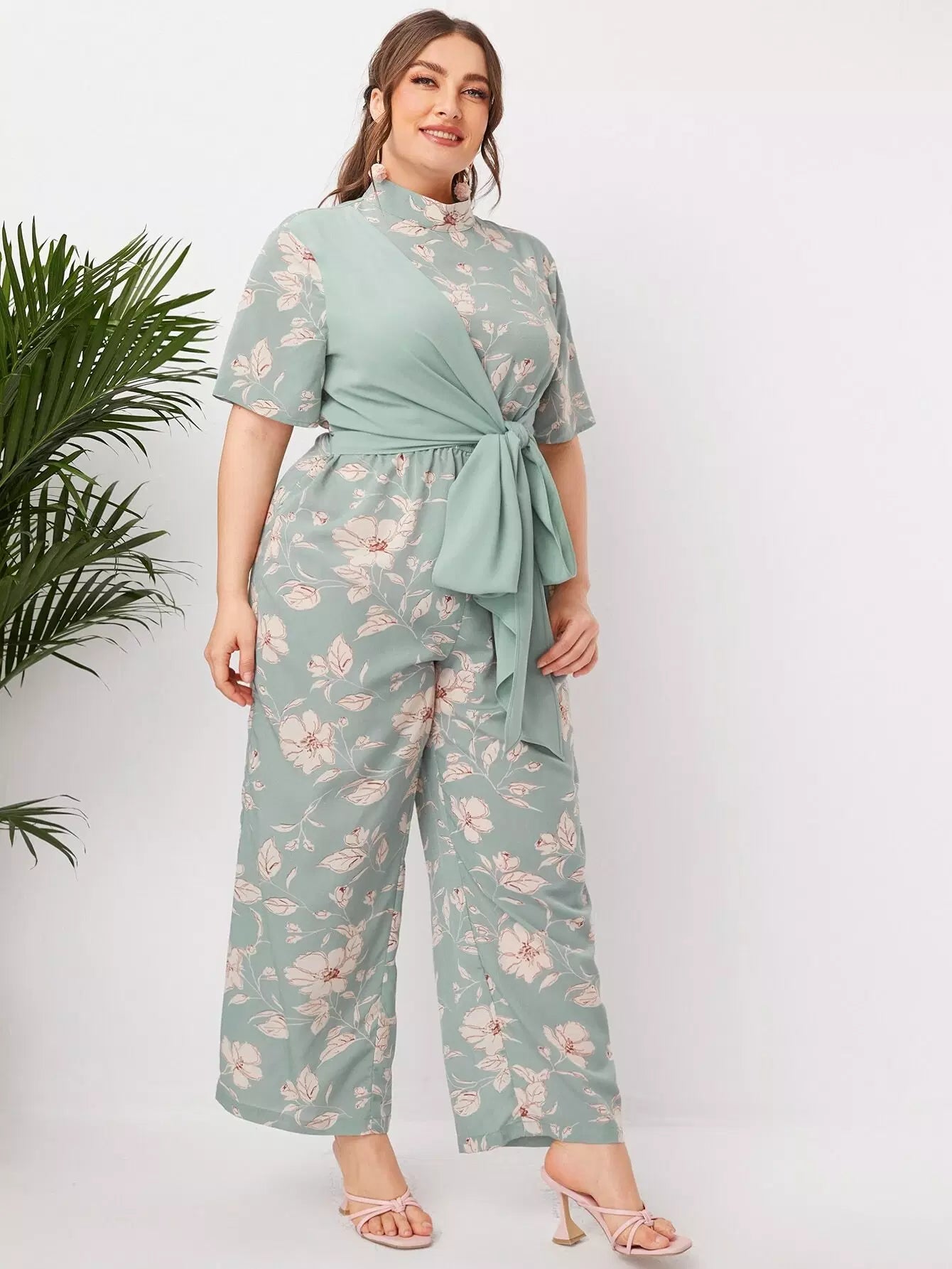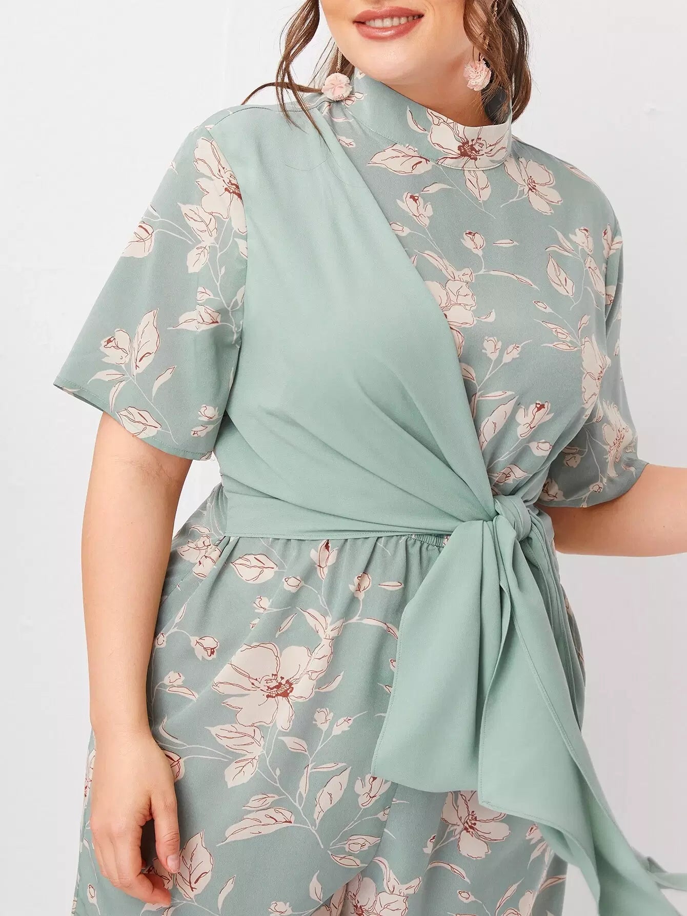 نحيف - مقاس كبير بذلة وهمية الرقبة التعادل الجبهة الأزهار