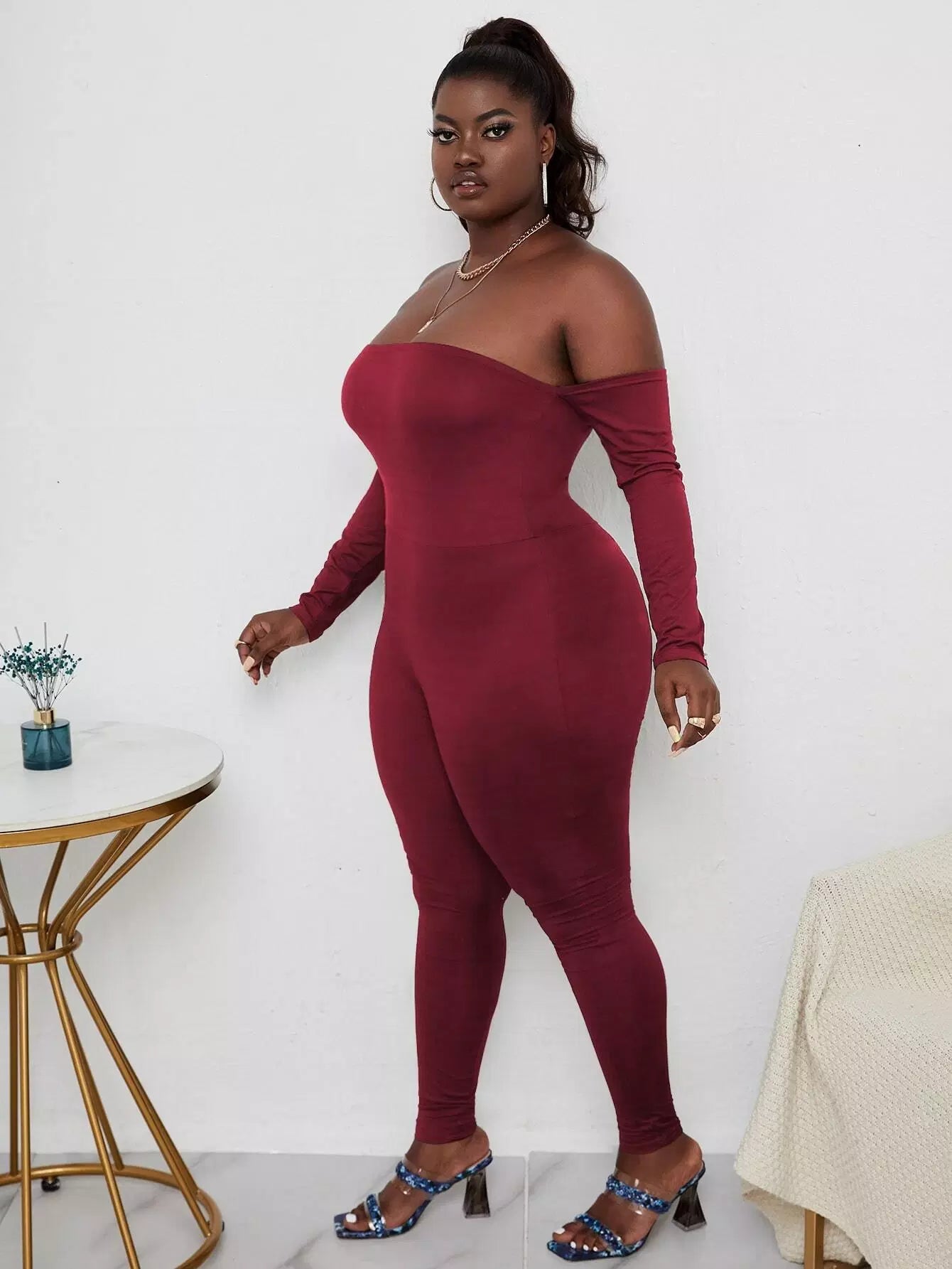 نحيف - مقاس كبير قبالة الكتف بذلة Unitard